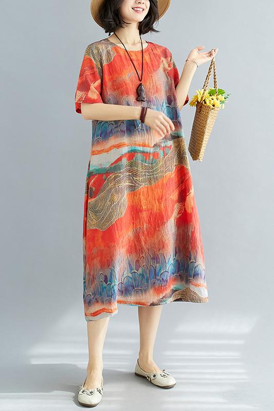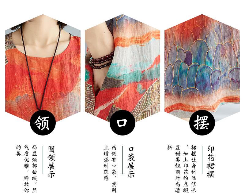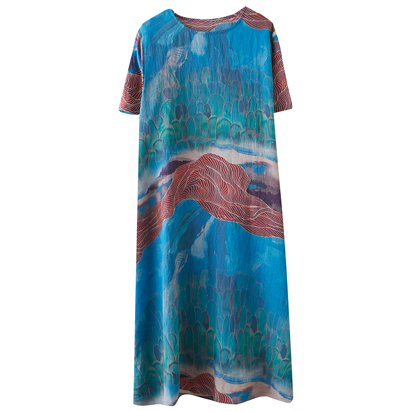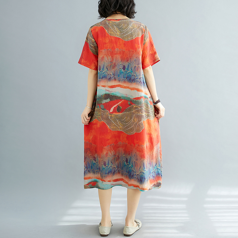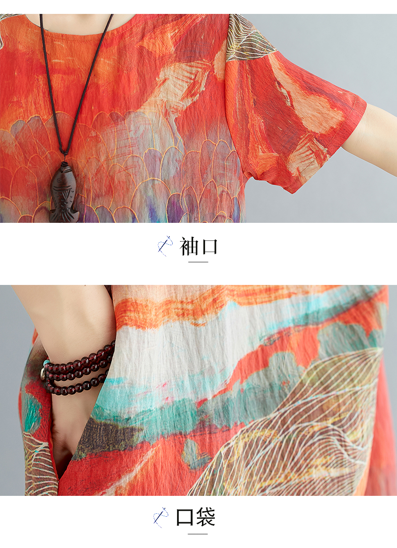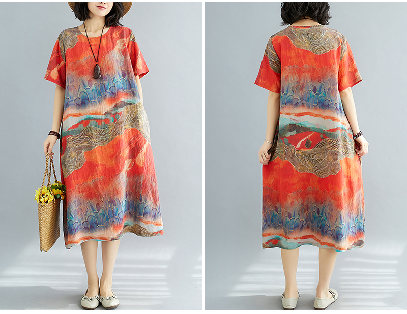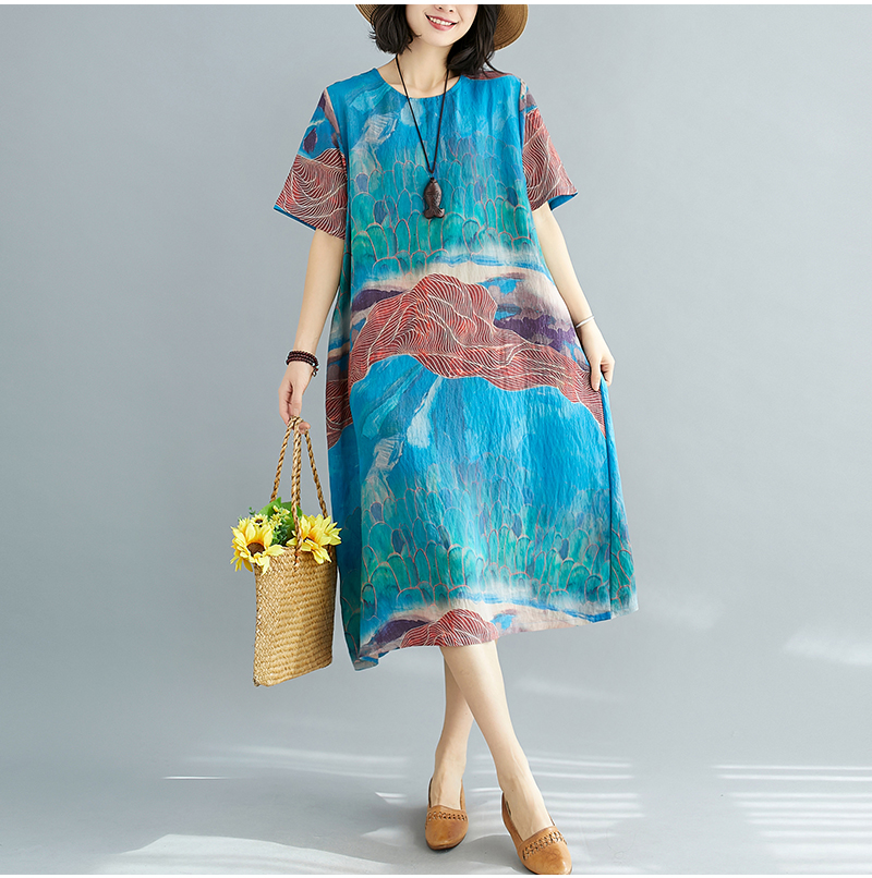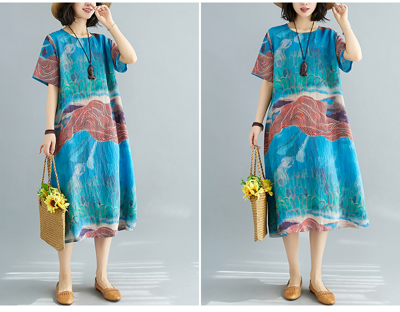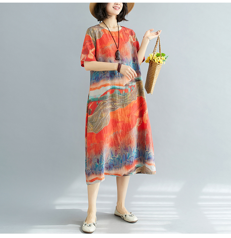 RY238# 实拍2026夏季新款文艺宽松显瘦中长款印花连衣裙女装