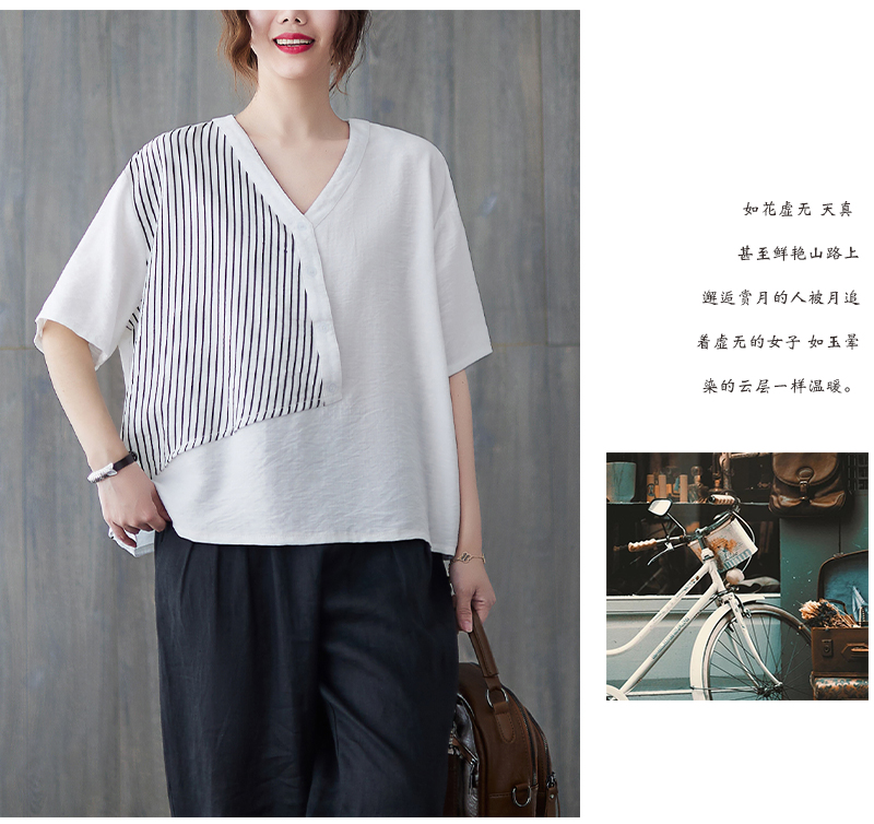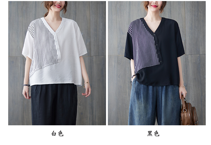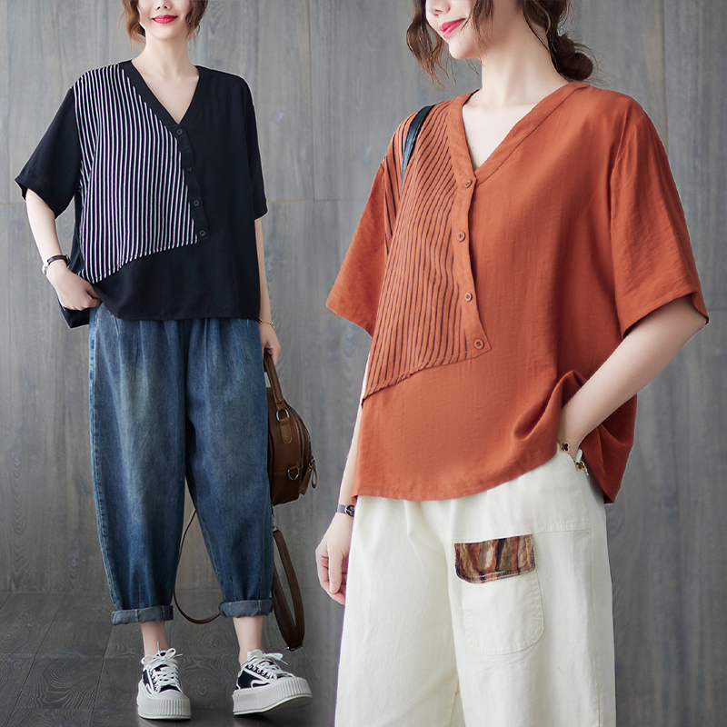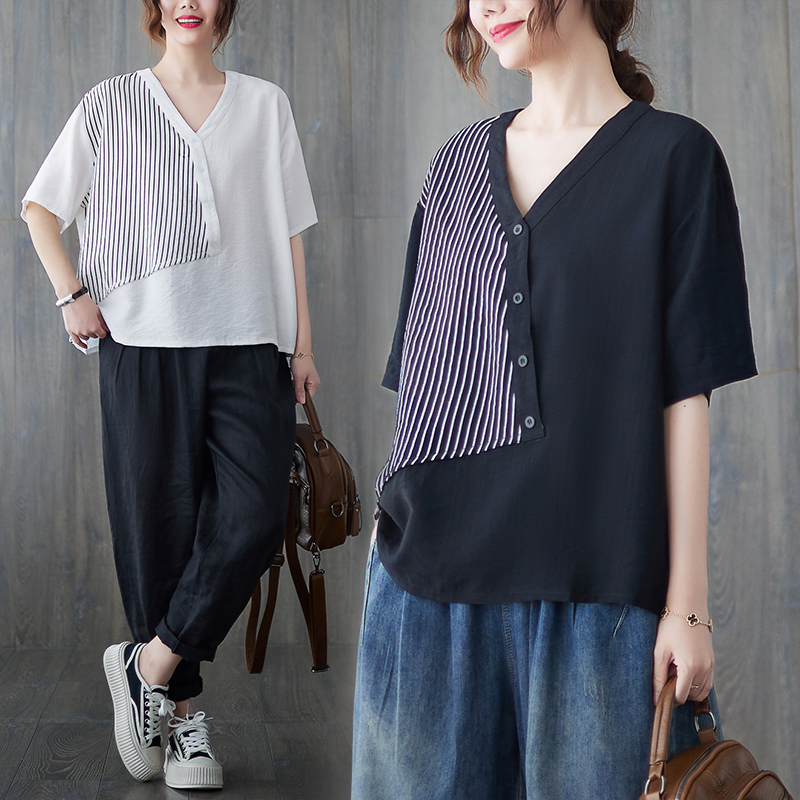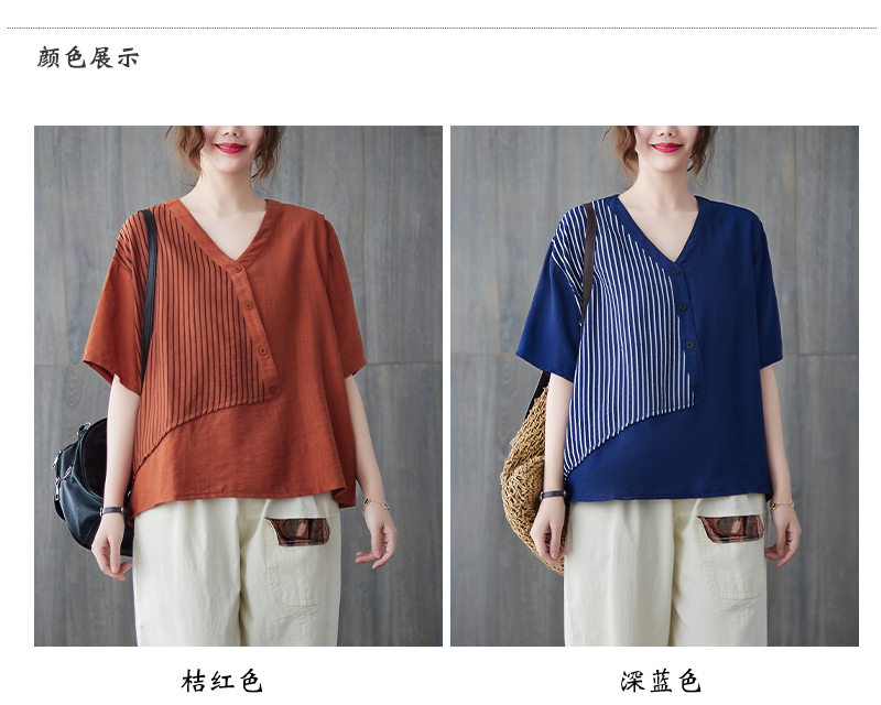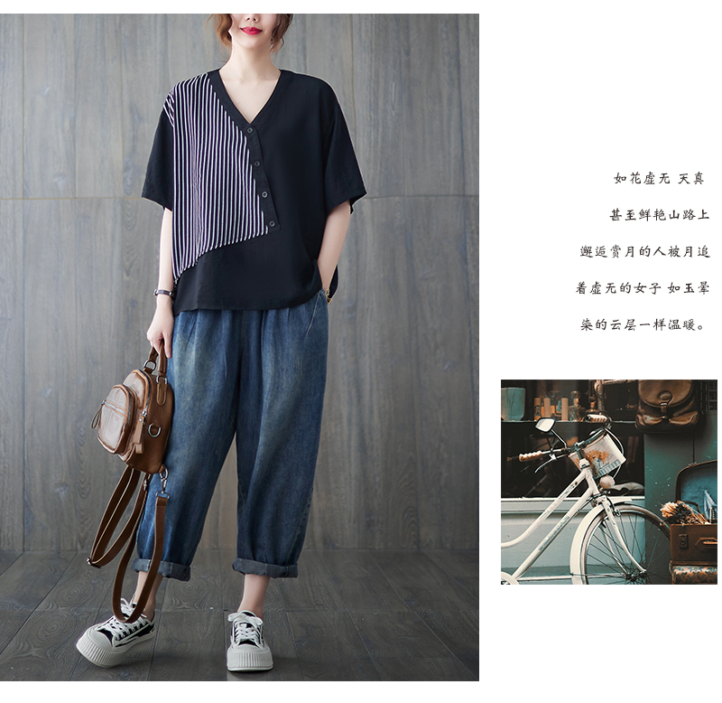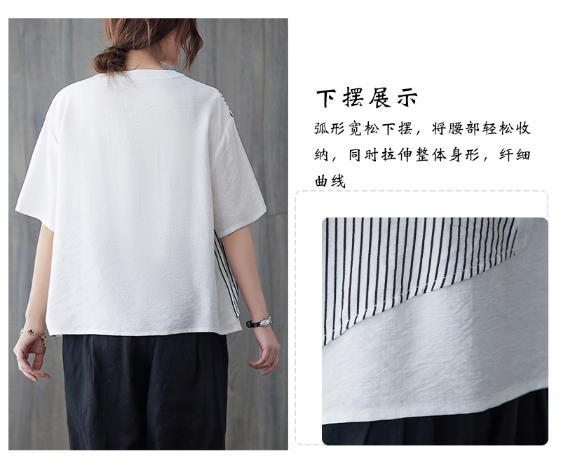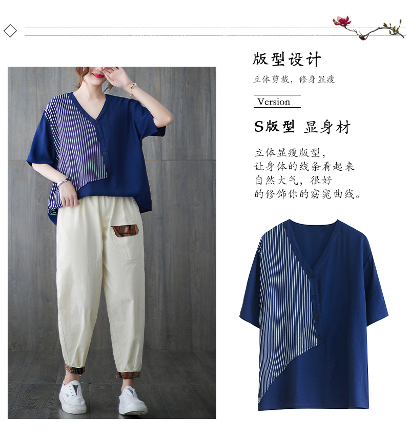 RY241# 实拍2026夏季新款文艺条纹宽松大码T恤胖MM大码女装上衣