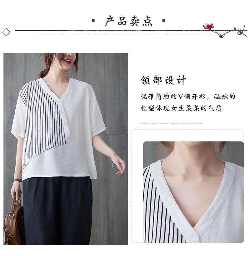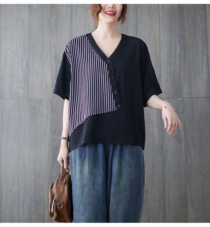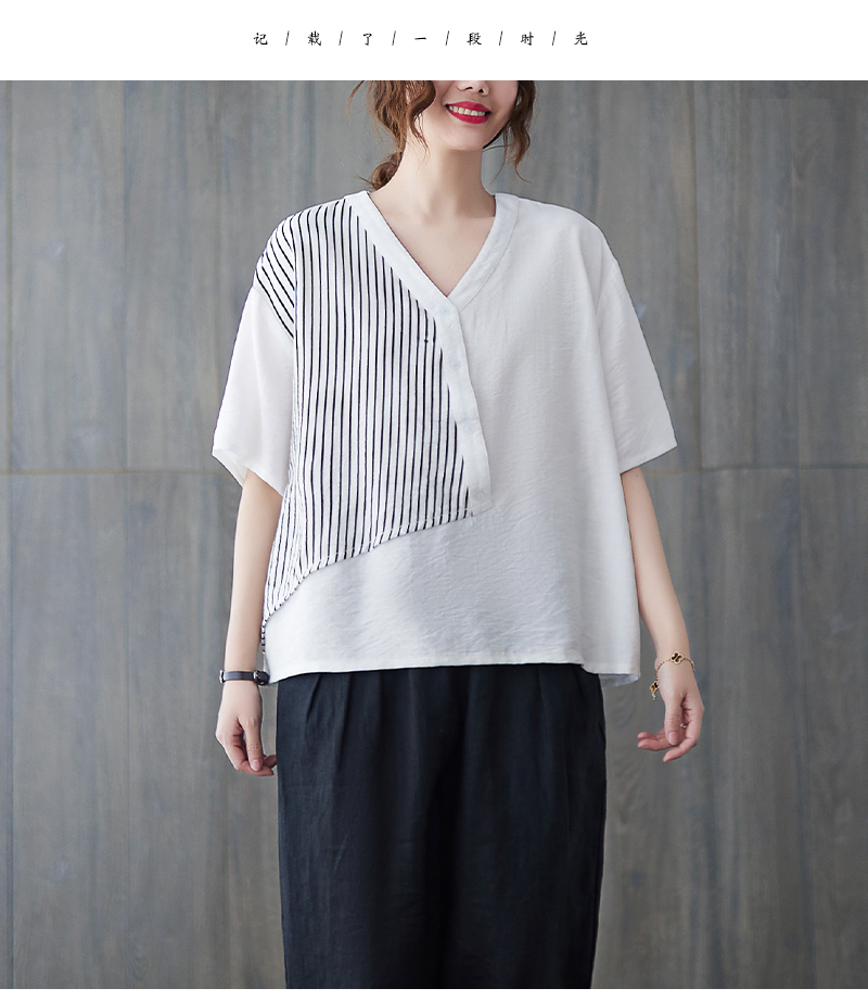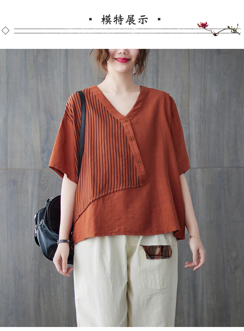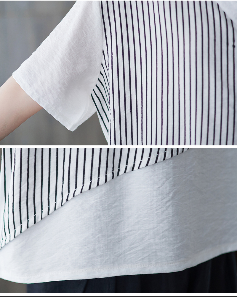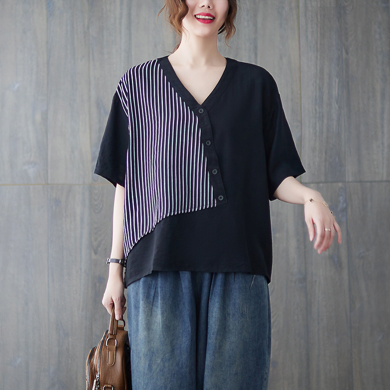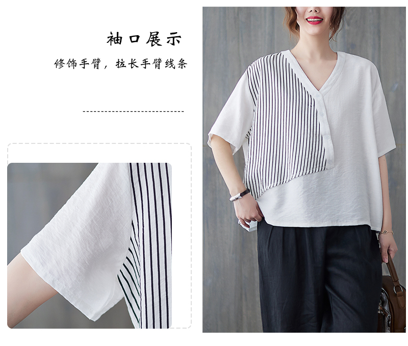 RY241# 实拍2026夏季新款文艺条纹宽松大码T恤胖MM大码女装上衣