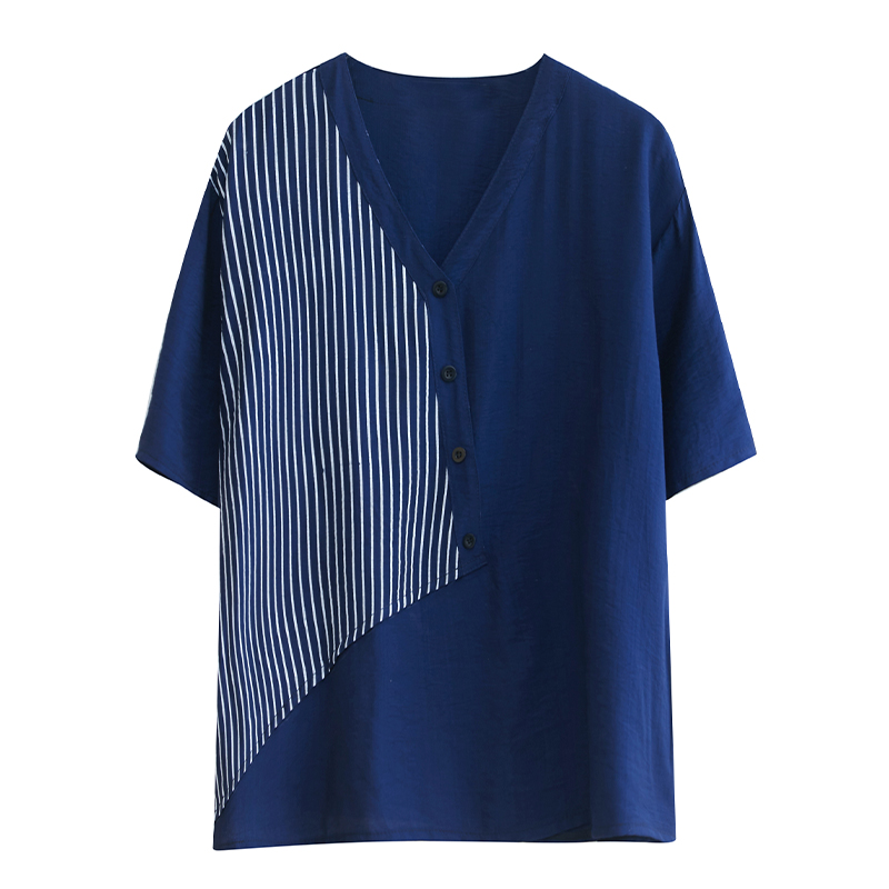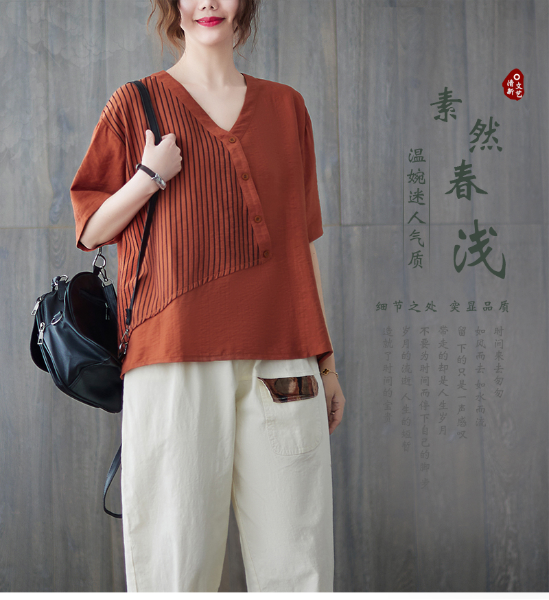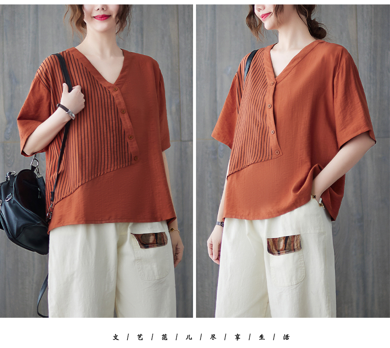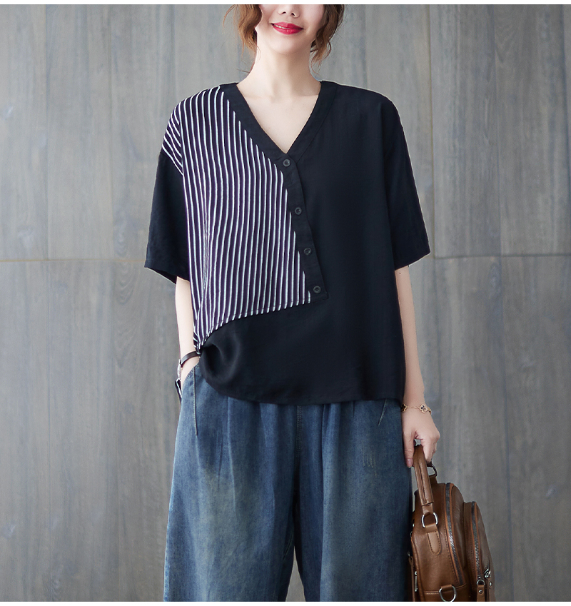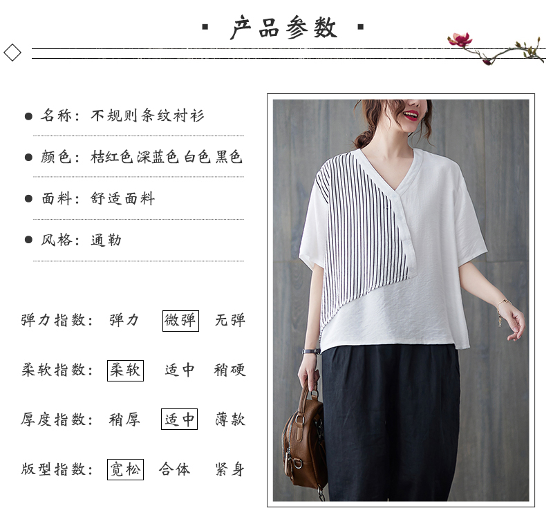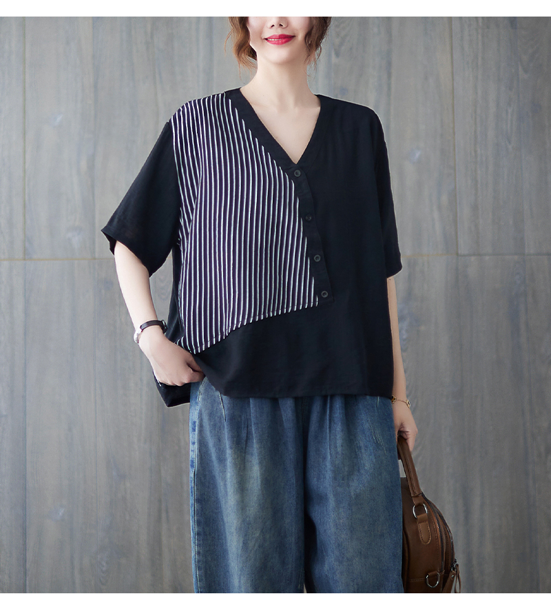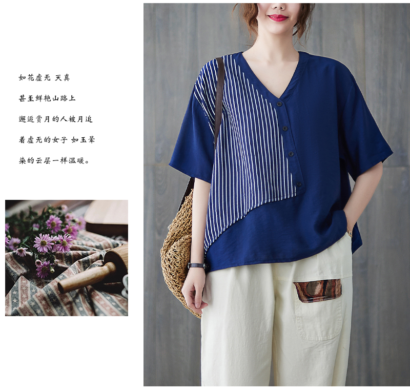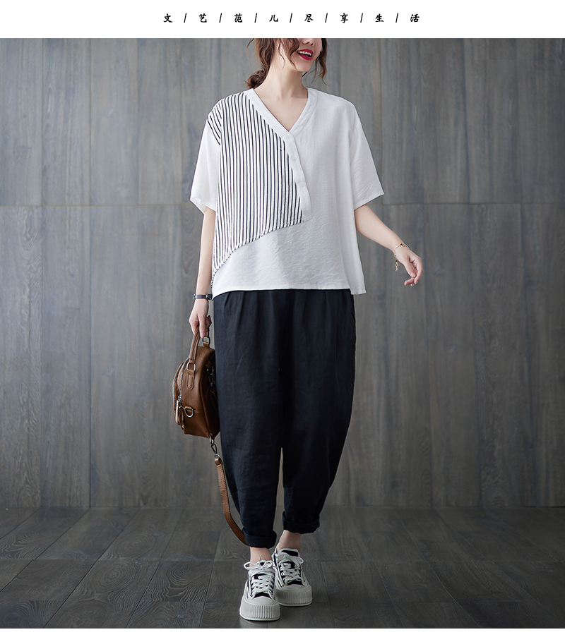 RY241# 实拍2026夏季新款文艺条纹宽松大码T恤胖MM大码女装上衣