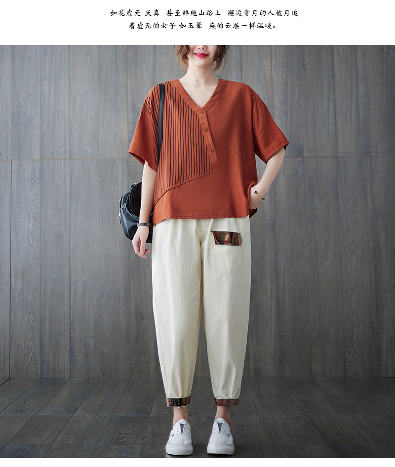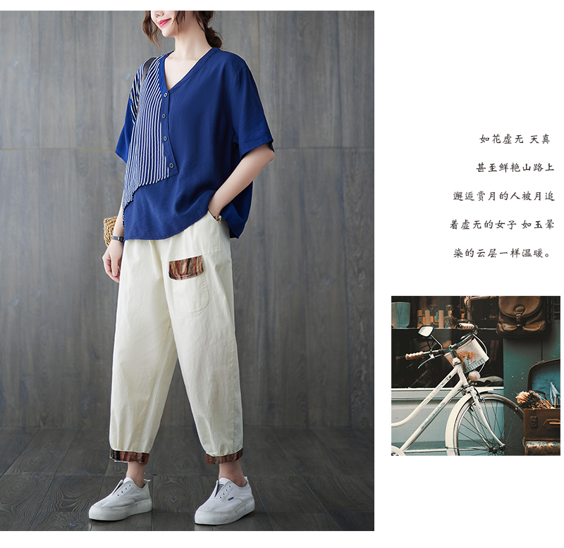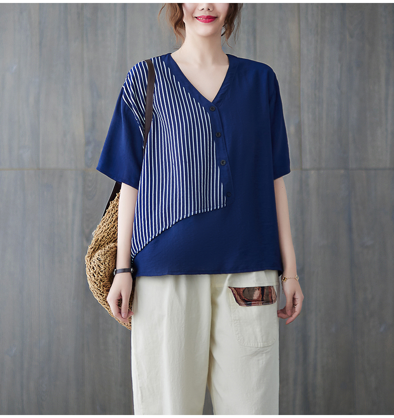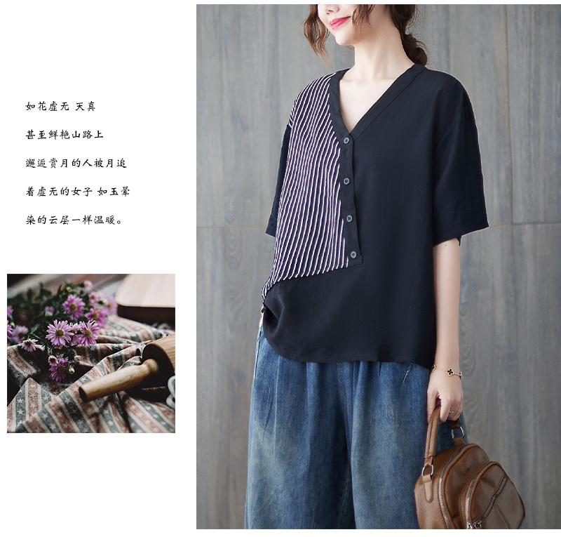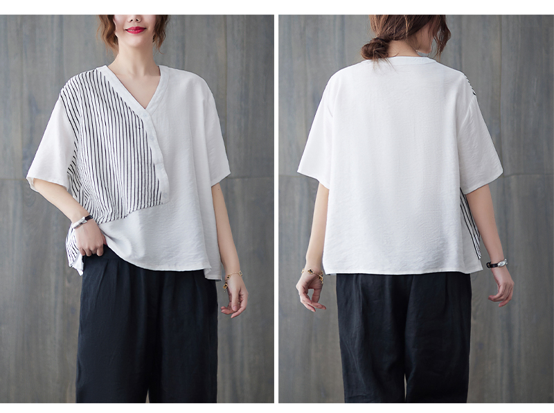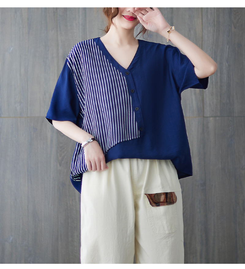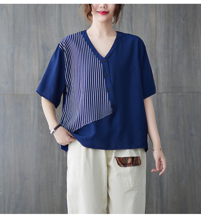 RY241# 实拍2026夏季新款文艺条纹宽松大码T恤胖MM大码女装上衣