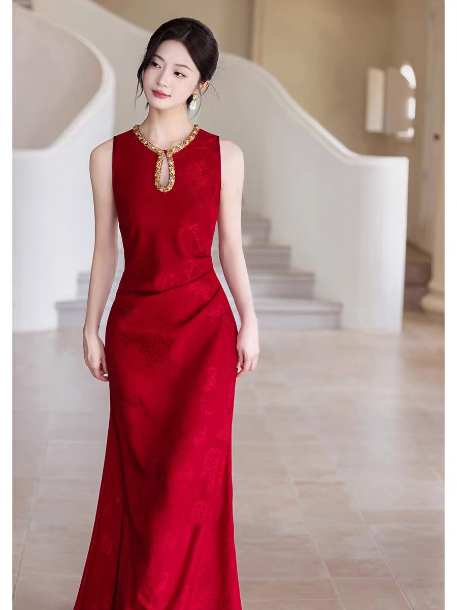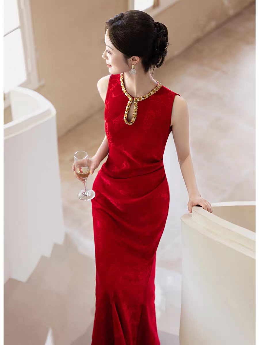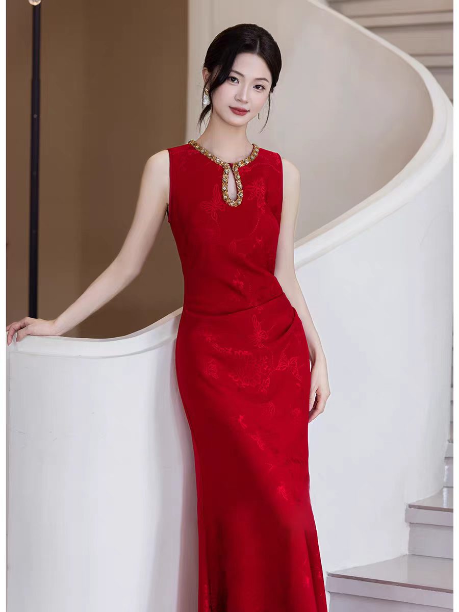 RY246# 中式旗袍女2026新款高级感红色订婚晚礼服结婚回门便装
