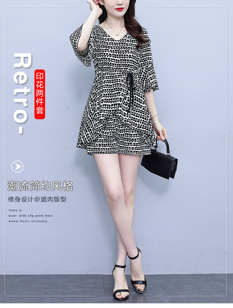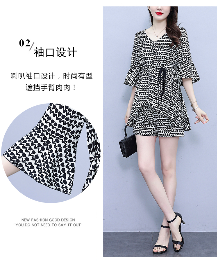 RY252# 大码女装2026夏季新款胖MM韩版减龄显瘦套装洋气雪纺两件套喇叭袖