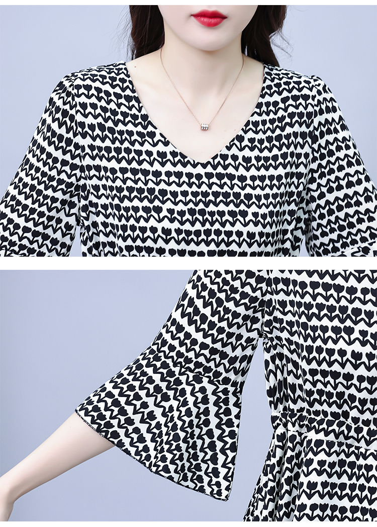 RY253# 2026轻熟风大码女装胖mm雪纺拼接短袖中长款连衣裙夏季新款...