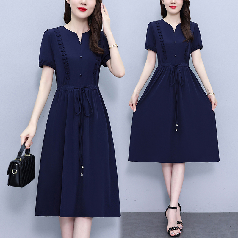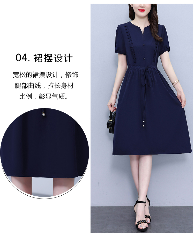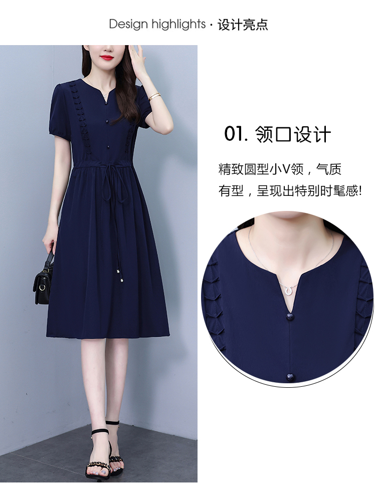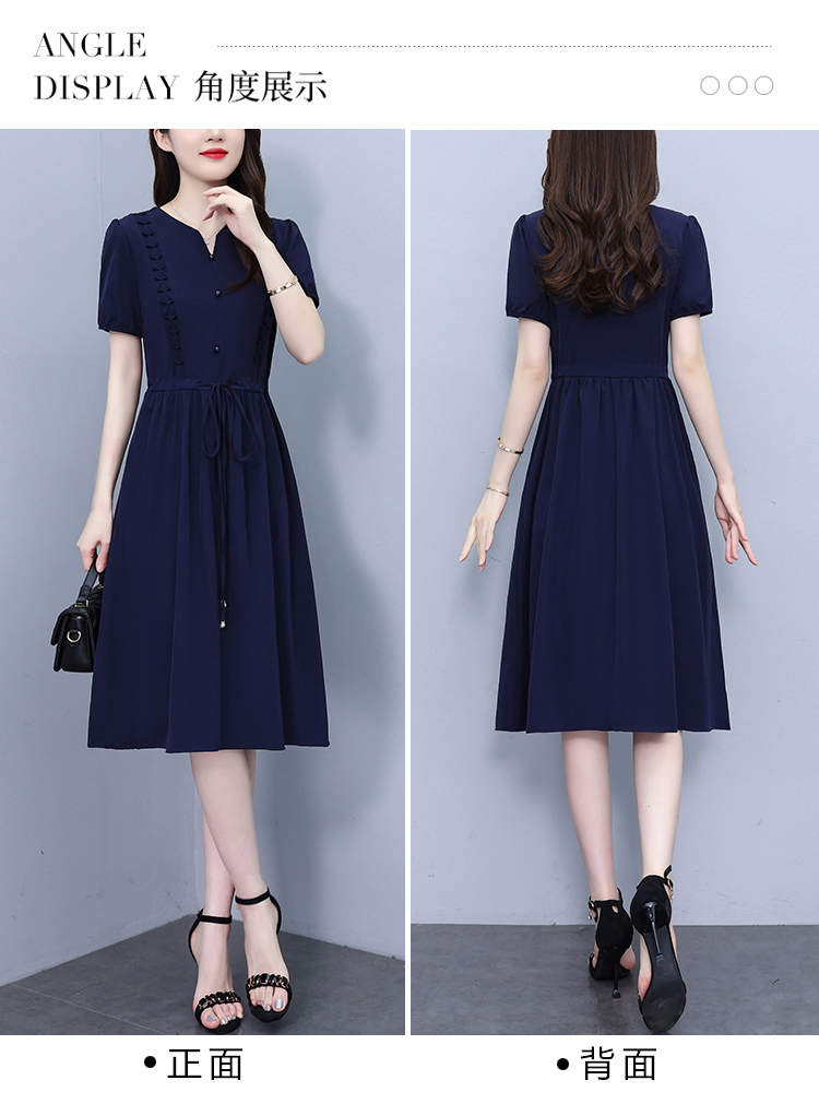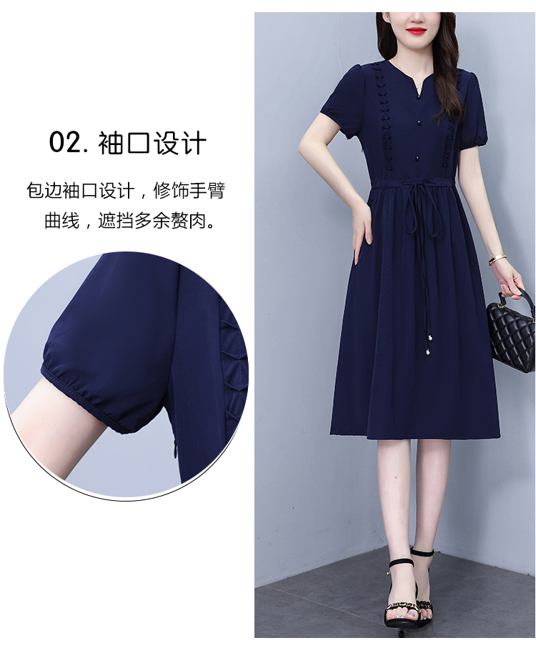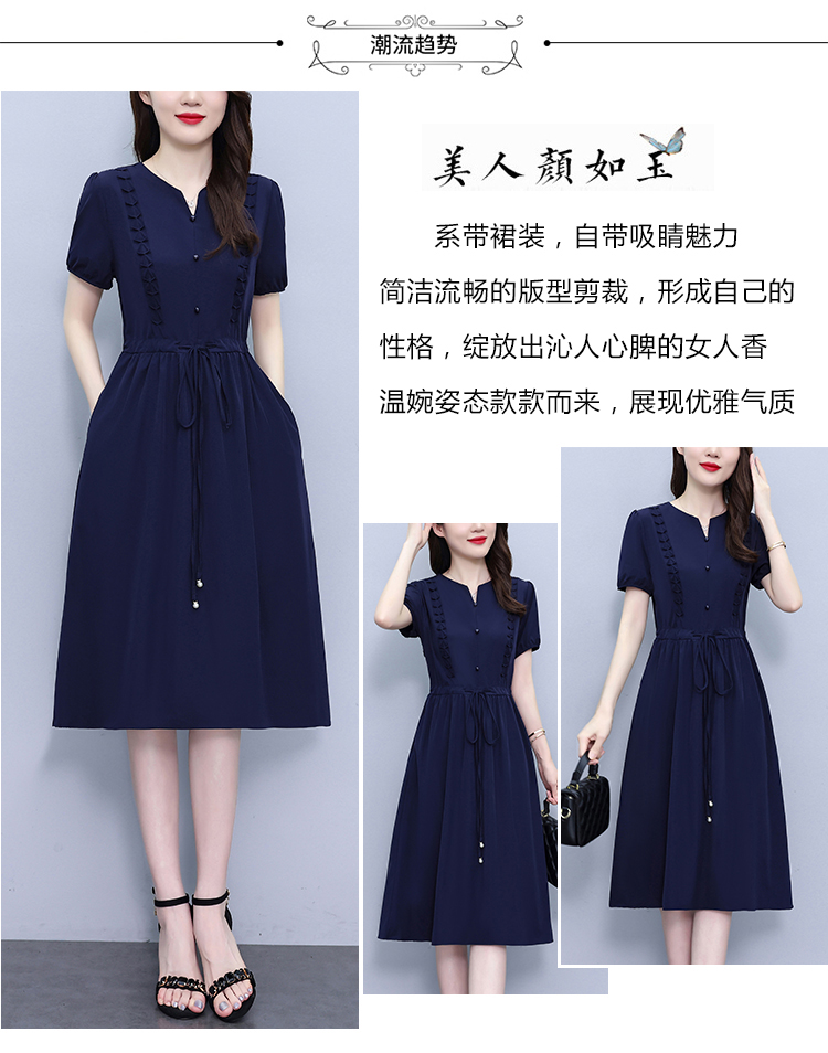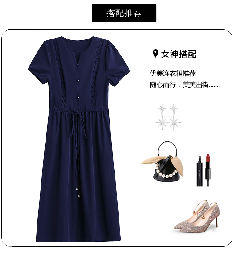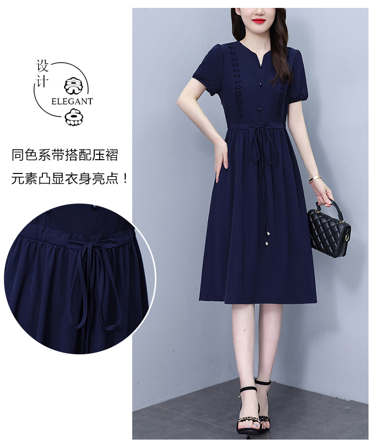 RY260# 连衣裙子女士夏季2026年新款今年流行爆款小个子收腰v领气质短袖