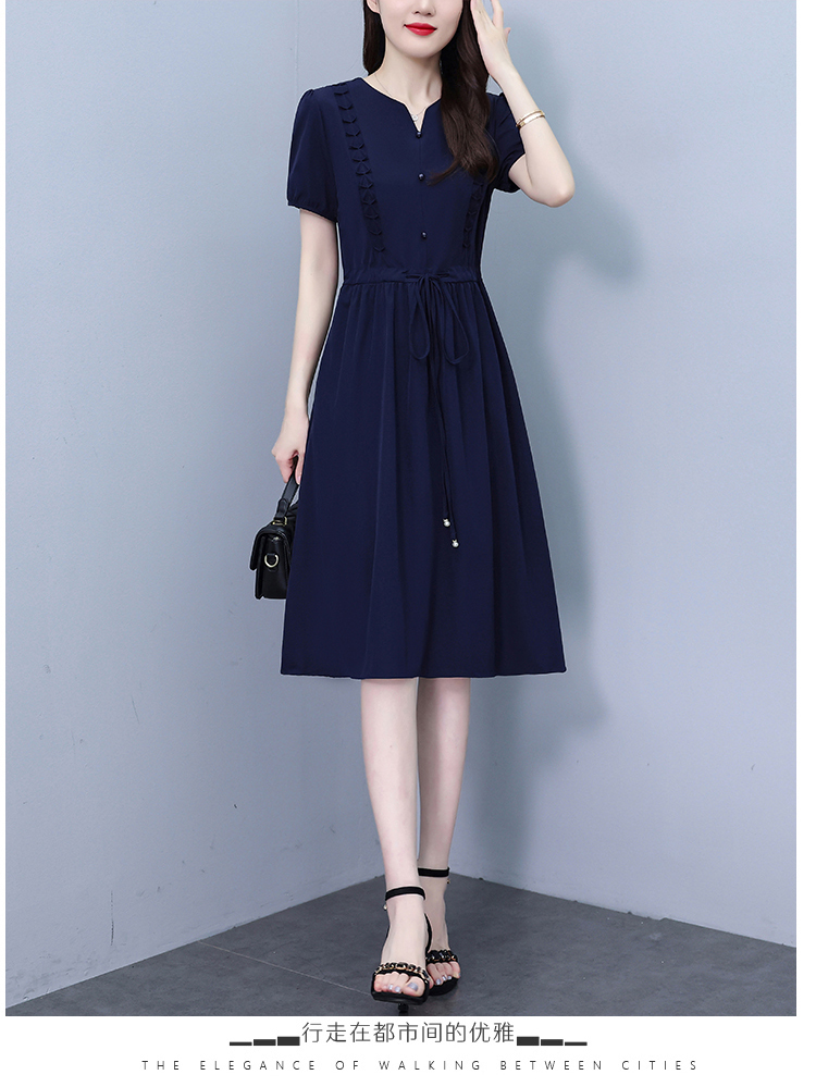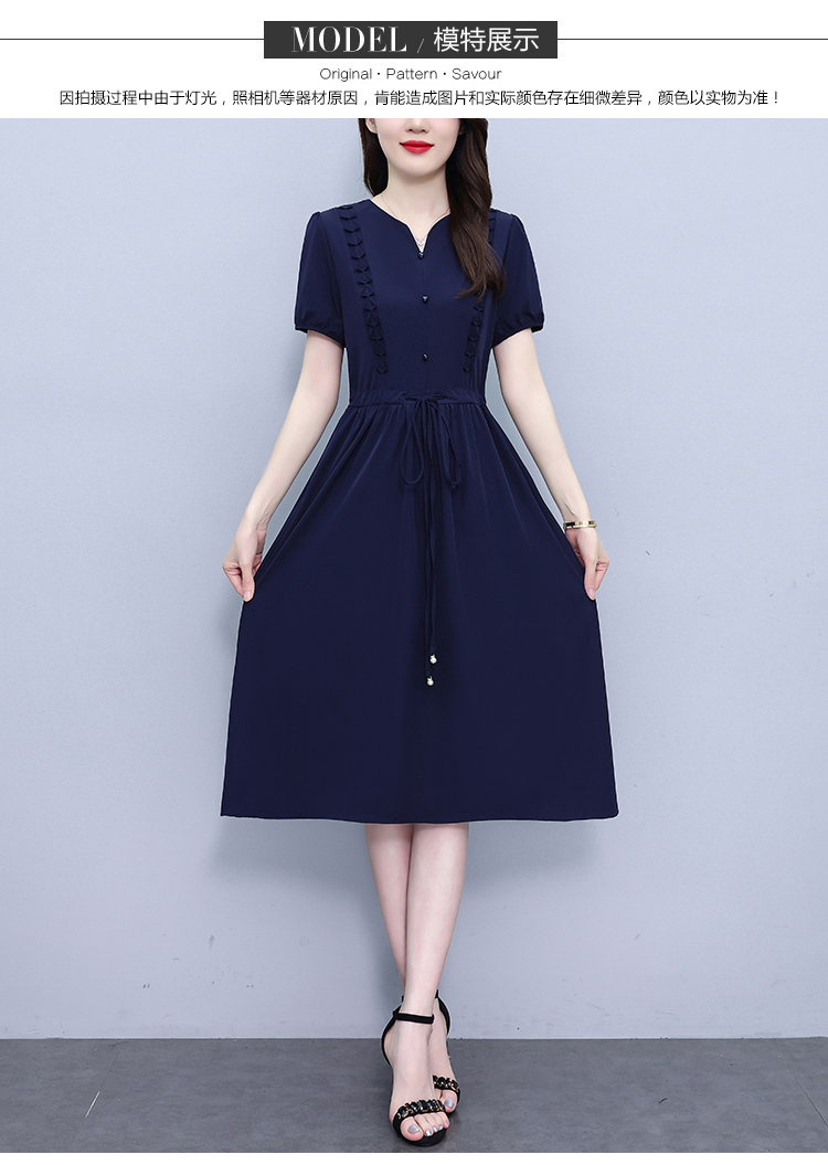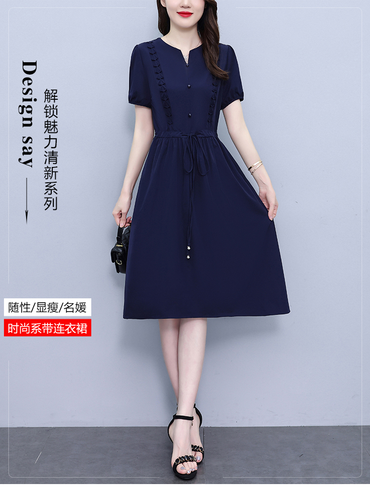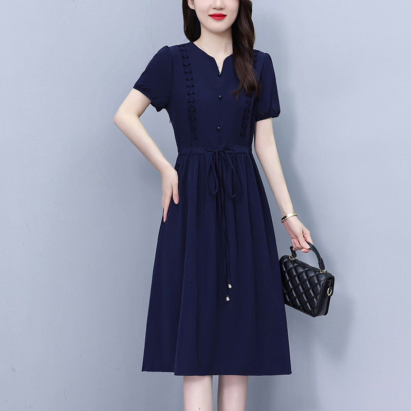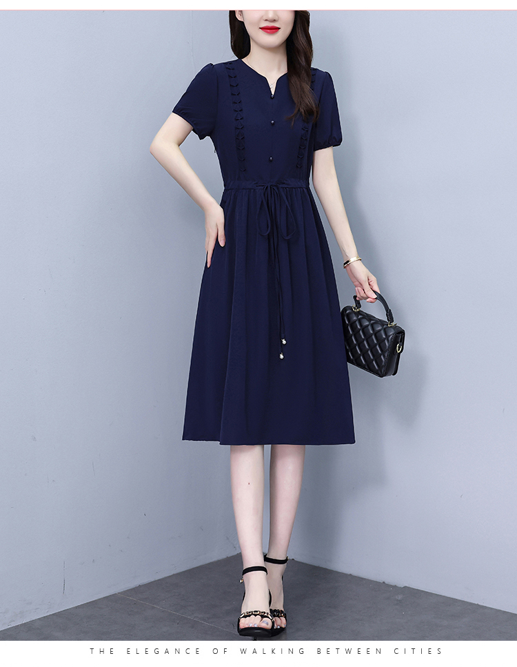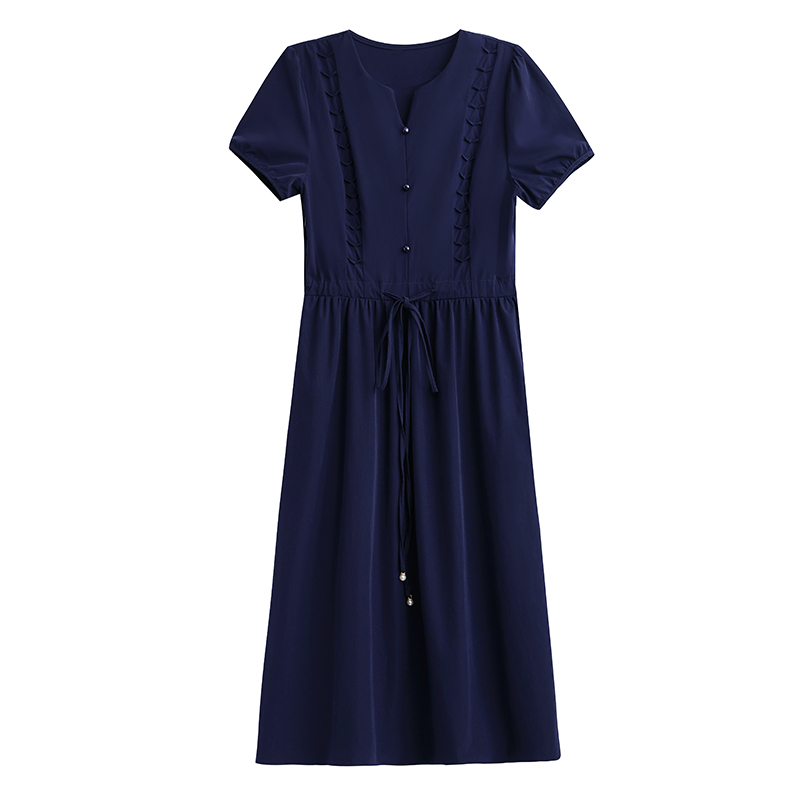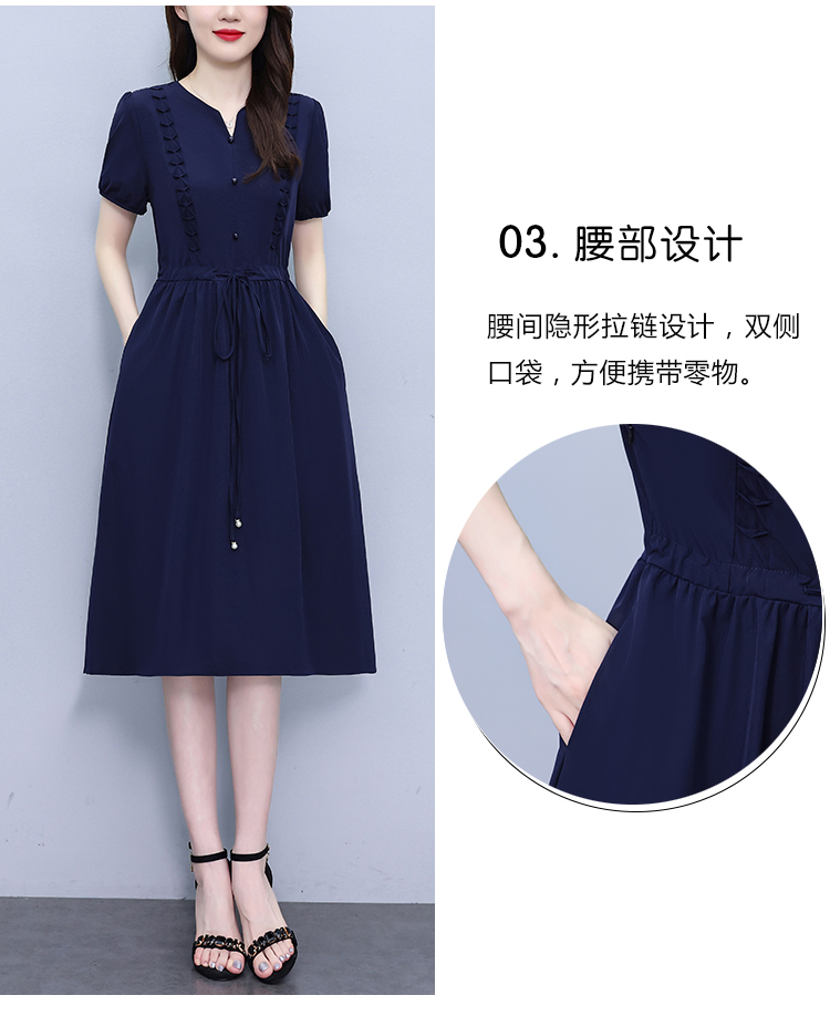 RY260# 连衣裙子女士夏季2026年新款今年流行爆款小个子收腰v领气质短袖