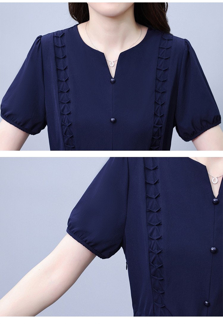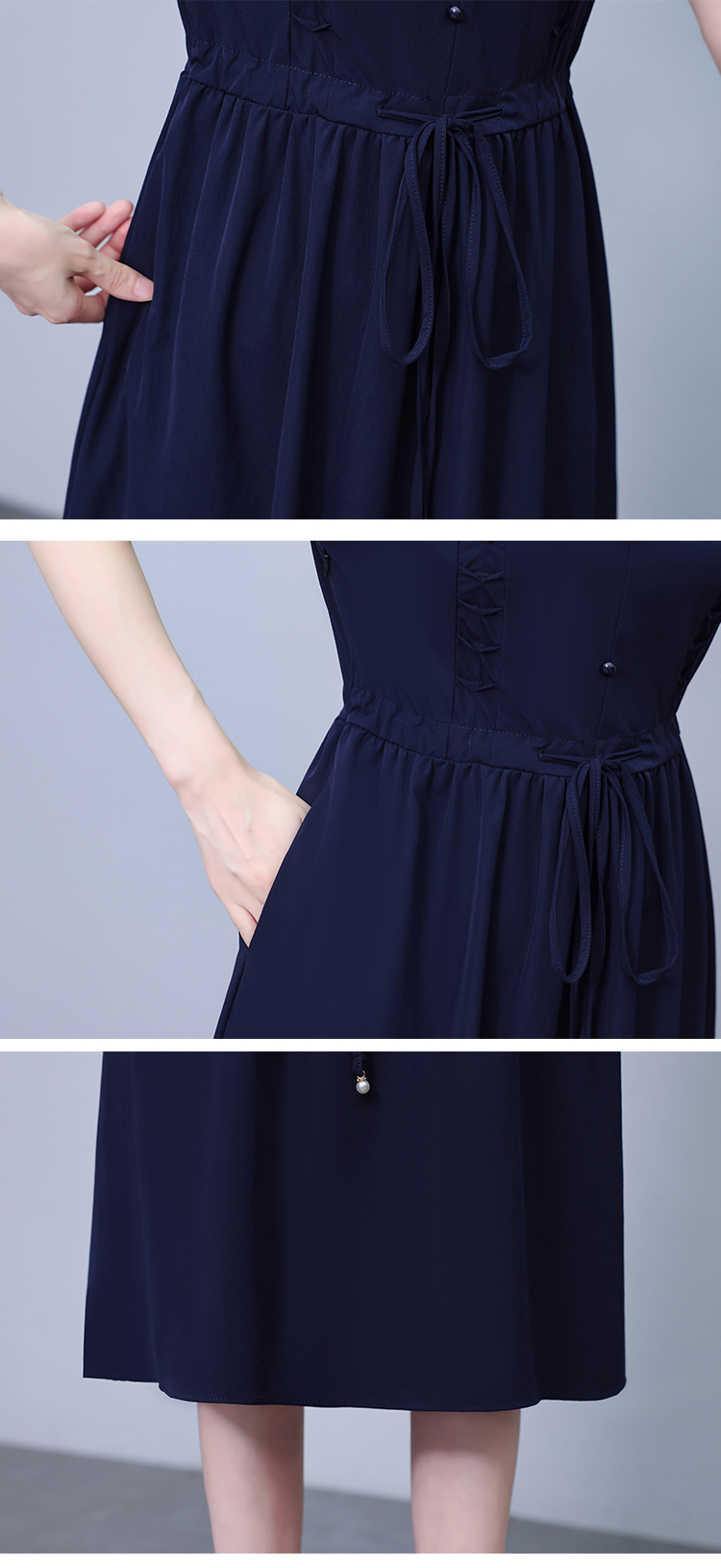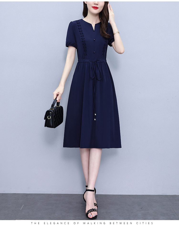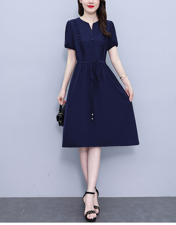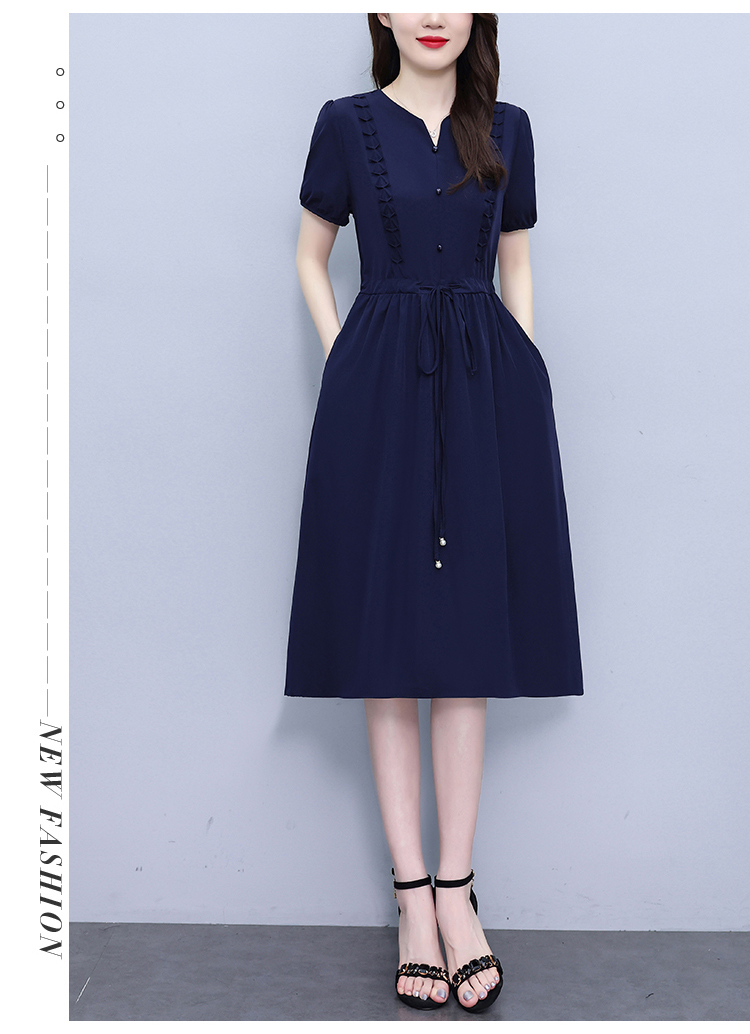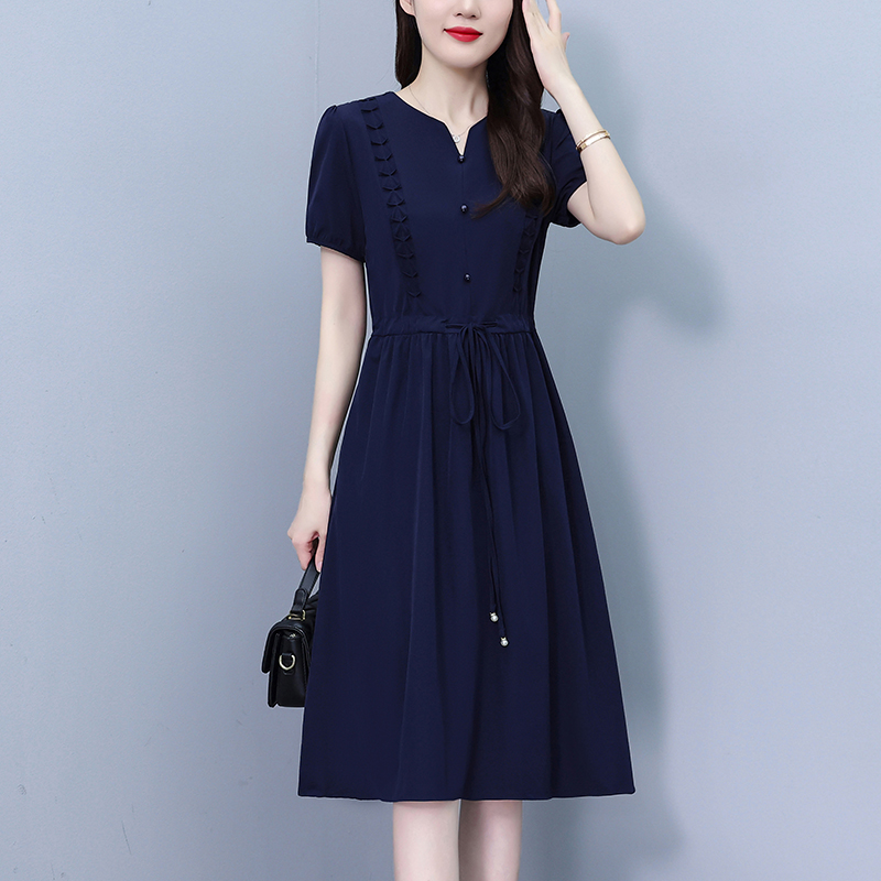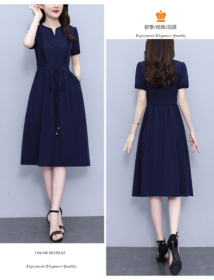 RY260# 连衣裙子女士夏季2026年新款今年流行爆款小个子收腰v领气质短袖