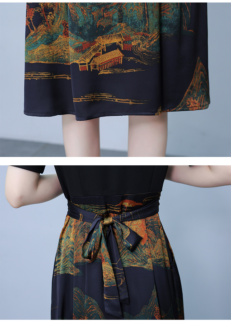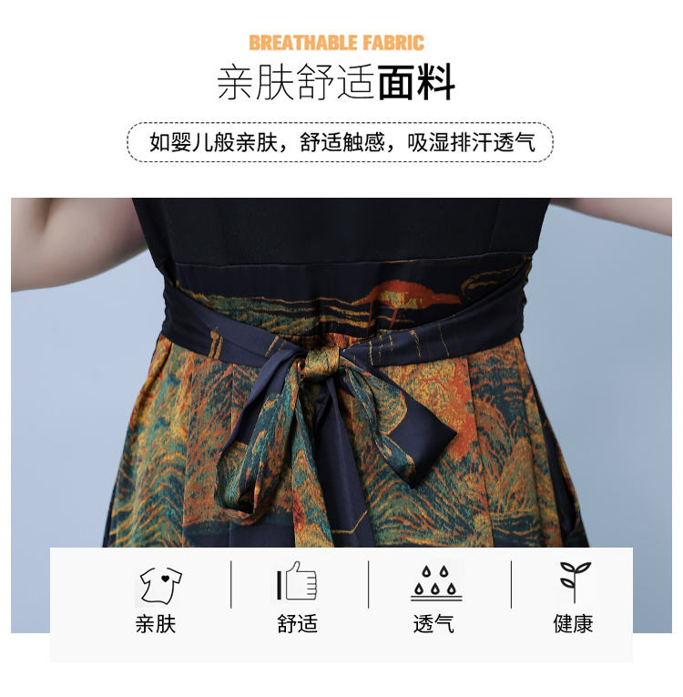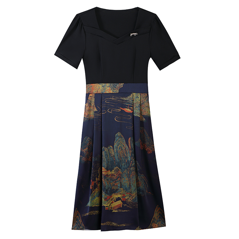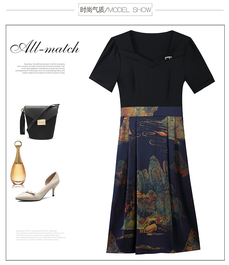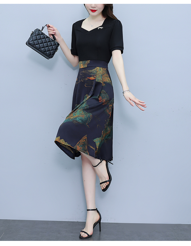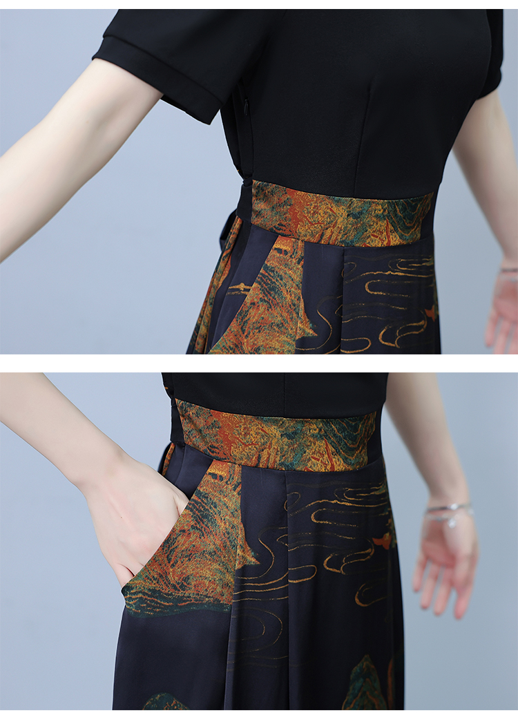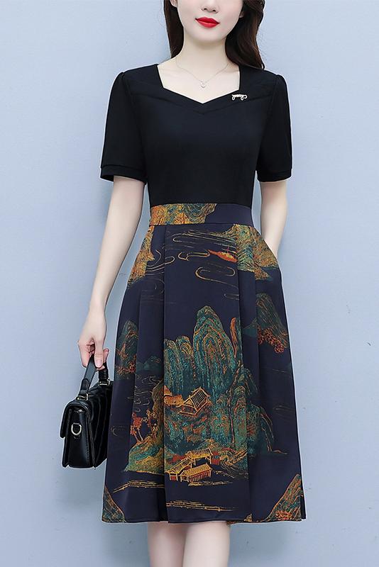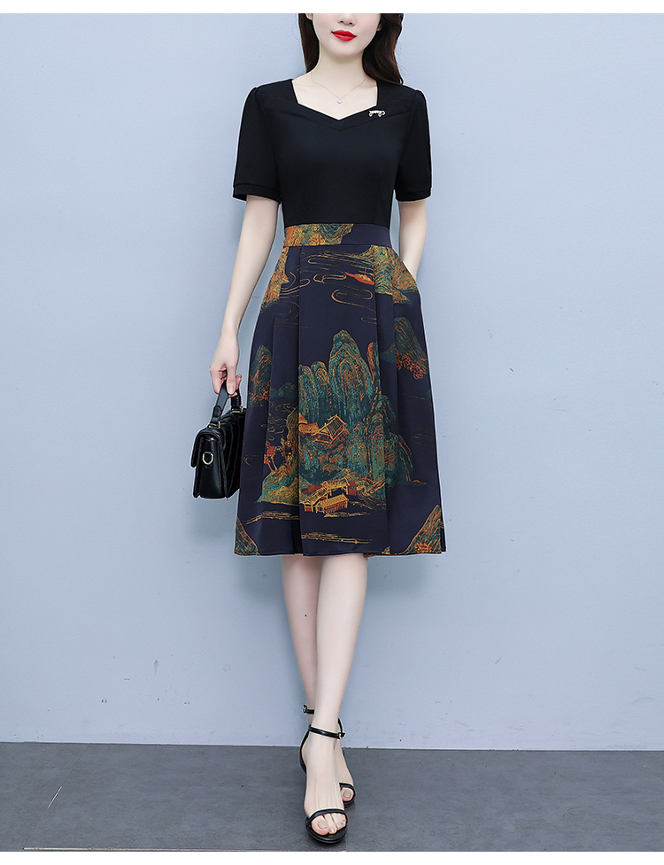 RY263#连衣裙女短袖2026夏装新款收腰显瘦时尚A字裙假两件拼接中长裙子