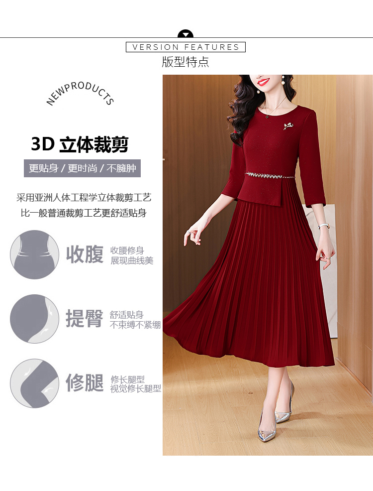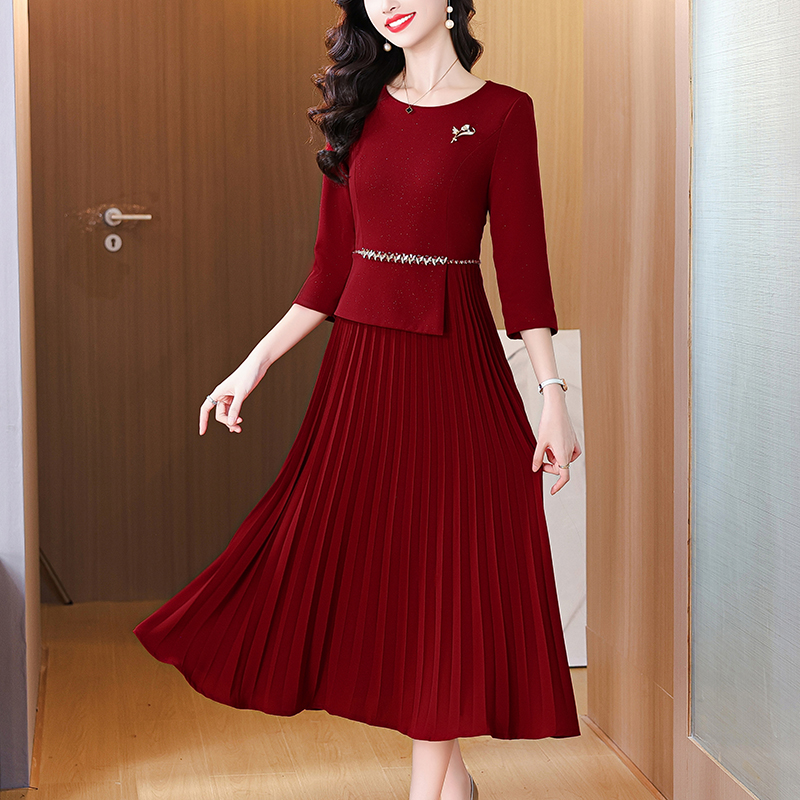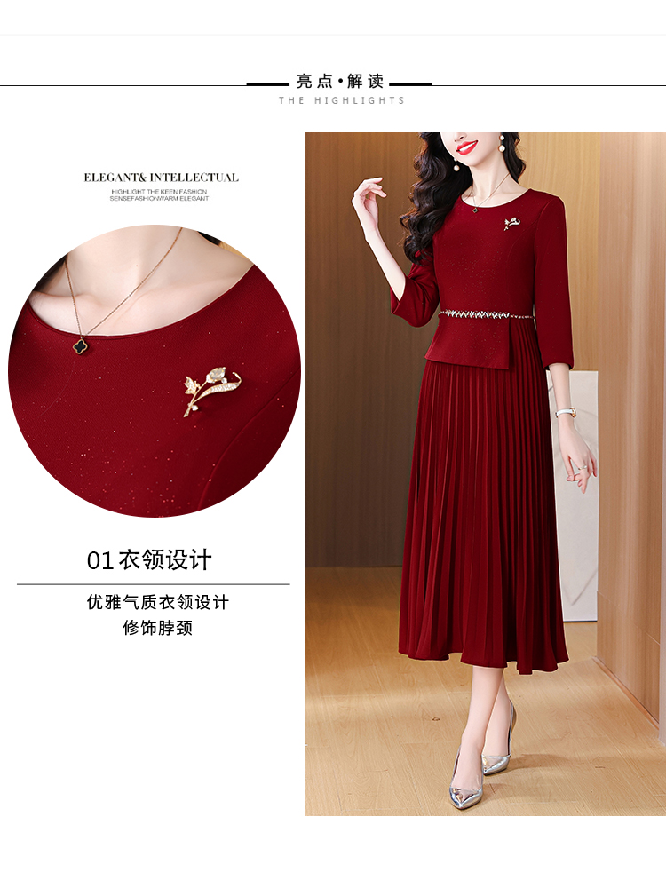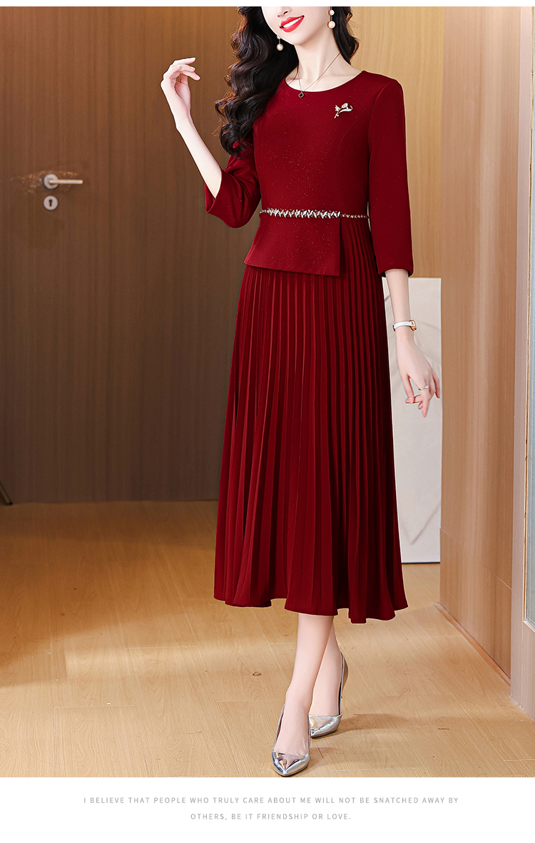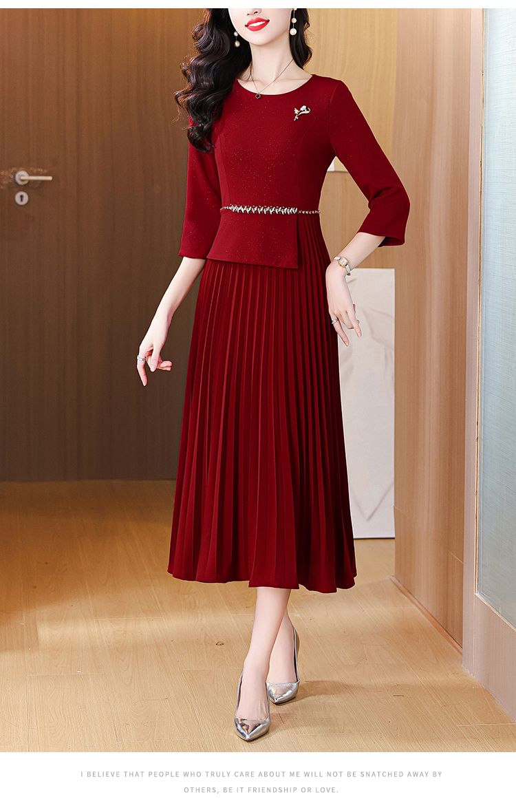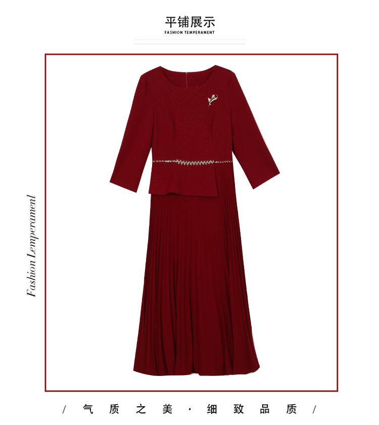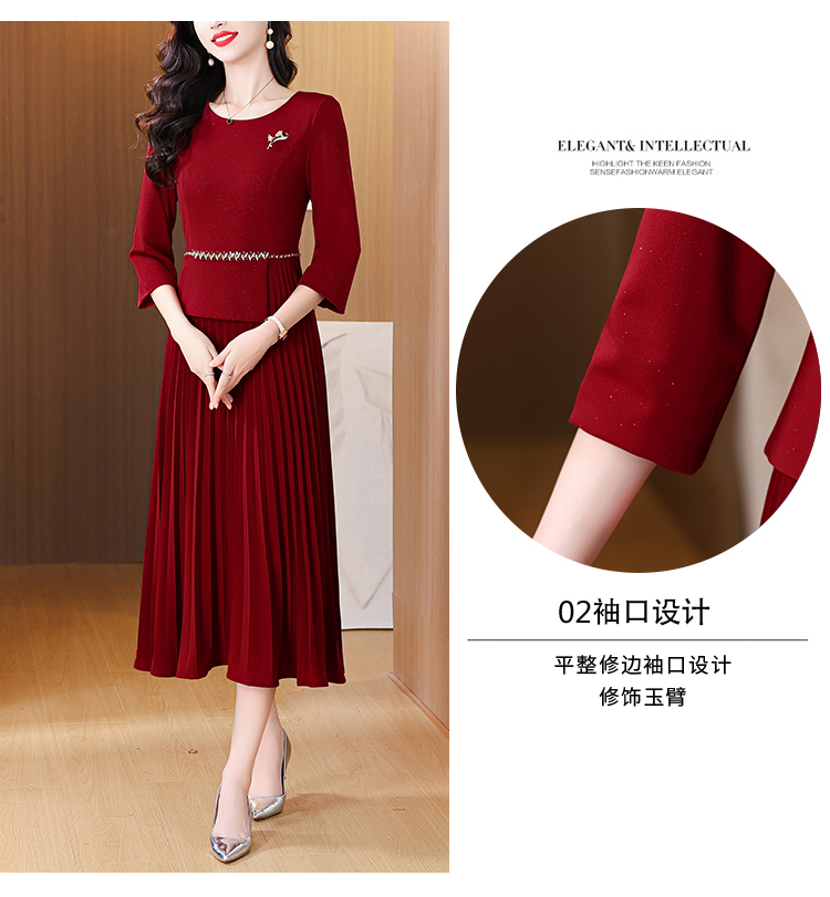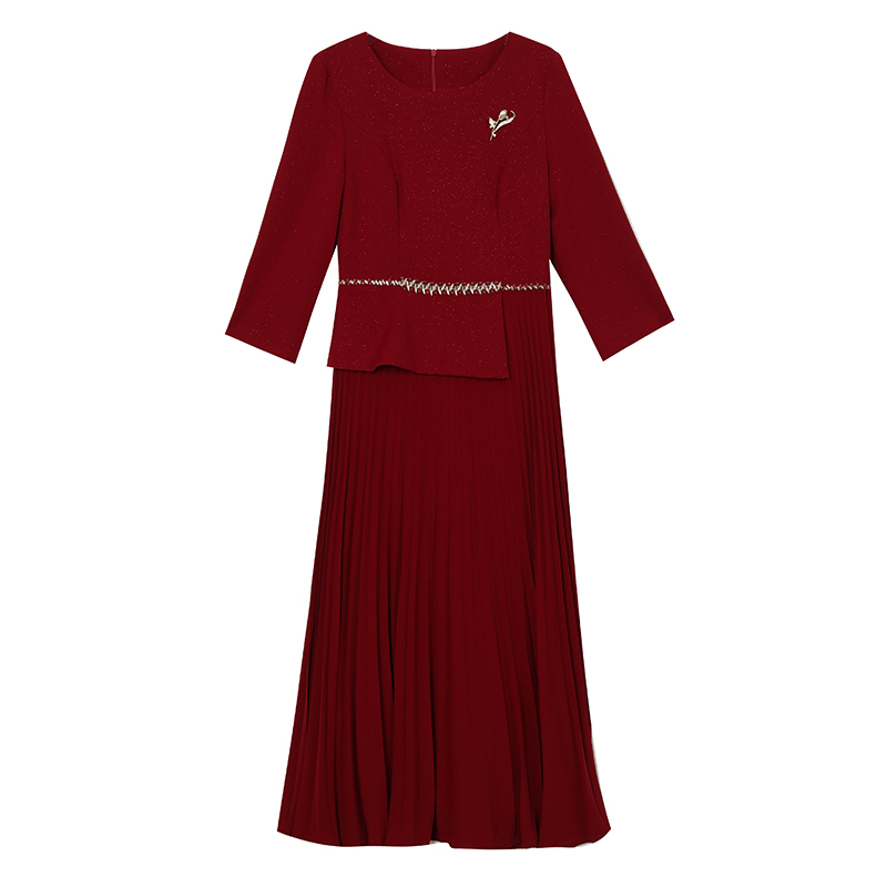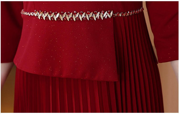 RY749# 妈妈婚宴礼服年轻高贵参加婚礼连衣裙秋冬喜婆婆喜服结婚长袖大气