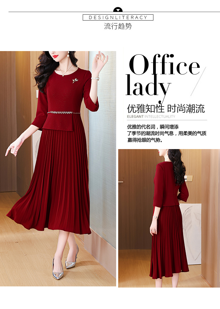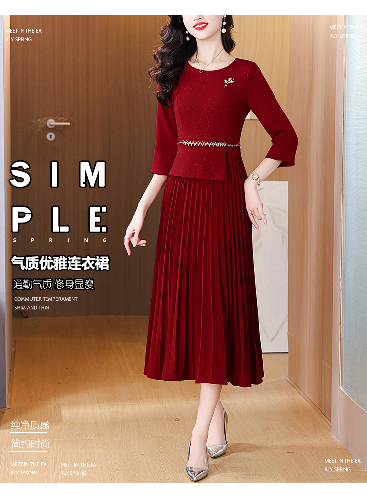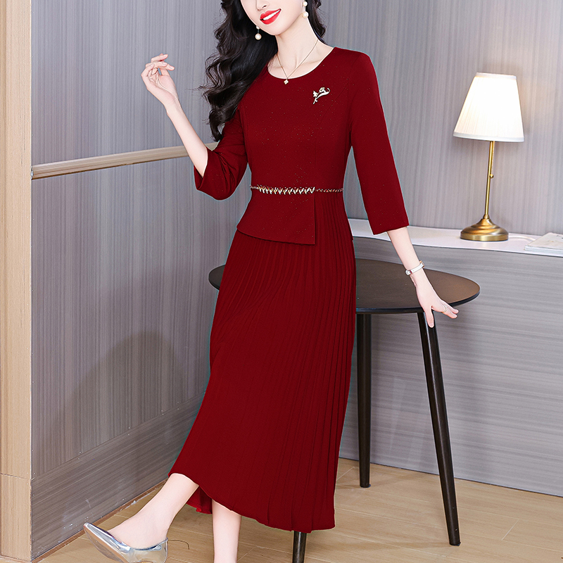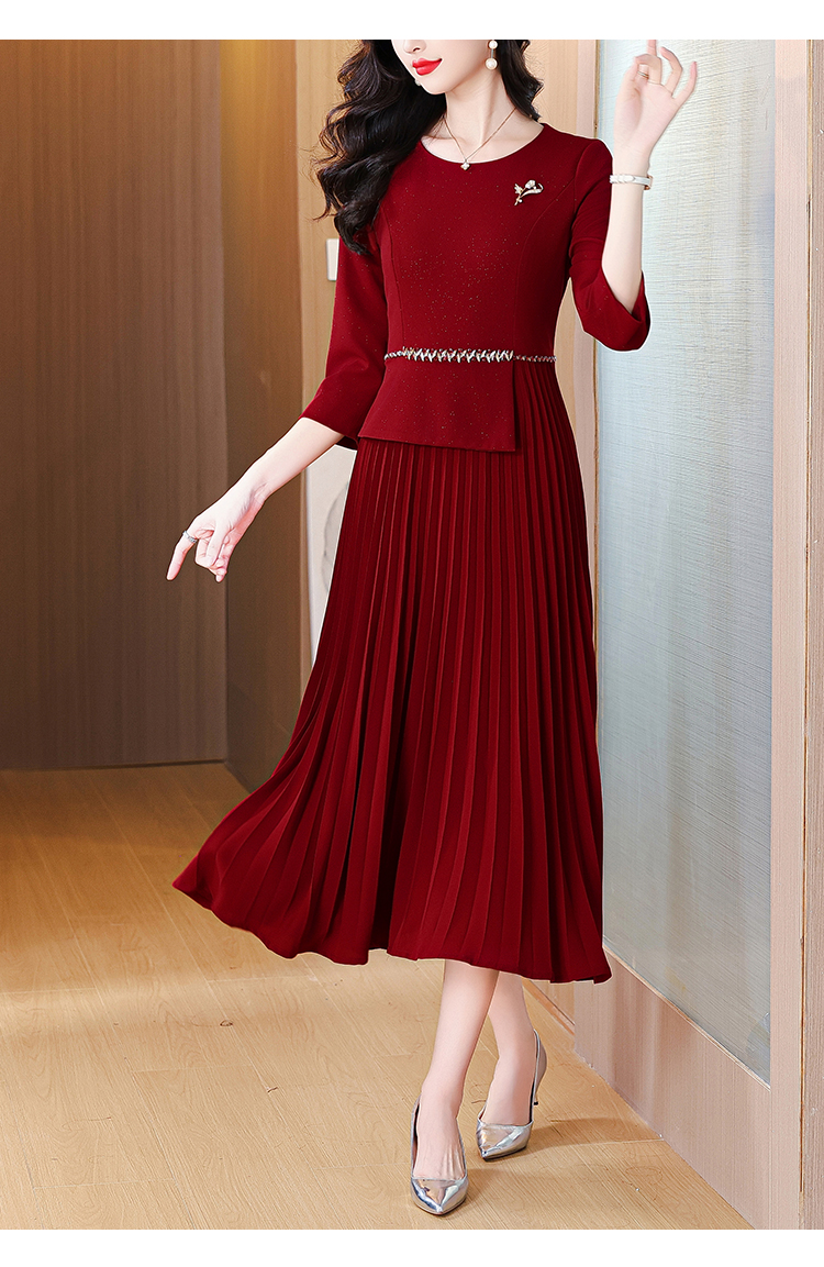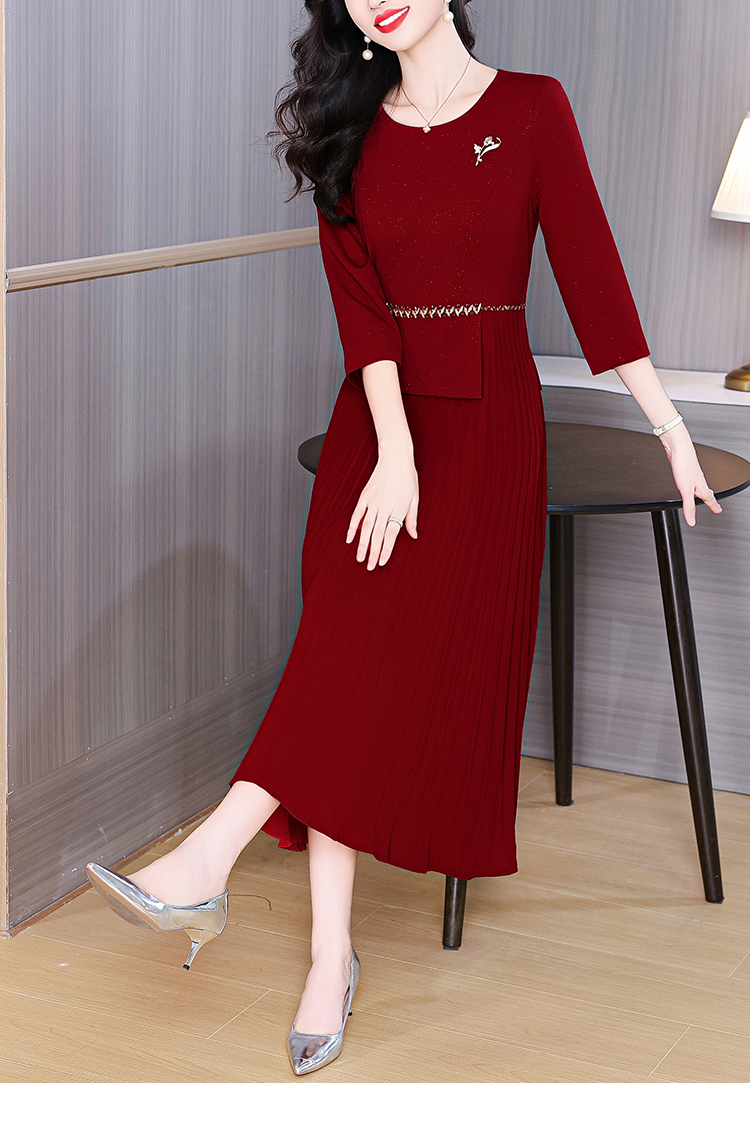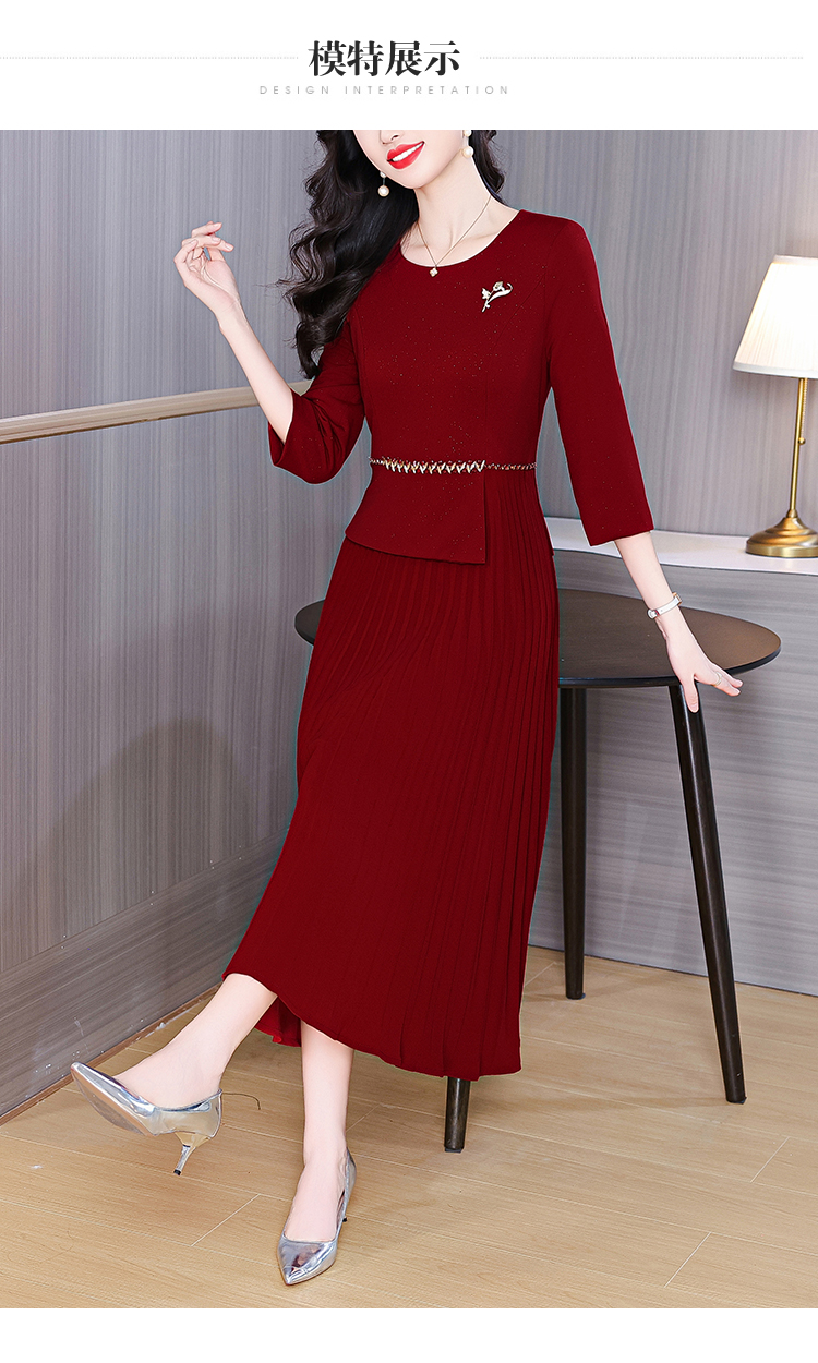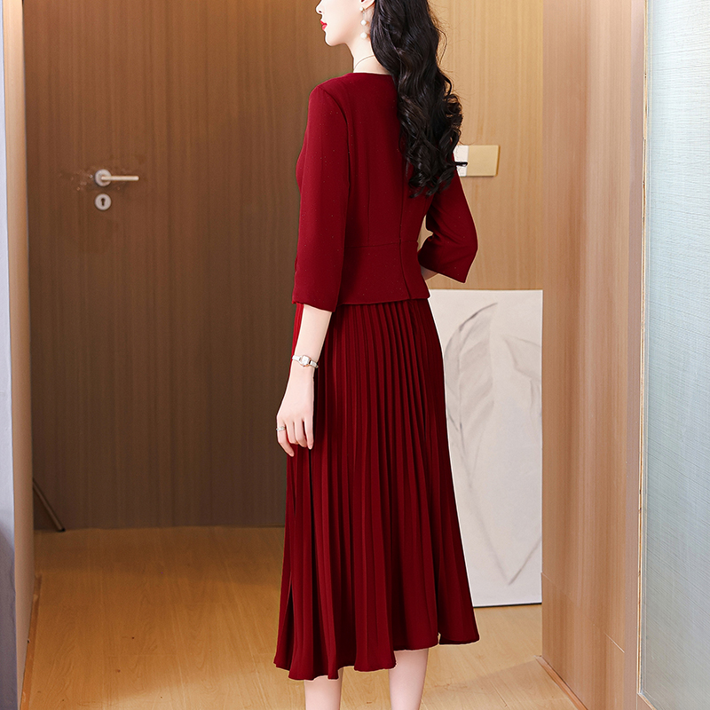 RY749# 妈妈婚宴礼服年轻高贵参加婚礼连衣裙秋冬喜婆婆喜服结婚长袖大气