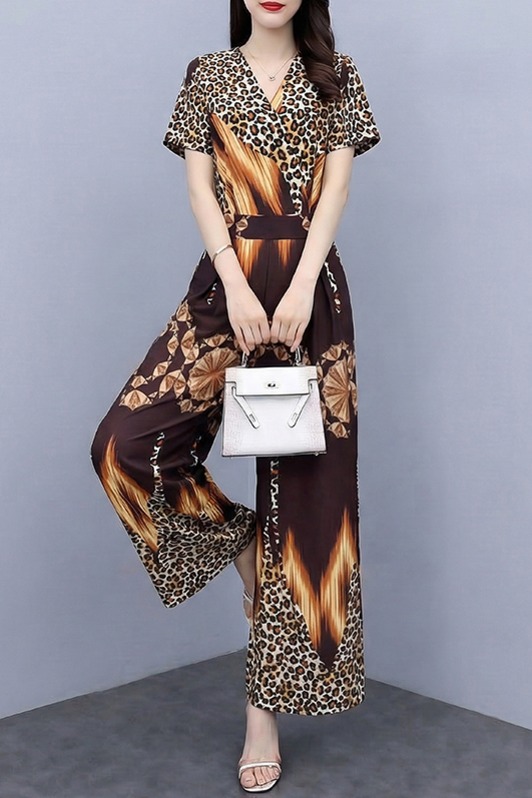 RY1810# 2026新款高端独特印花连体裤套装超好看时尚连体裤假两件套女夏季
