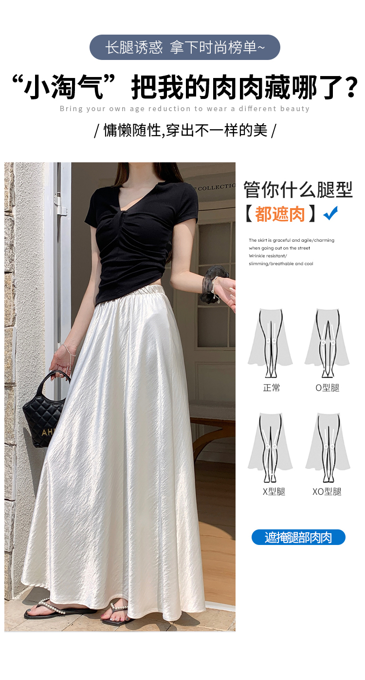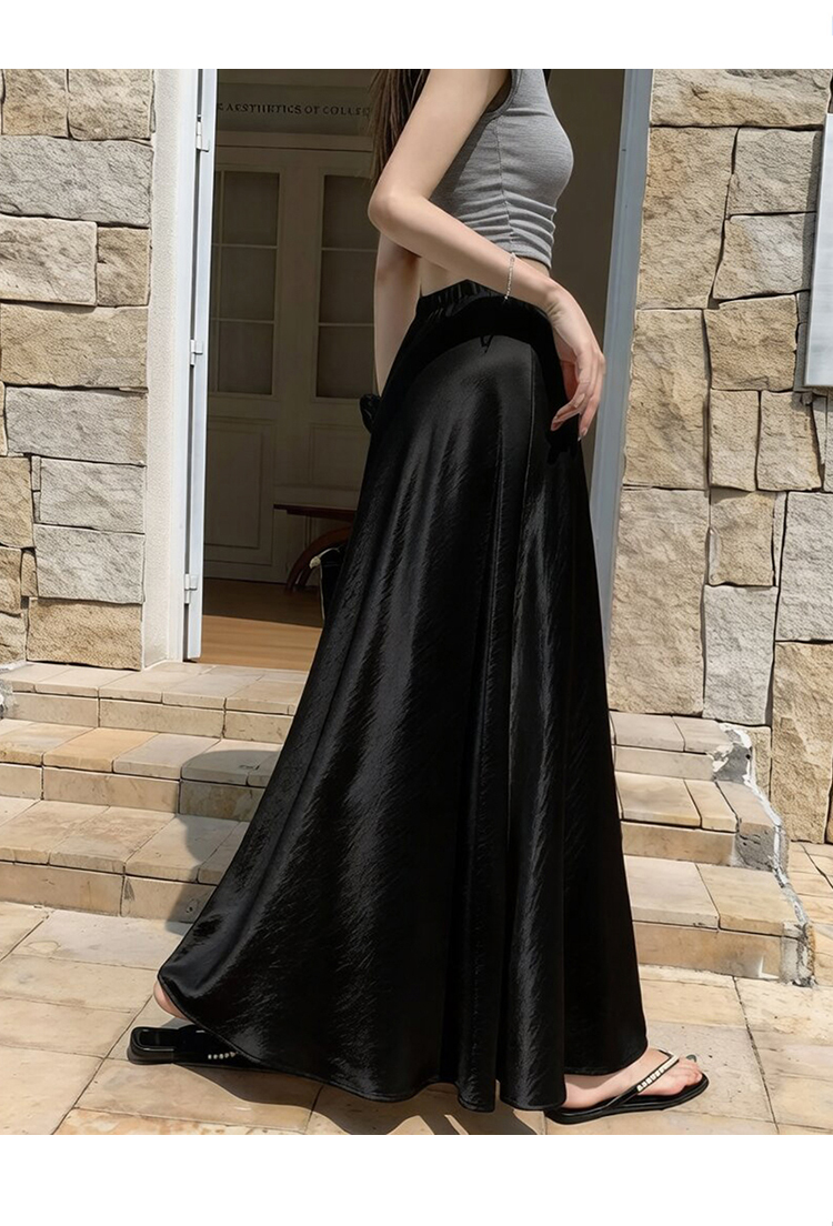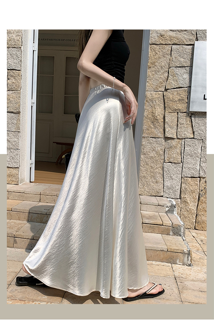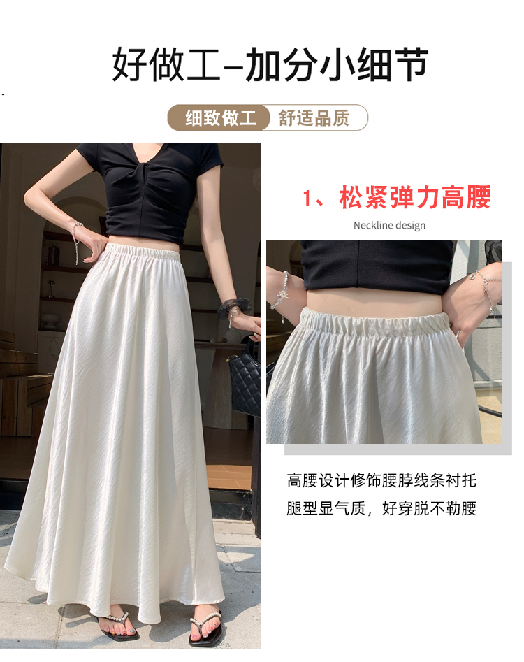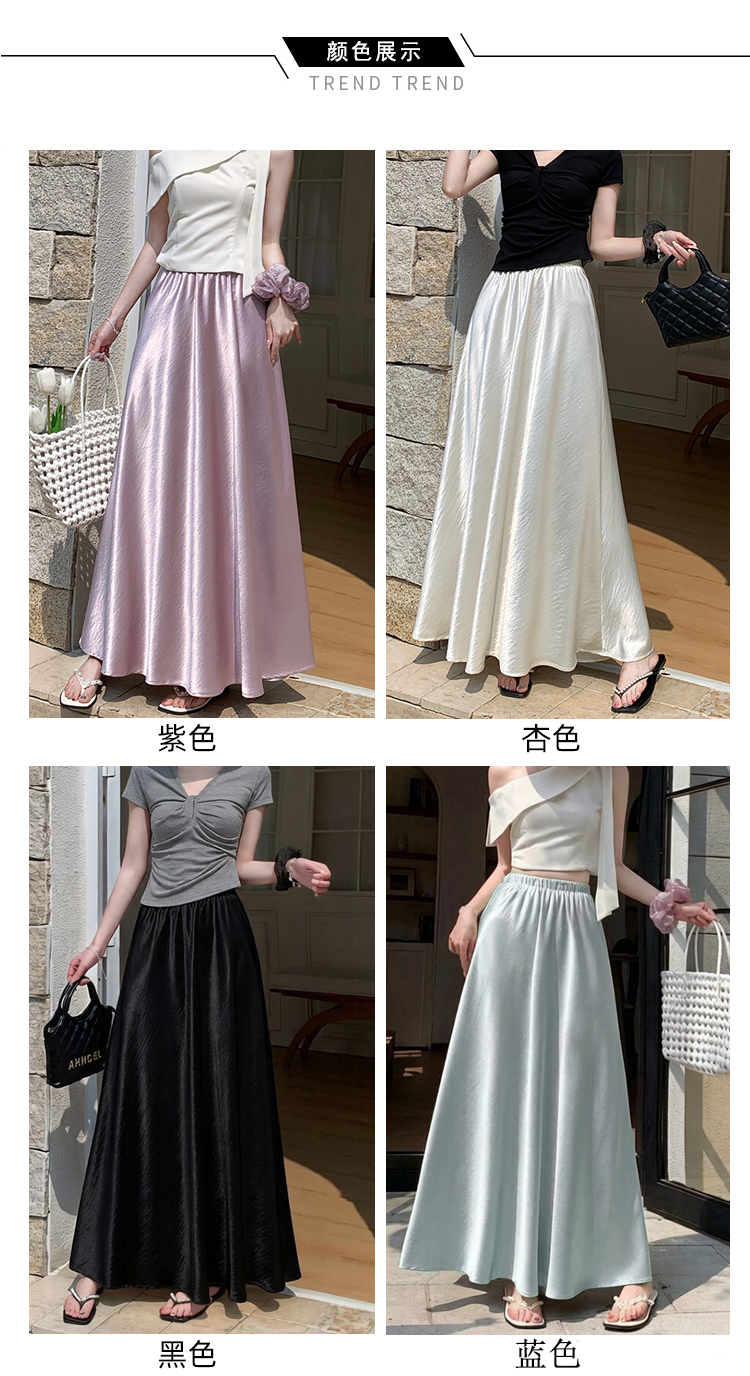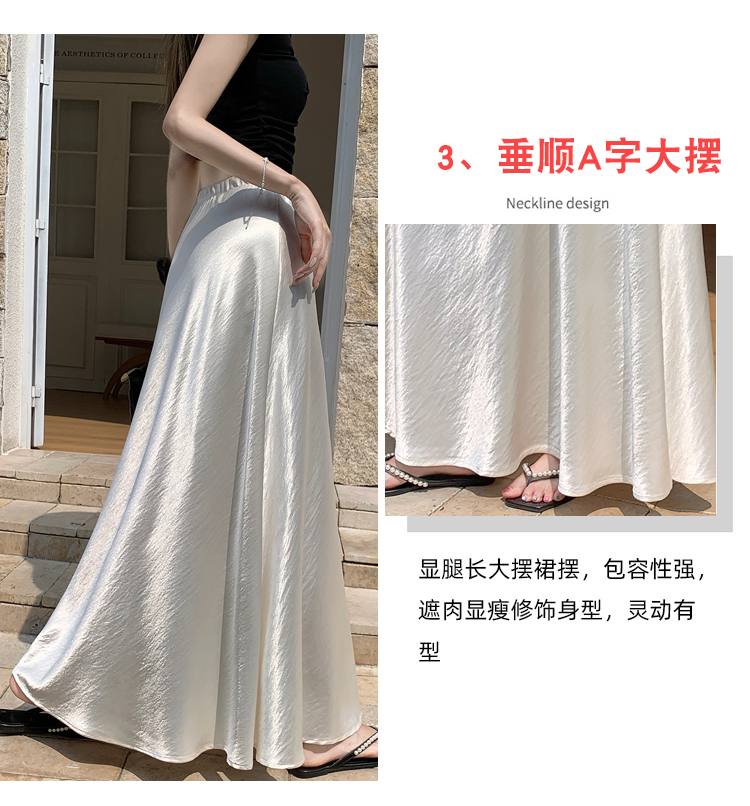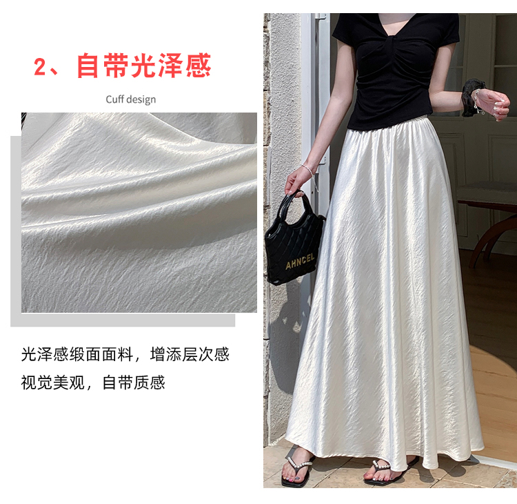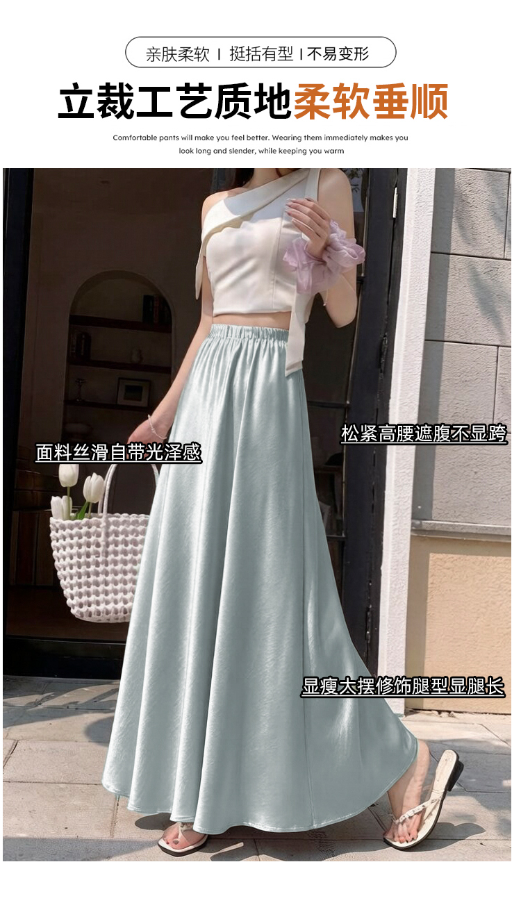 RY1887# 高级感醋酸缎面半身裙女夏2026新款高腰显瘦垂感a字大摆伞裙长裙