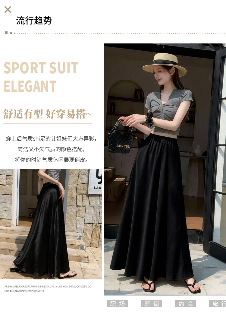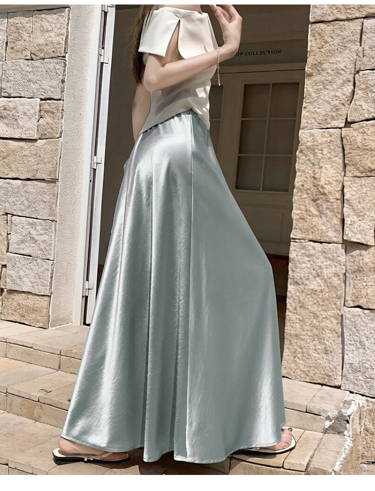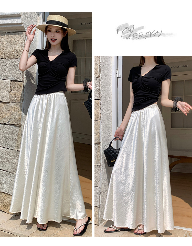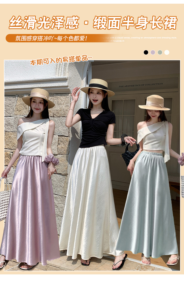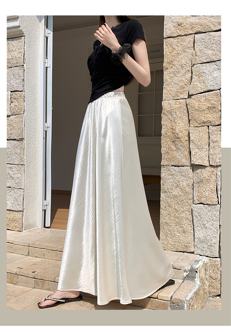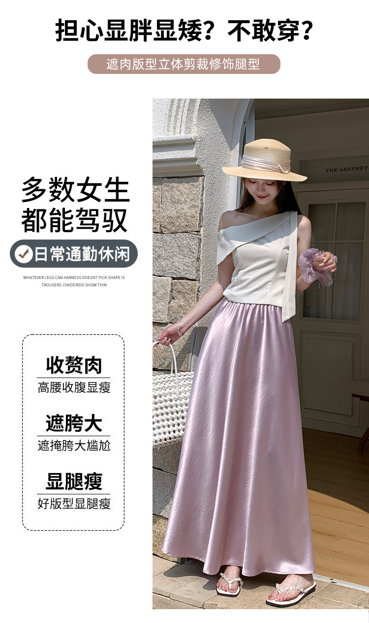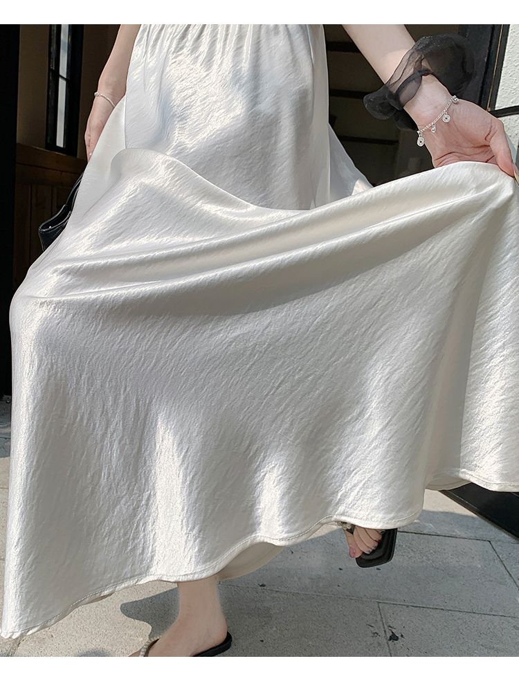 RY1887# 高级感醋酸缎面半身裙女夏2026新款高腰显瘦垂感a字大摆伞裙长裙