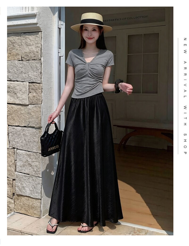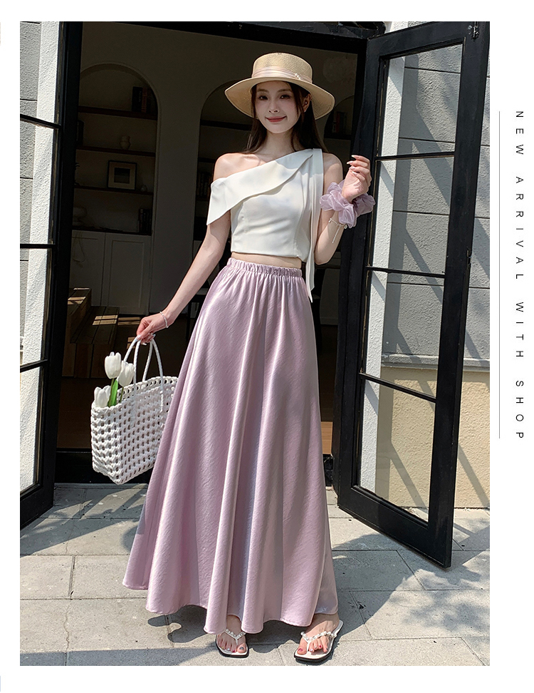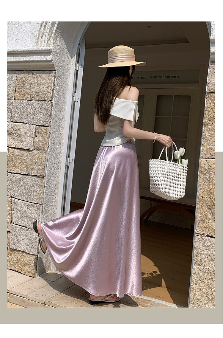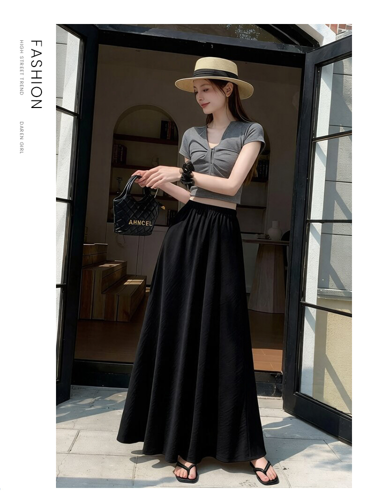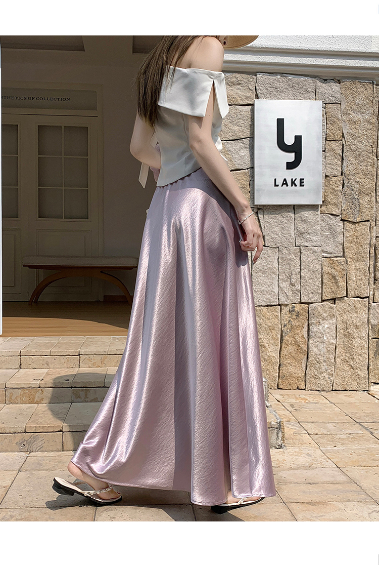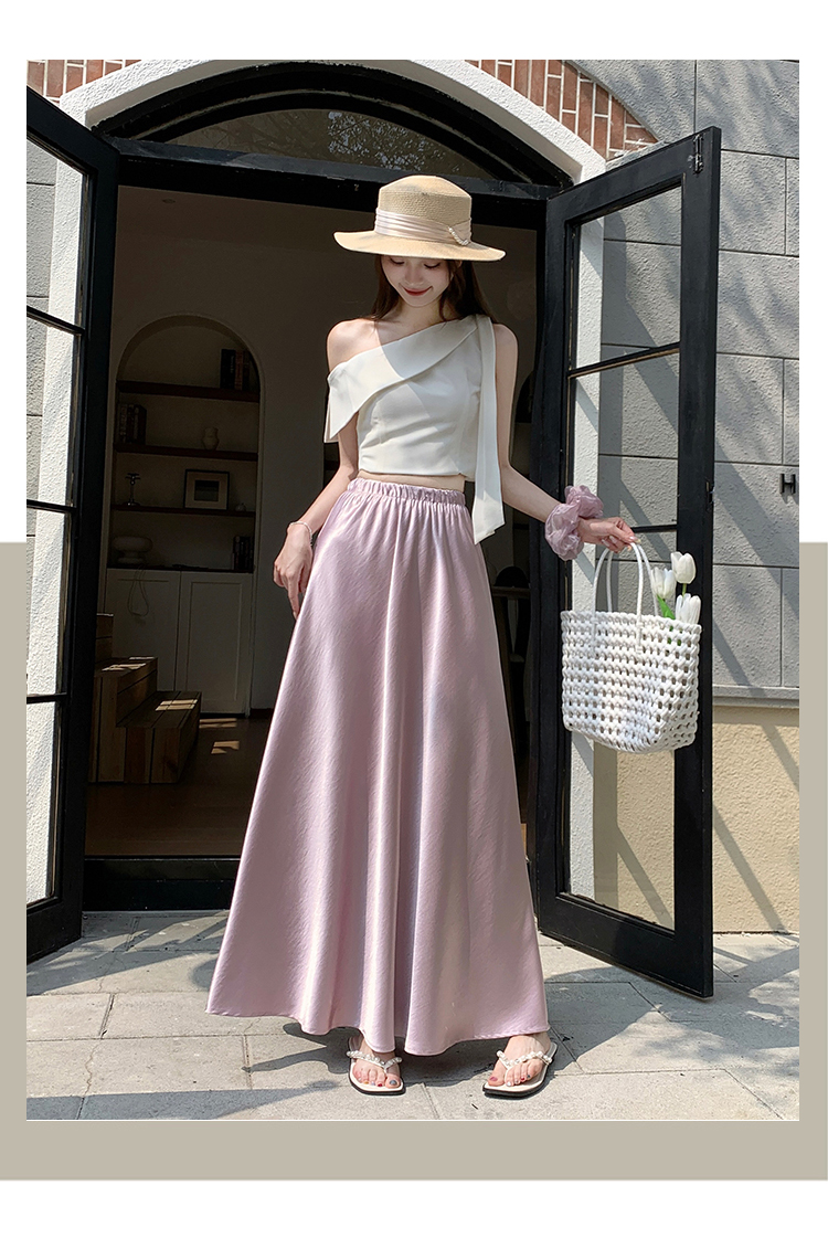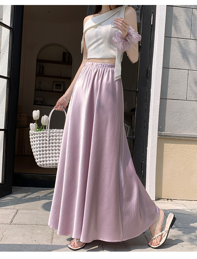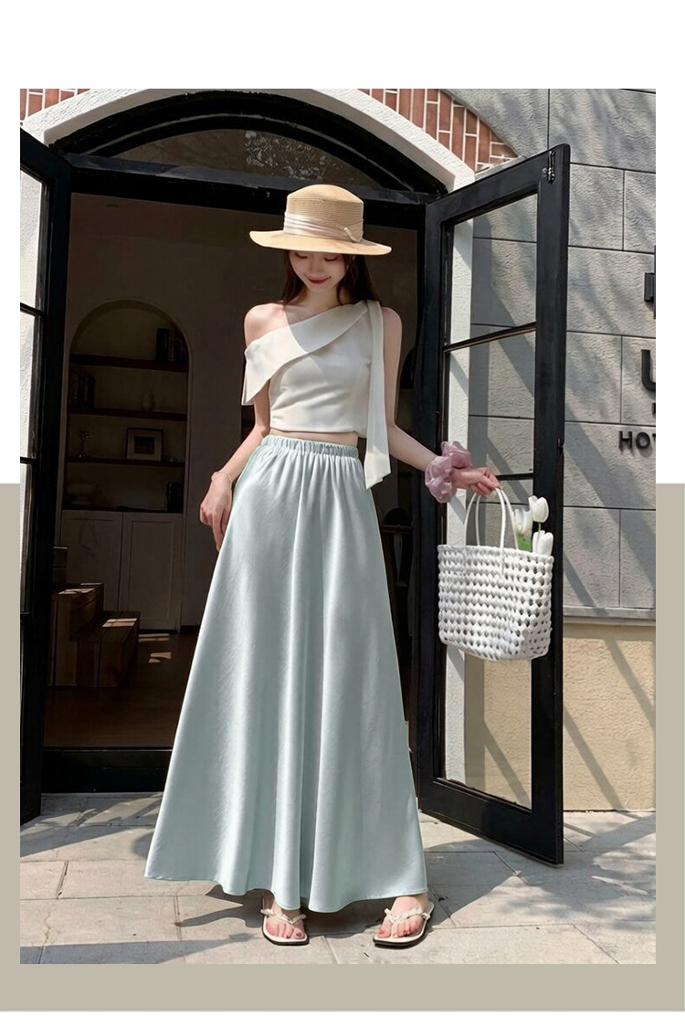 RY1887# 高级感醋酸缎面半身裙女夏2026新款高腰显瘦垂感a字大摆伞裙长裙