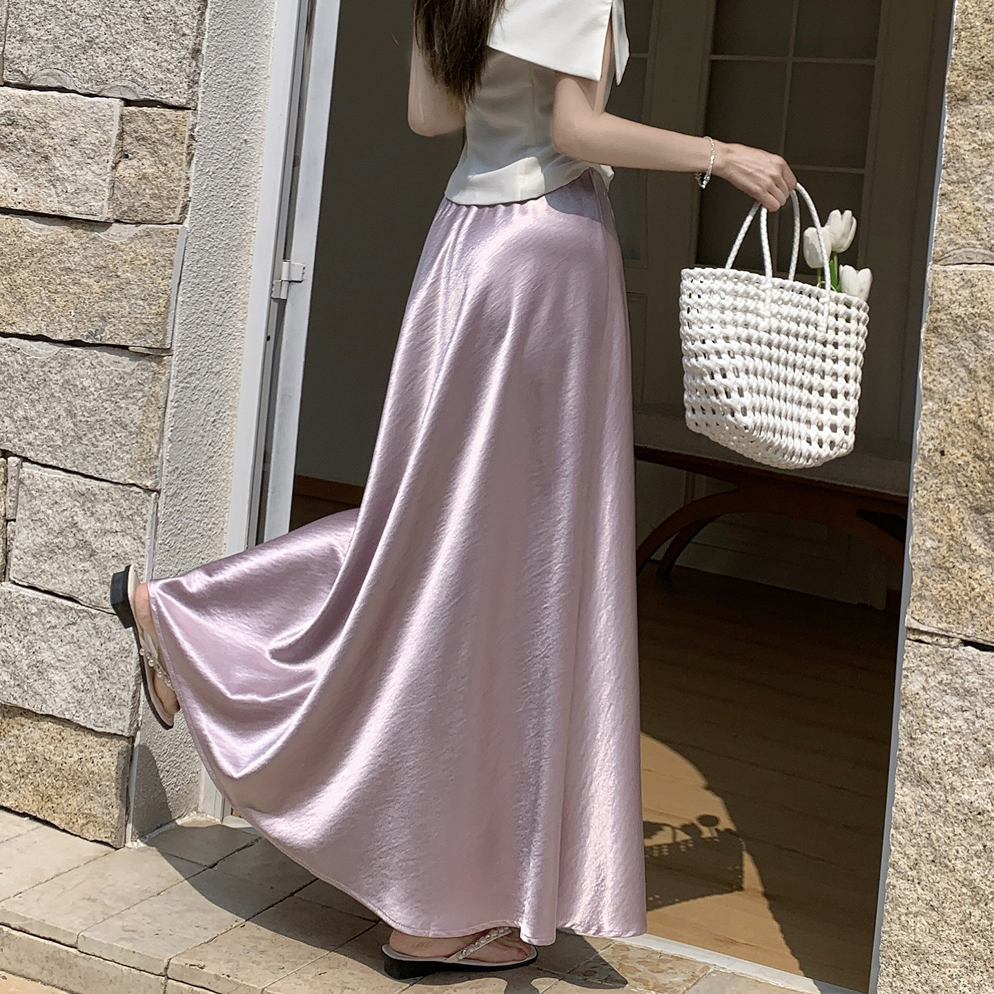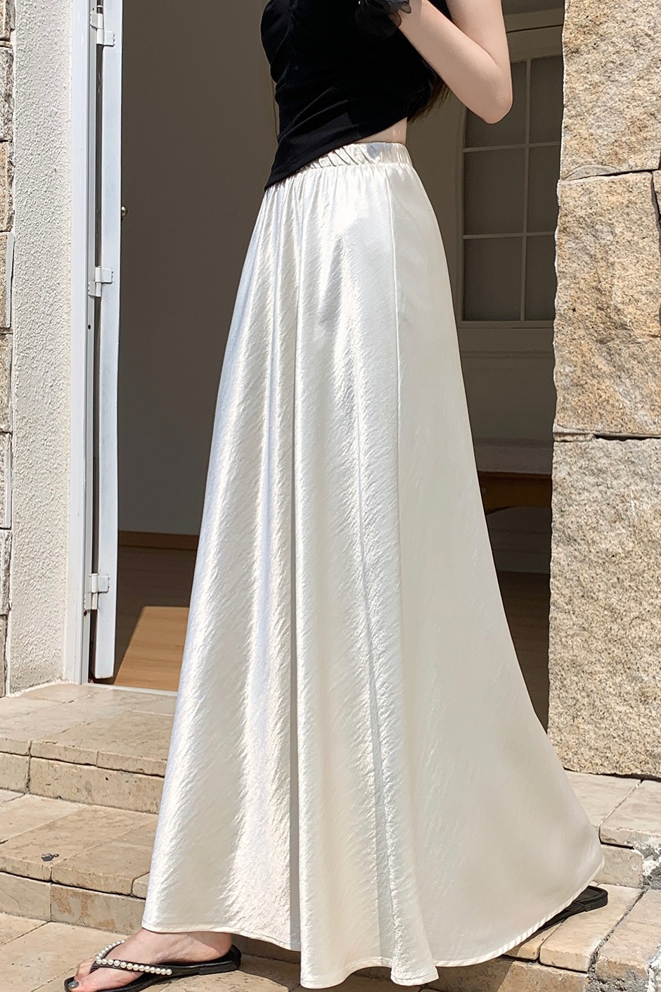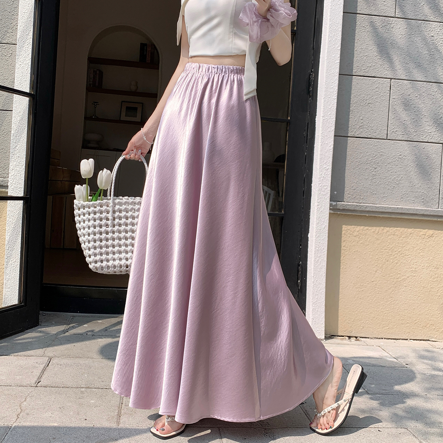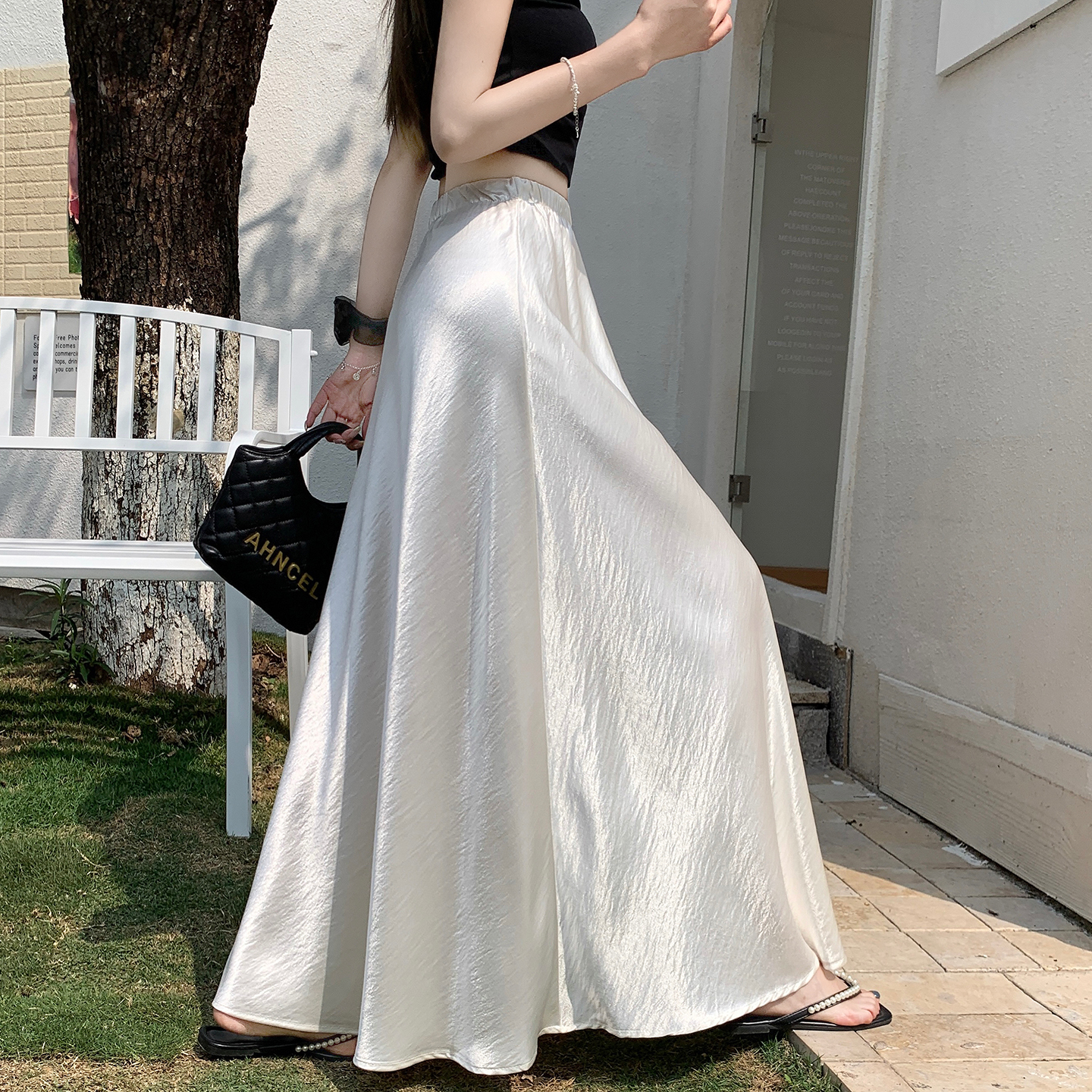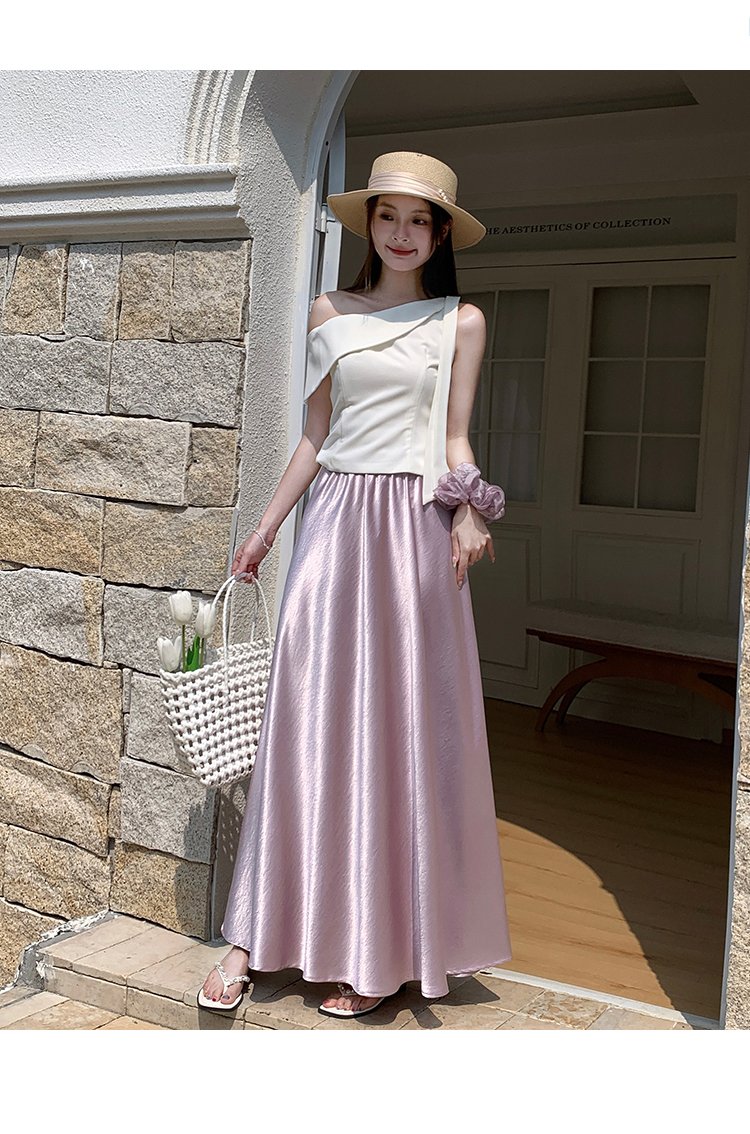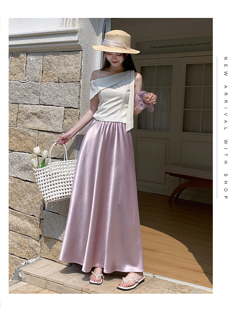 RY1887# 高级感醋酸缎面半身裙女夏2026新款高腰显瘦垂感a字大摆伞裙长裙