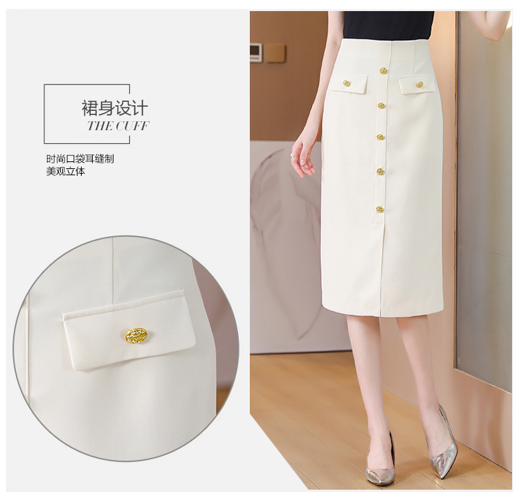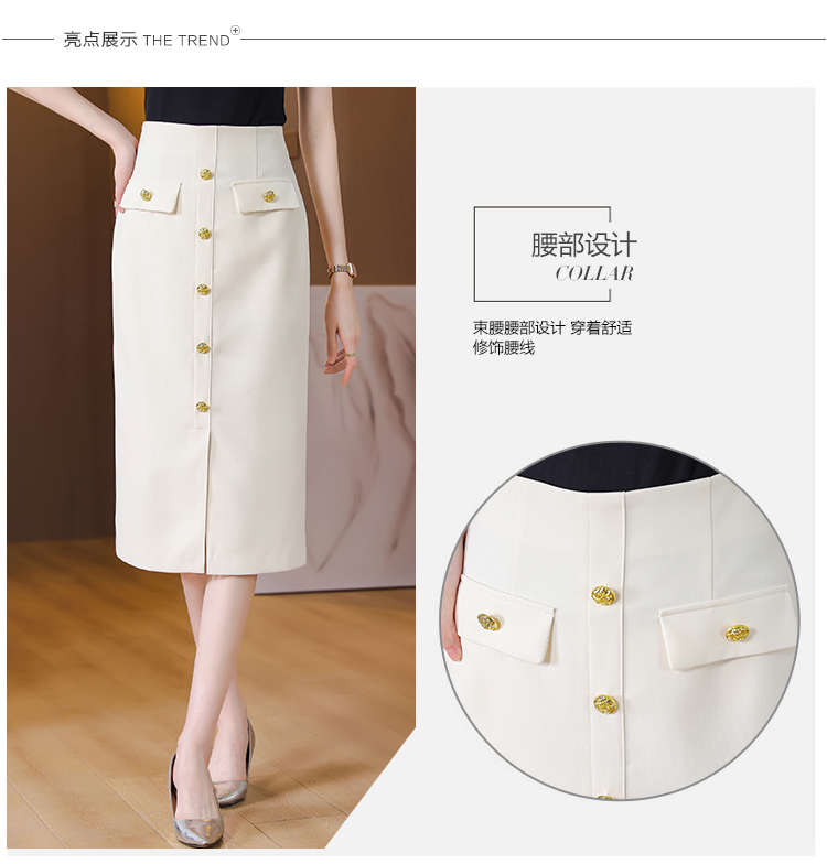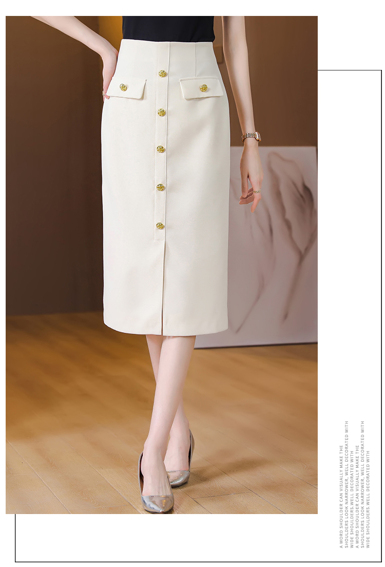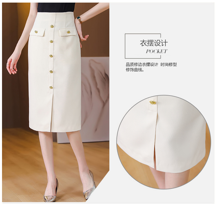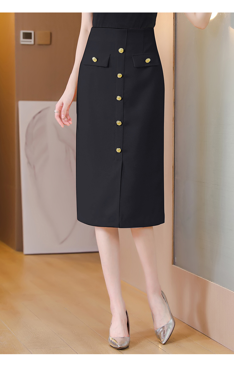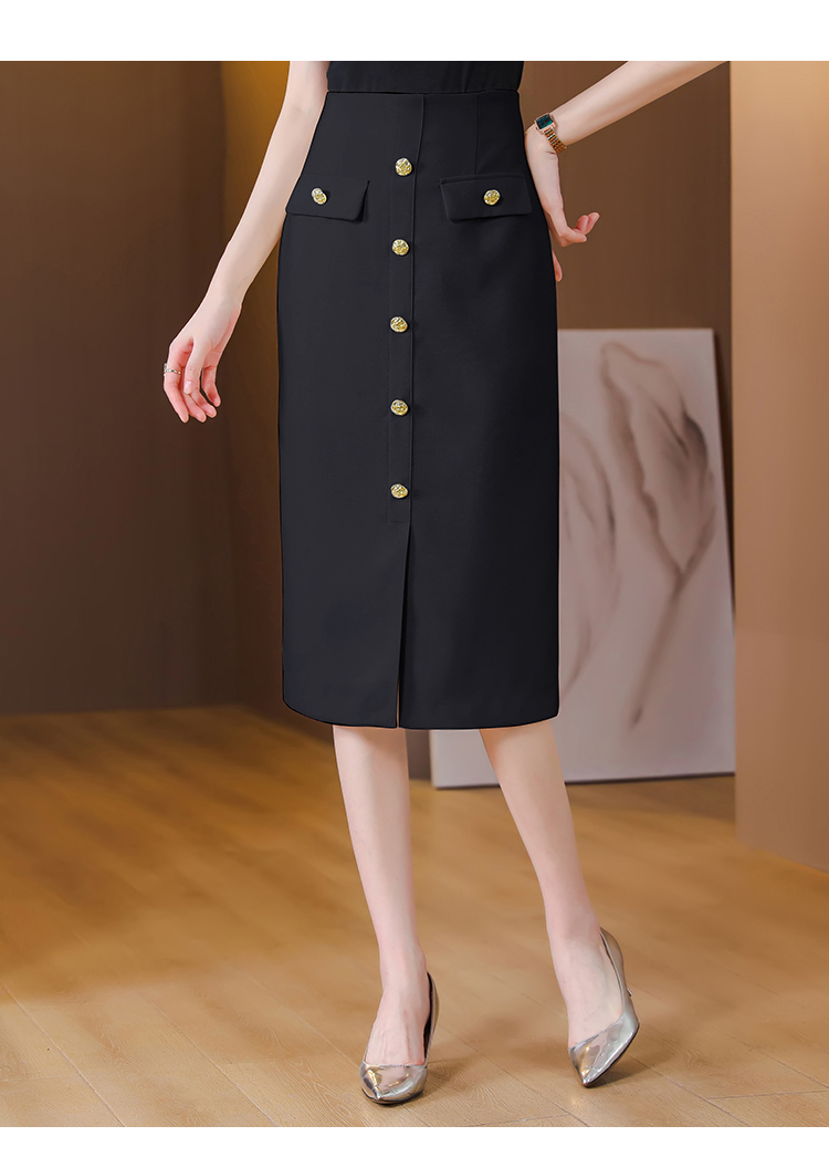 RY1972# 法式简约高腰半身裙女2026春季新品别致洋气纽扣装饰包臀半身裙女