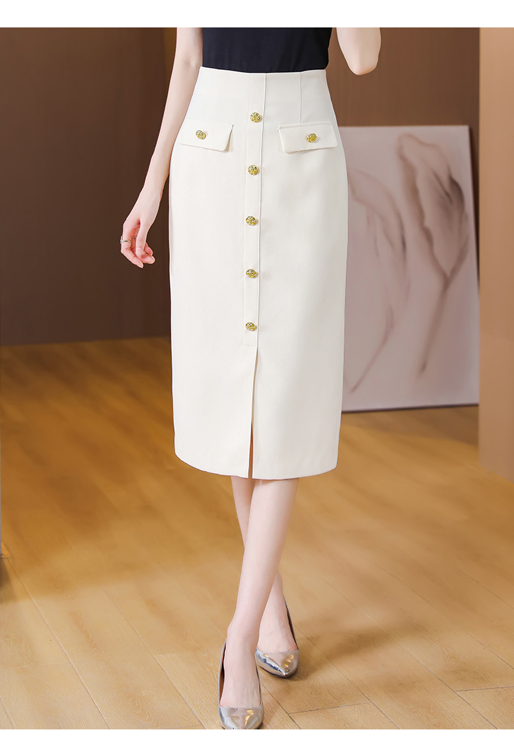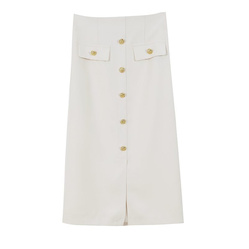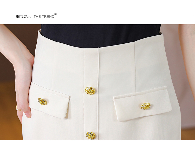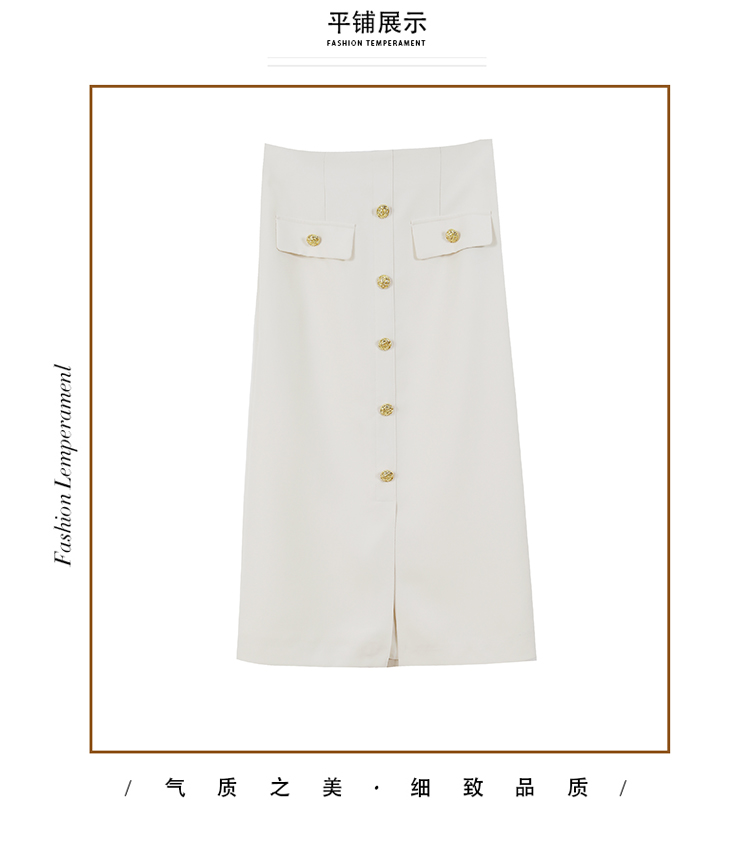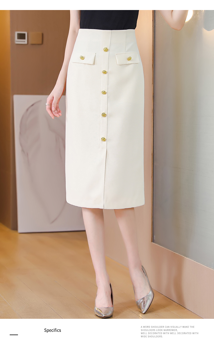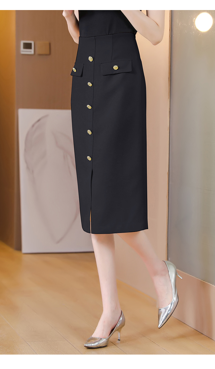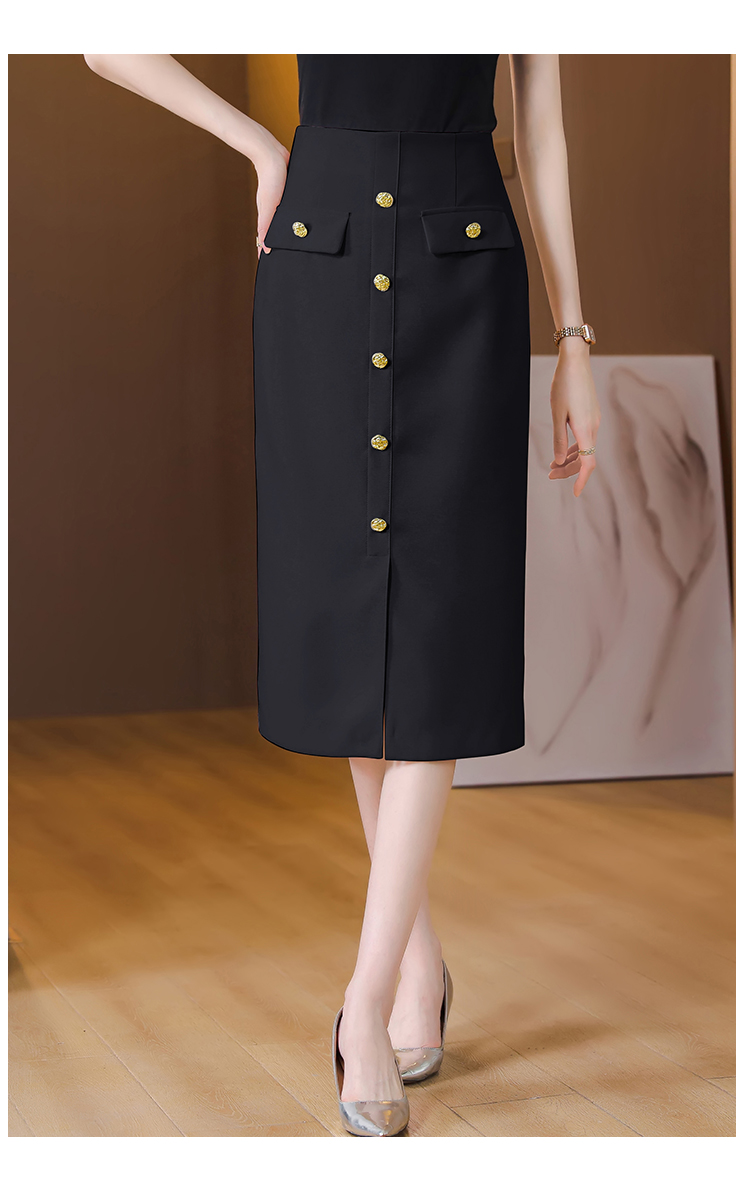 RY1972# 法式简约高腰半身裙女2026春季新品别致洋气纽扣装饰包臀半身裙女