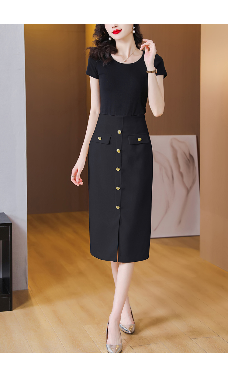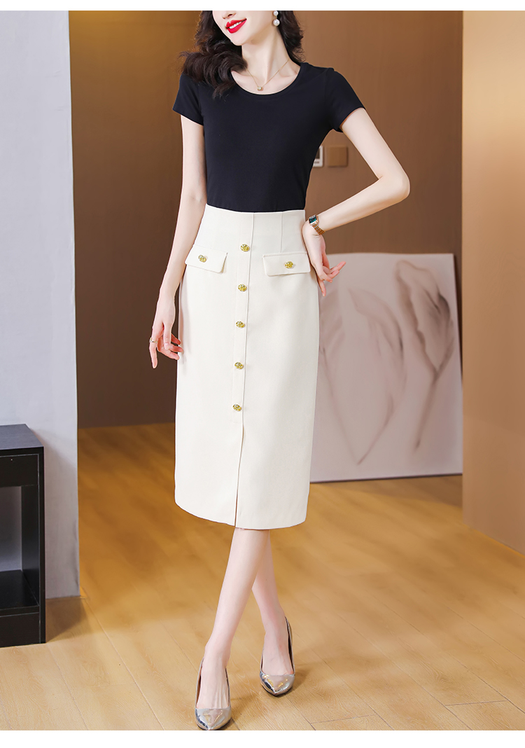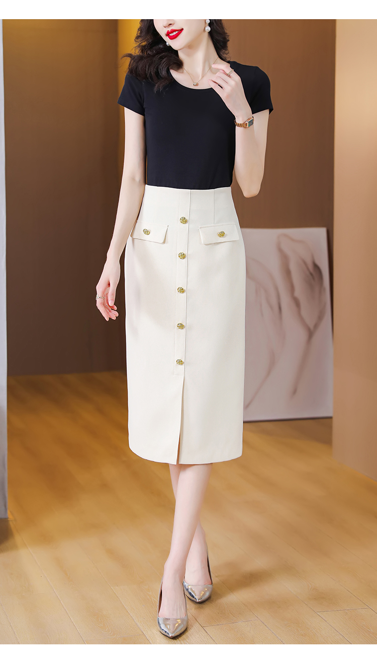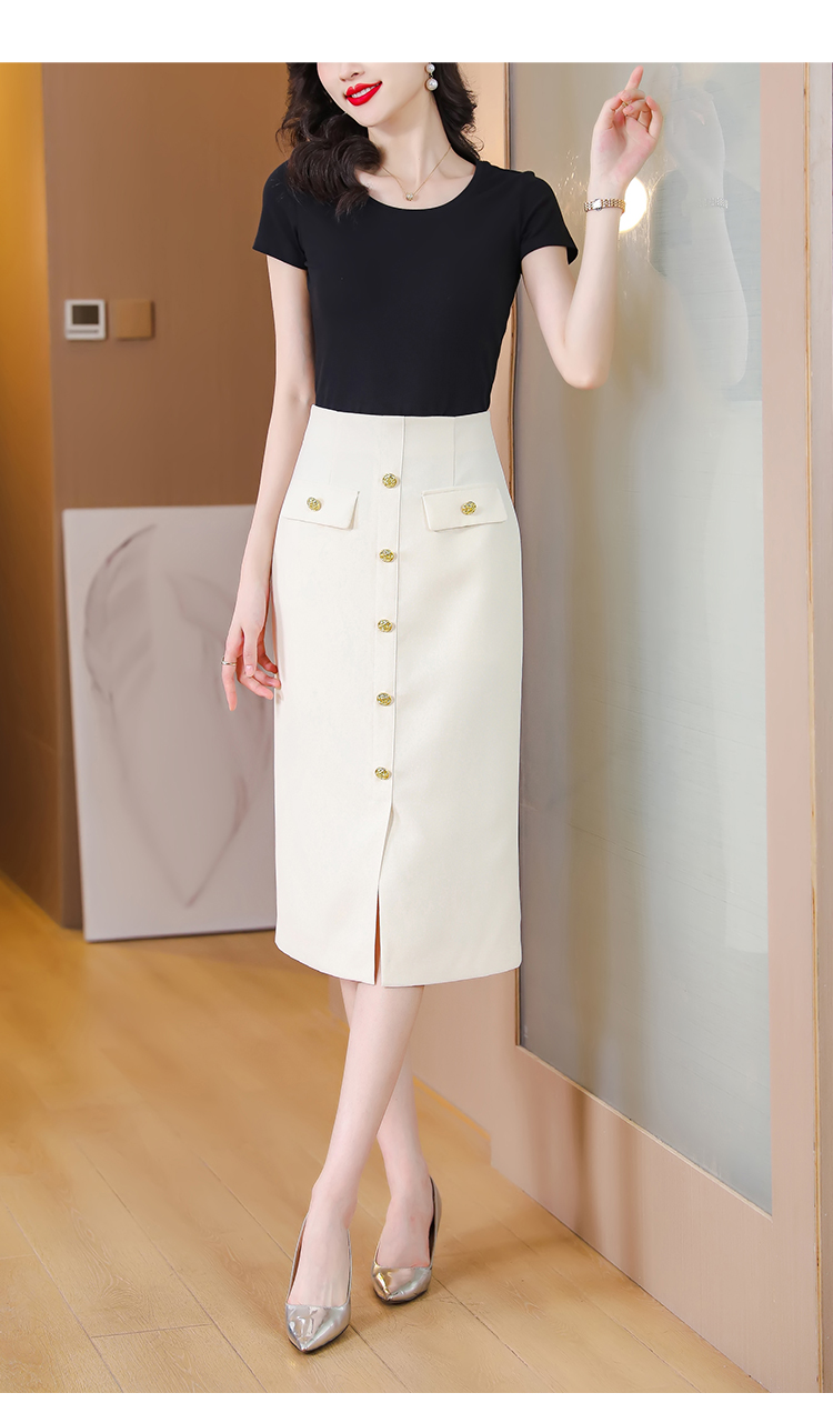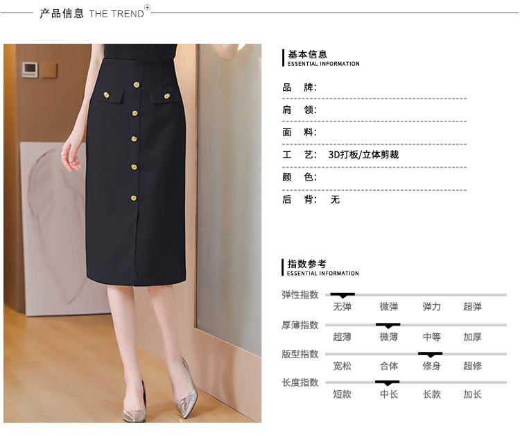 RY1972# 法式简约高腰半身裙女2026春季新品别致洋气纽扣装饰包臀半身裙女