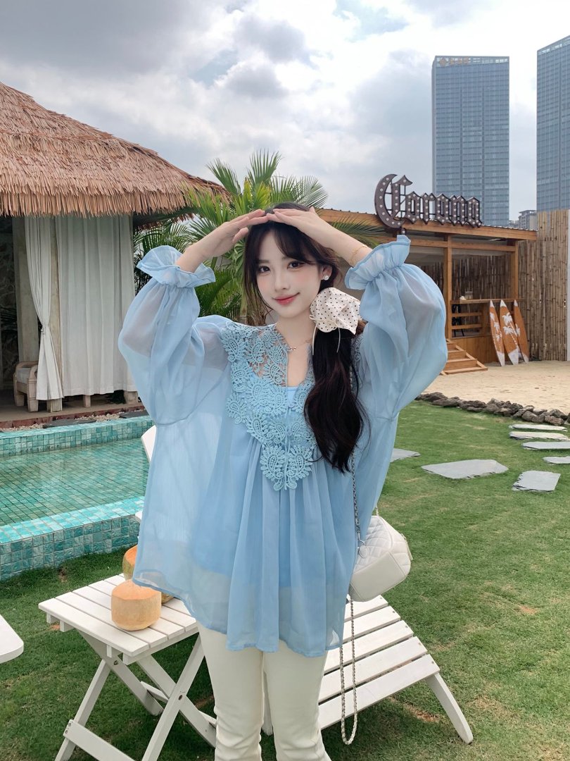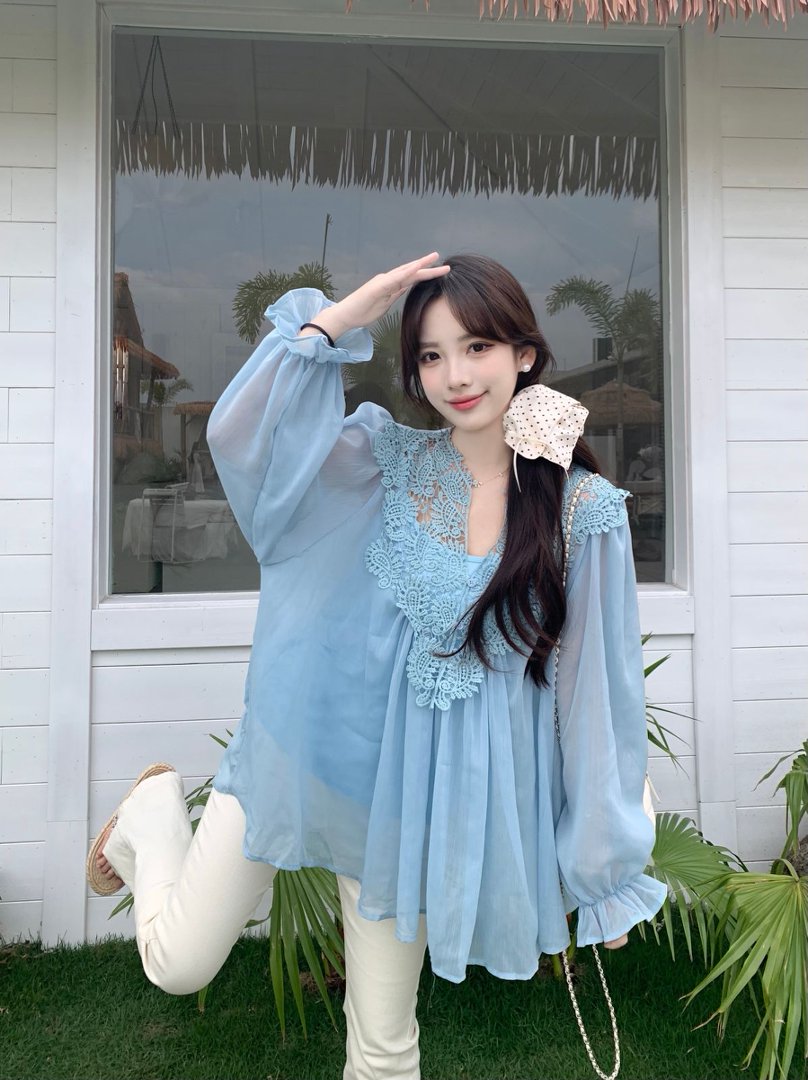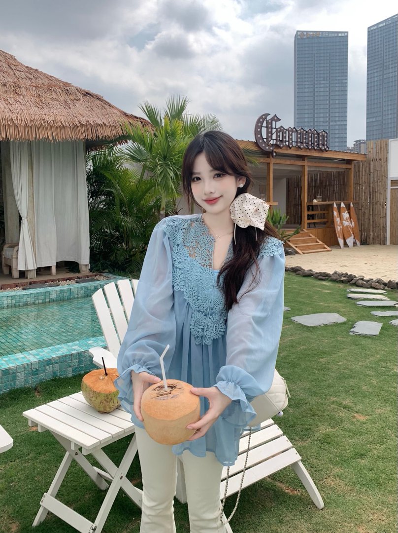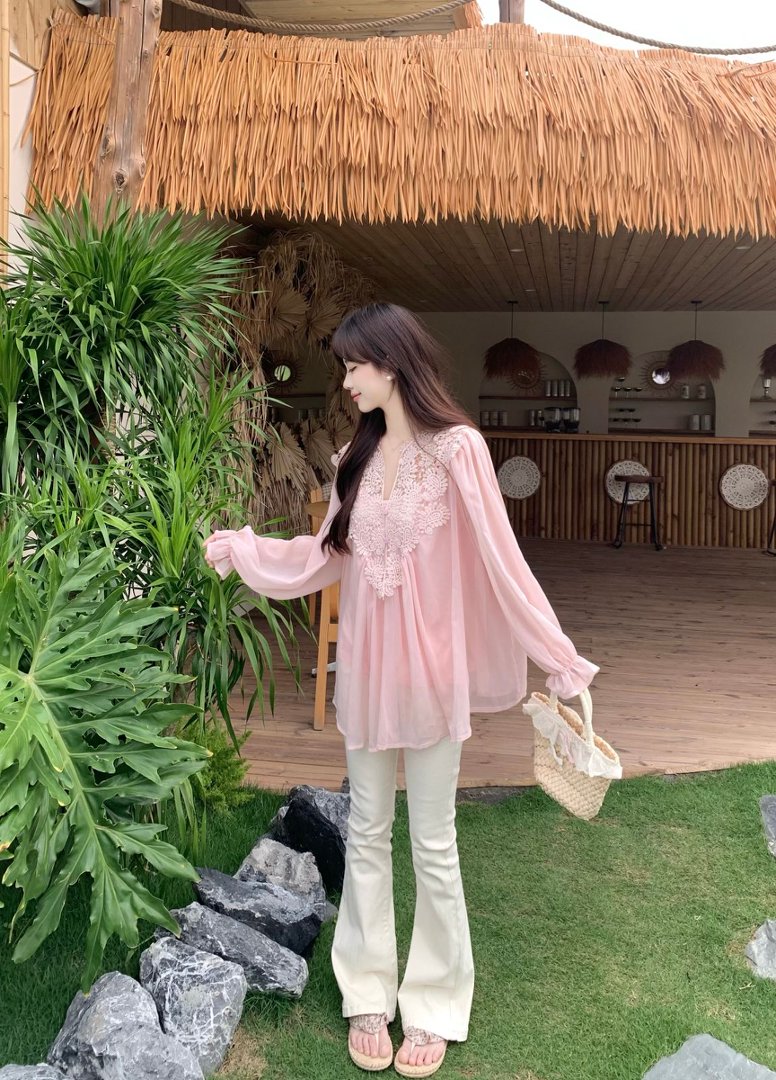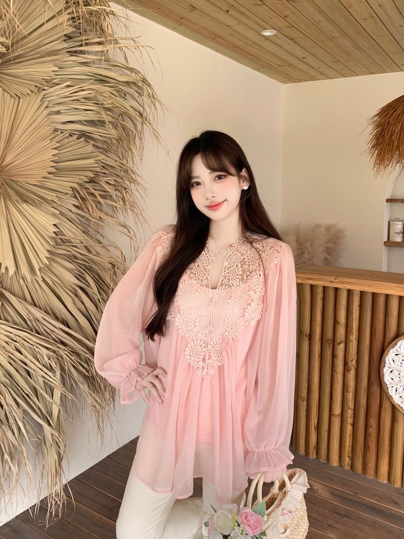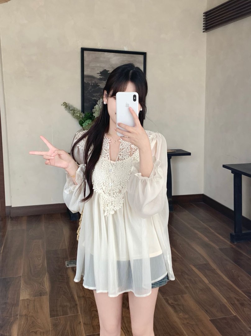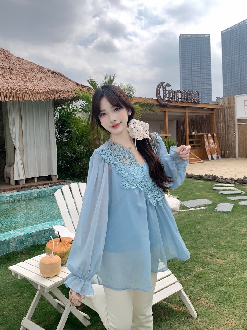 RY2047# 大码复古优雅立体钩花蕾丝拼接雪纺衫小衫吊带背心套装女宽松上衣
