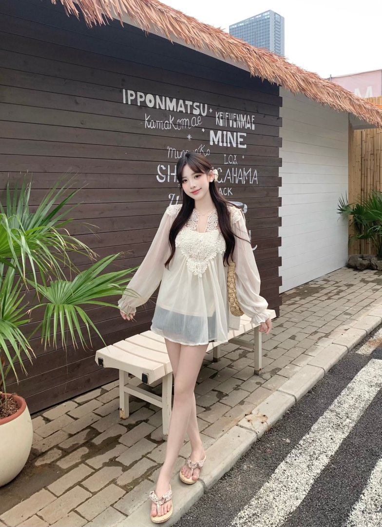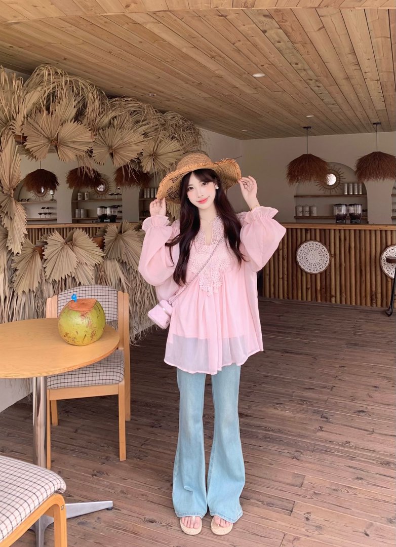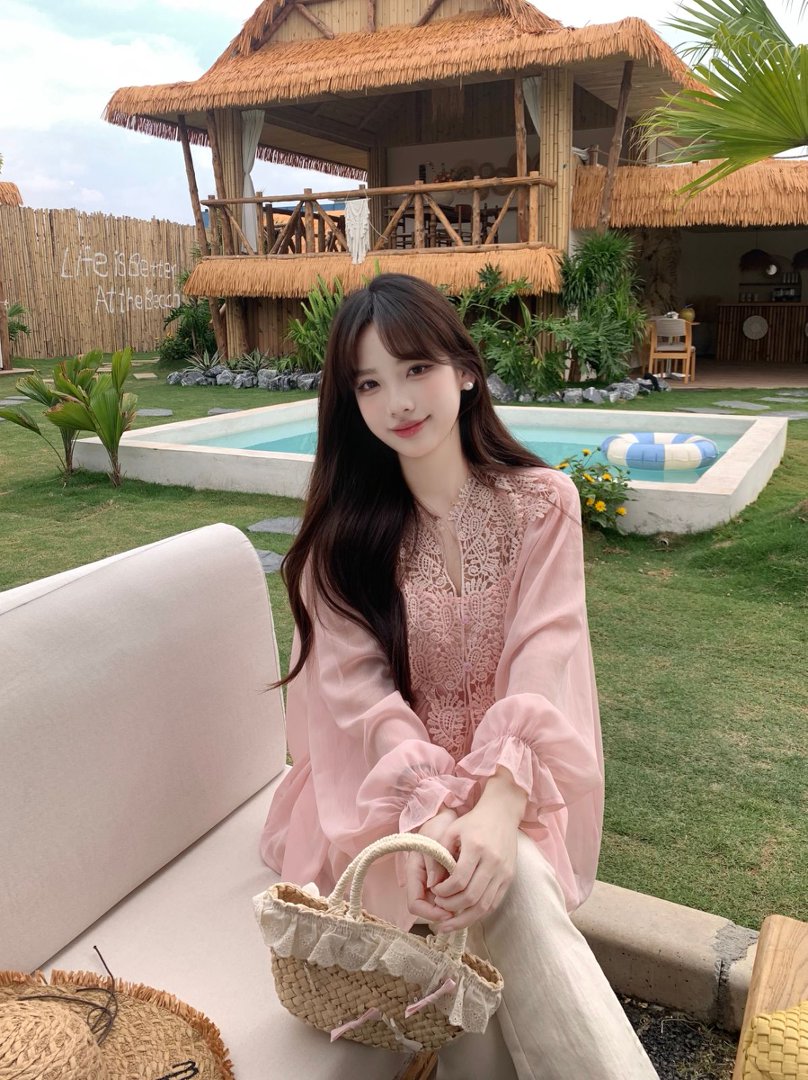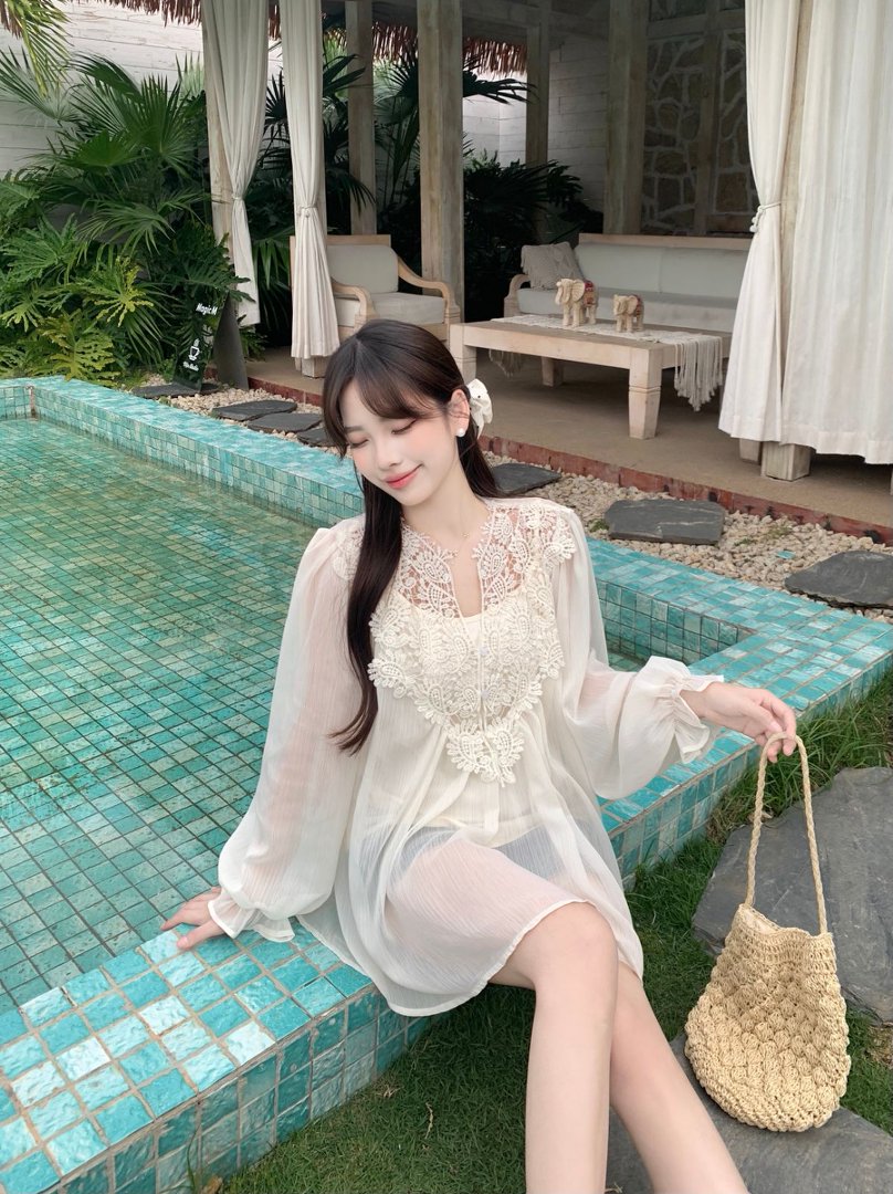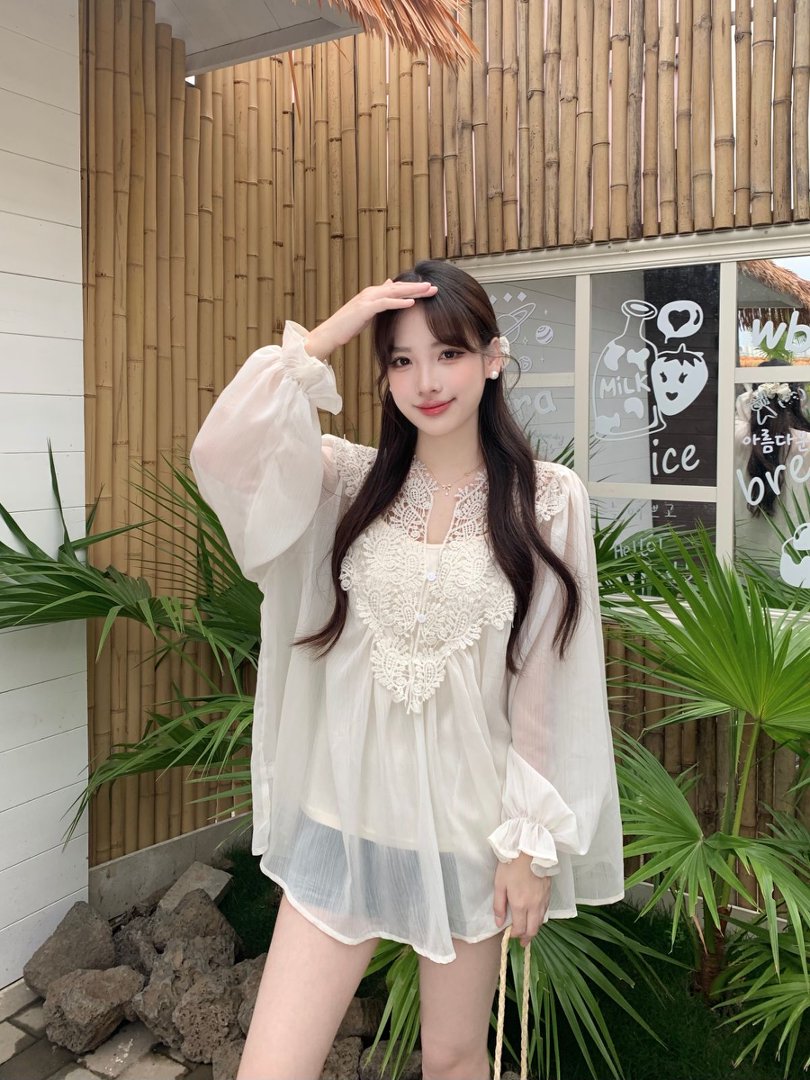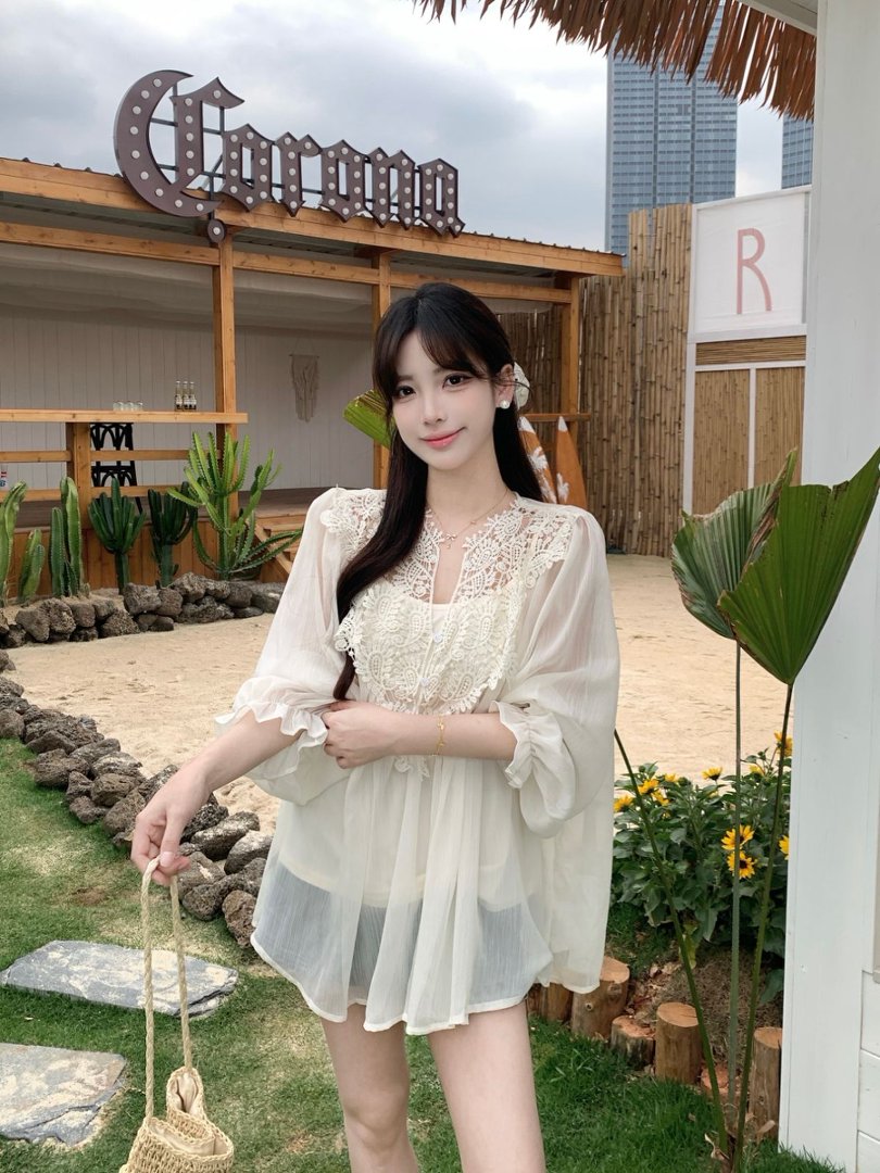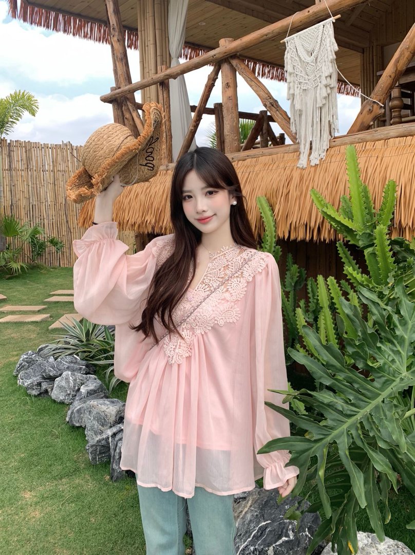 RY2047# 大码复古优雅立体钩花蕾丝拼接雪纺衫小衫吊带背心套装女宽松上衣