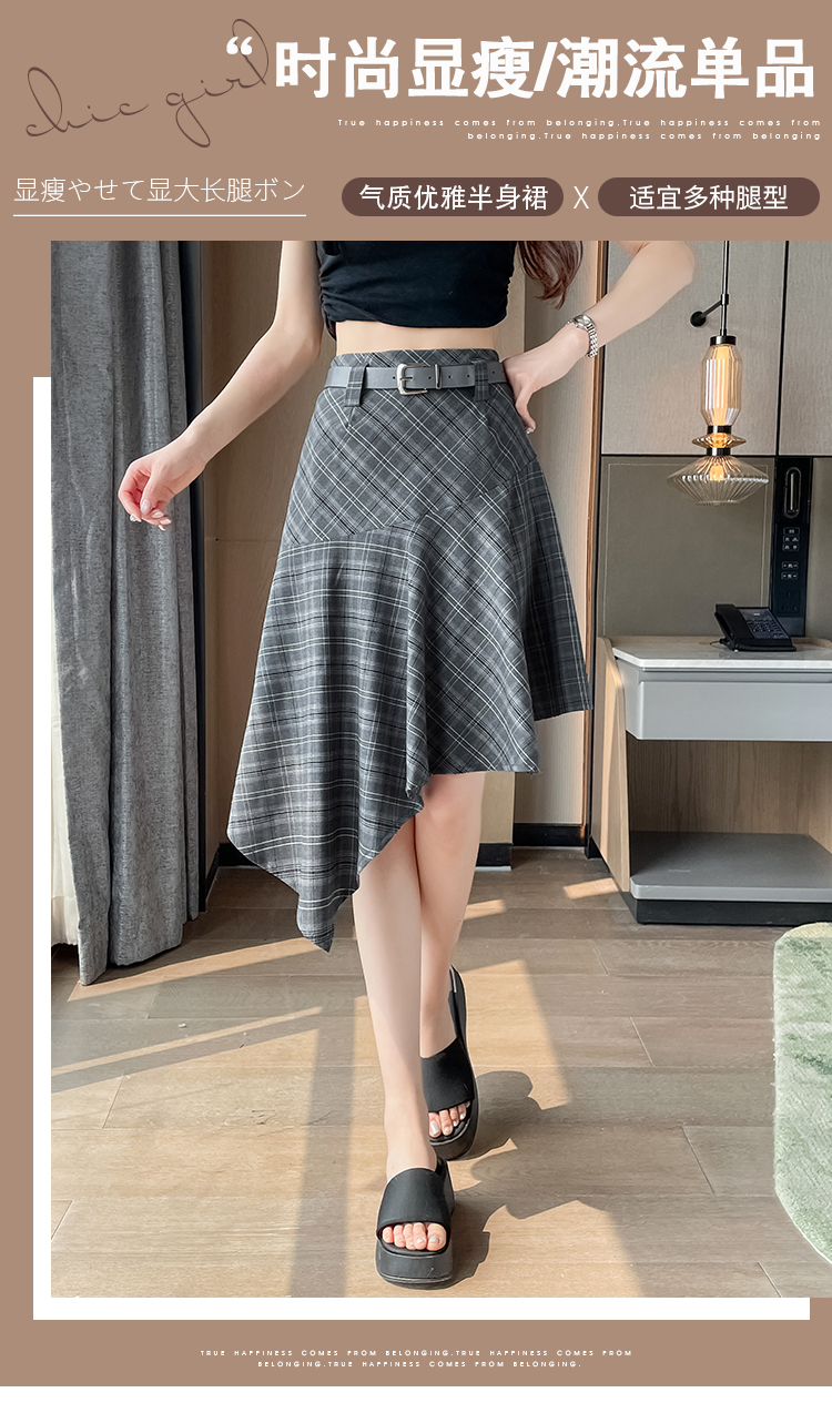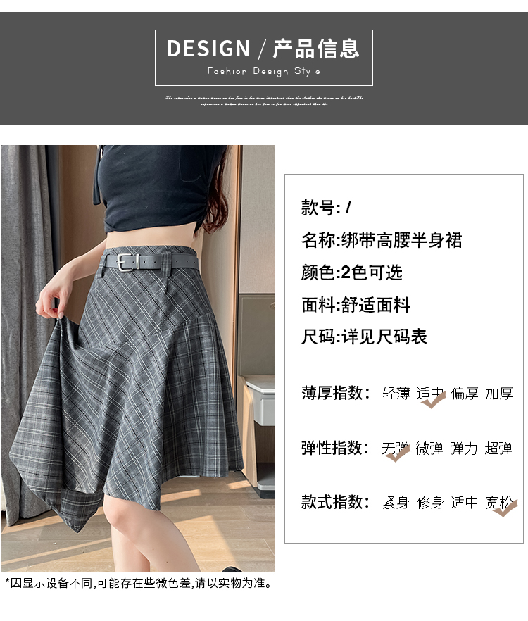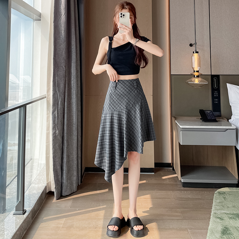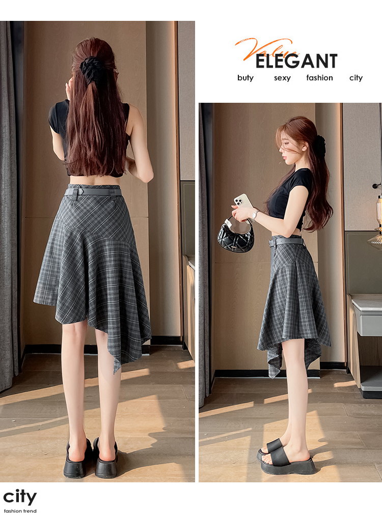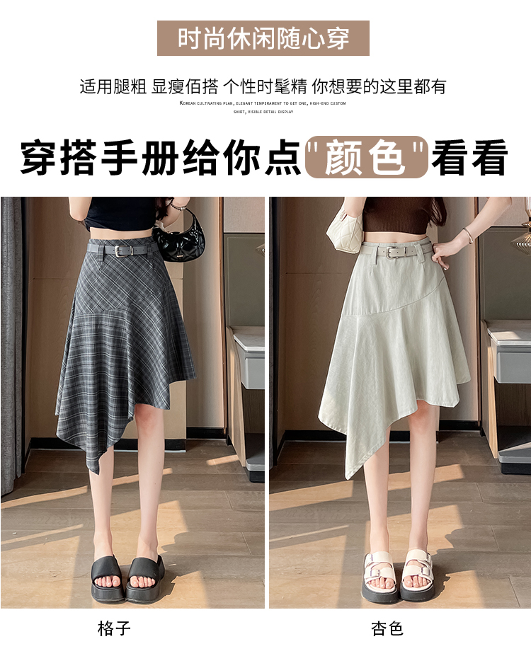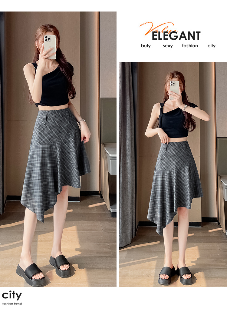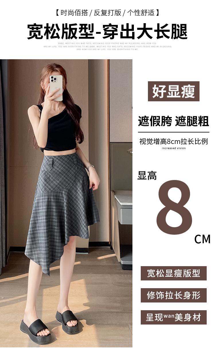RY2049# 实拍不规则格子半身裙女2026新款夏季高腰显瘦时尚a字裙子 有内衬