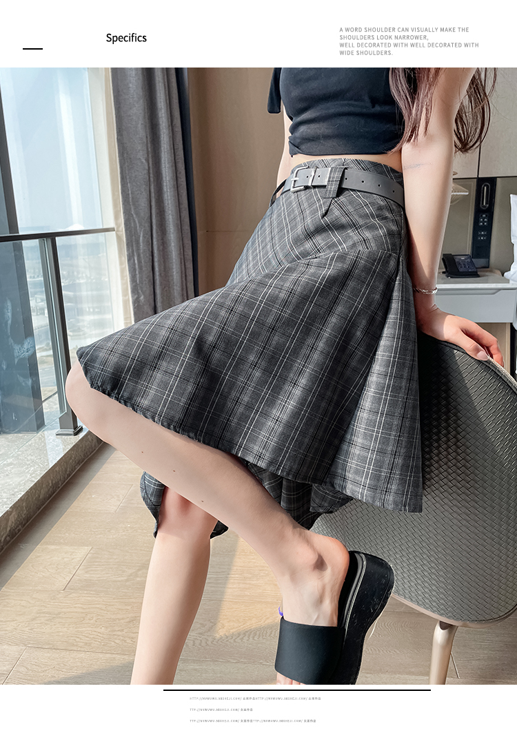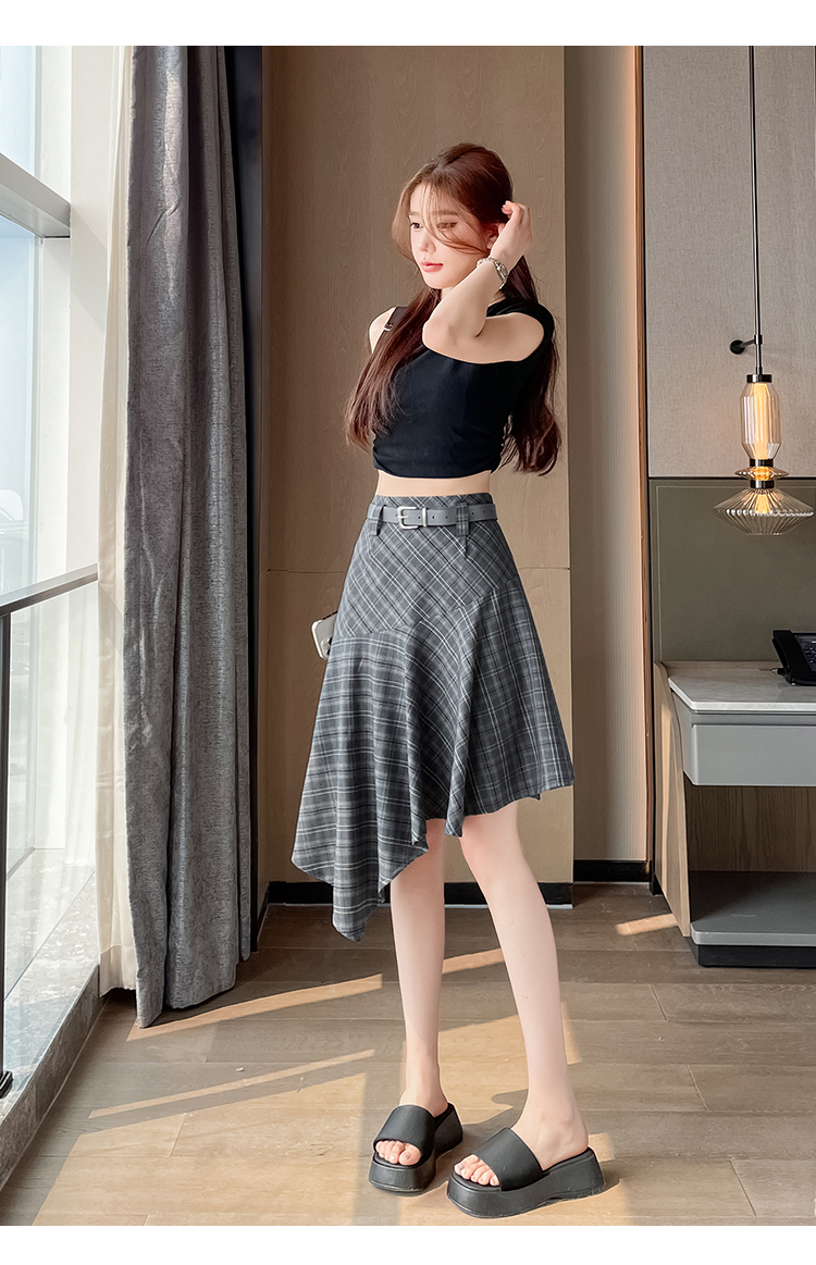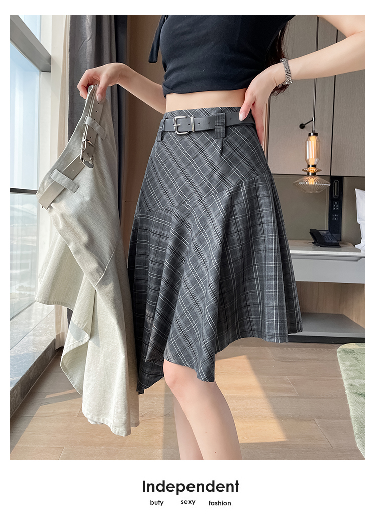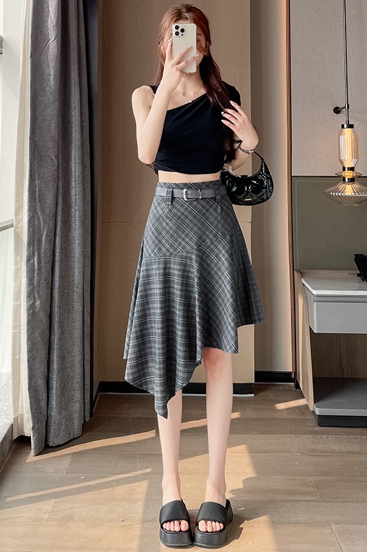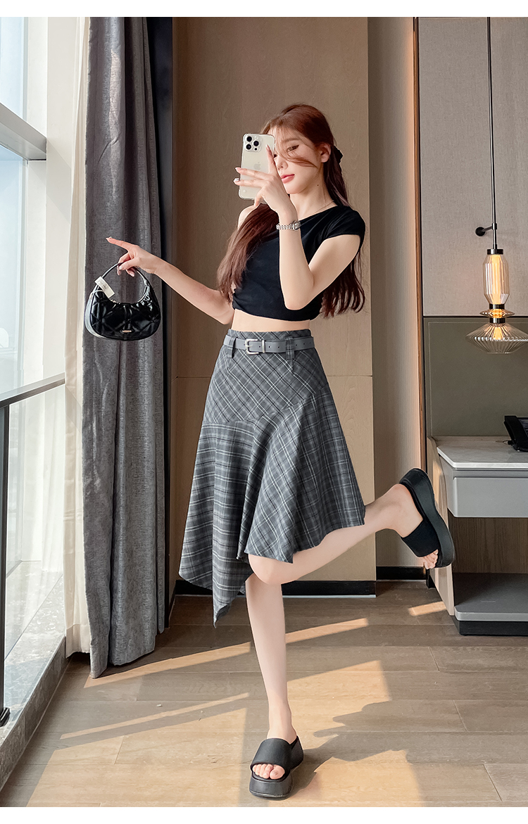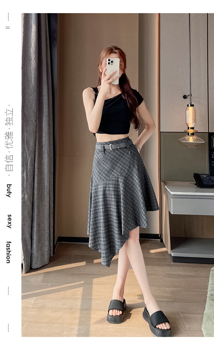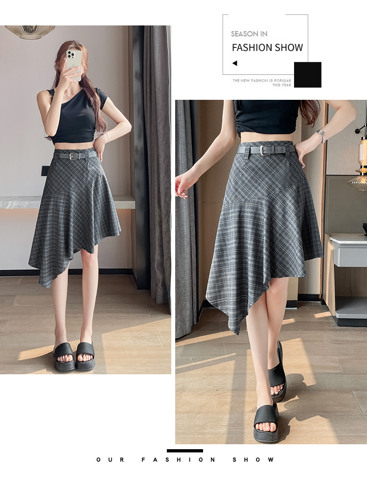 RY2049# 实拍不规则格子半身裙女2026新款夏季高腰显瘦时尚a字裙子 有内衬