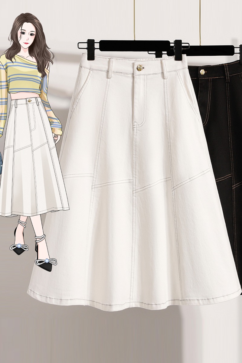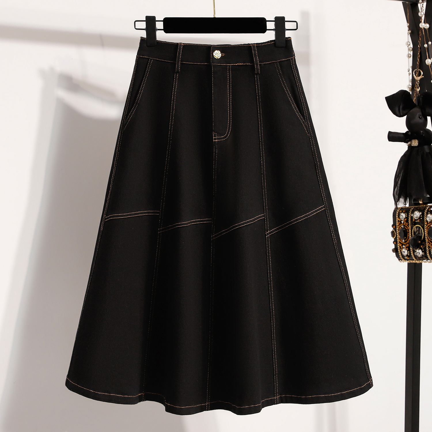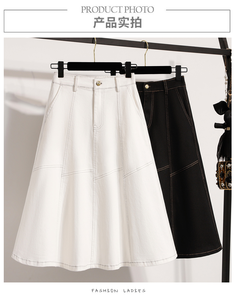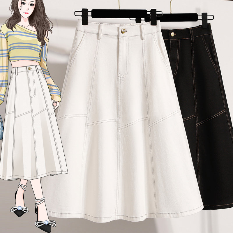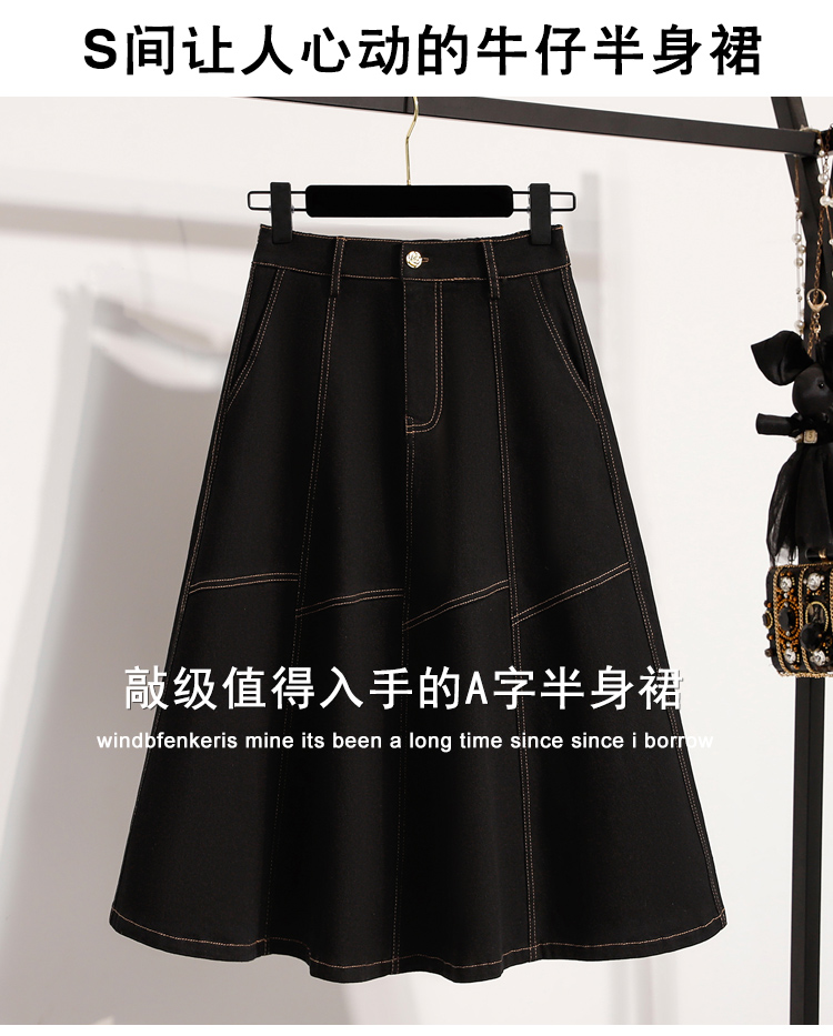 RY2090# 实拍夏春复古鱼尾大码牛仔半身裙女遮胯高腰a字裙胖MM裙子