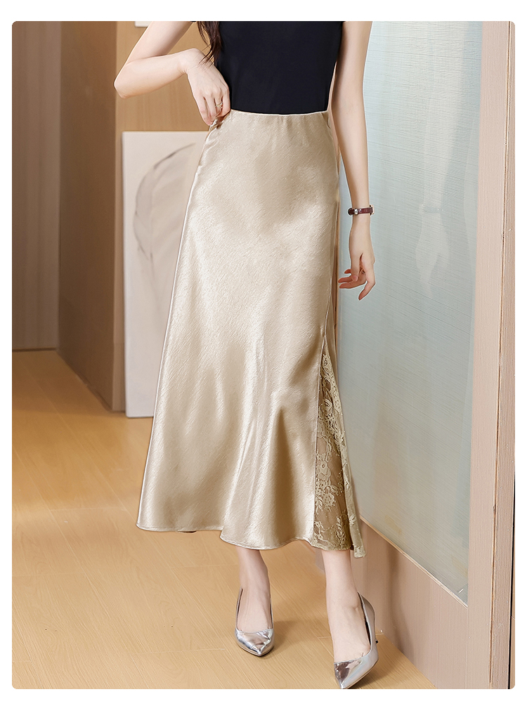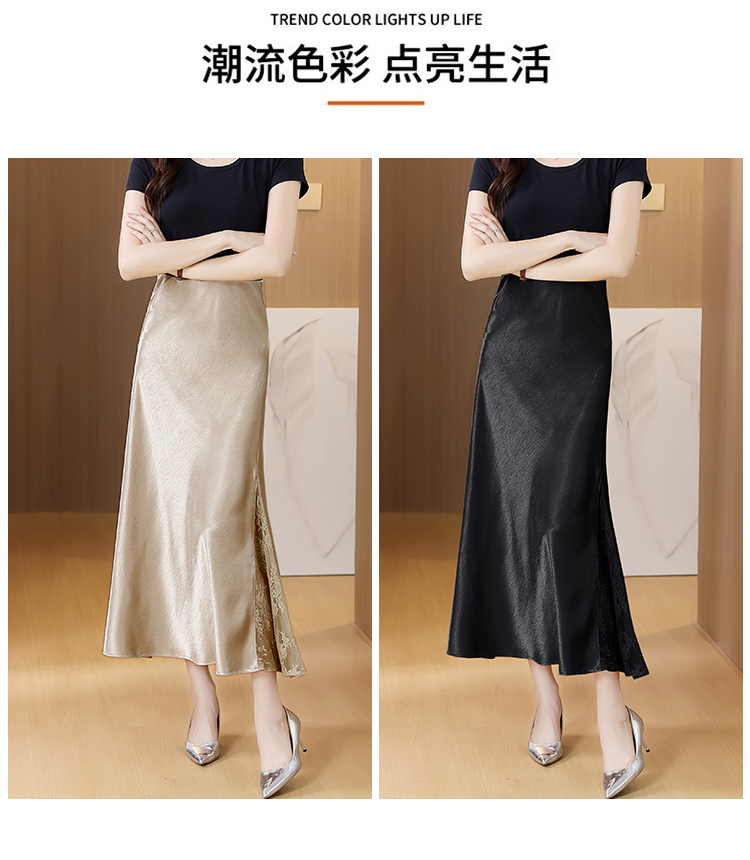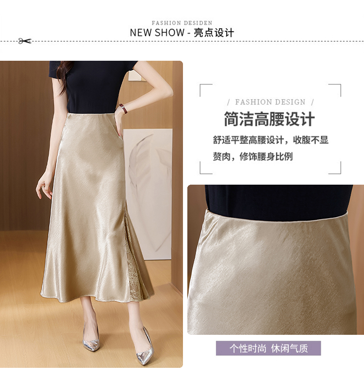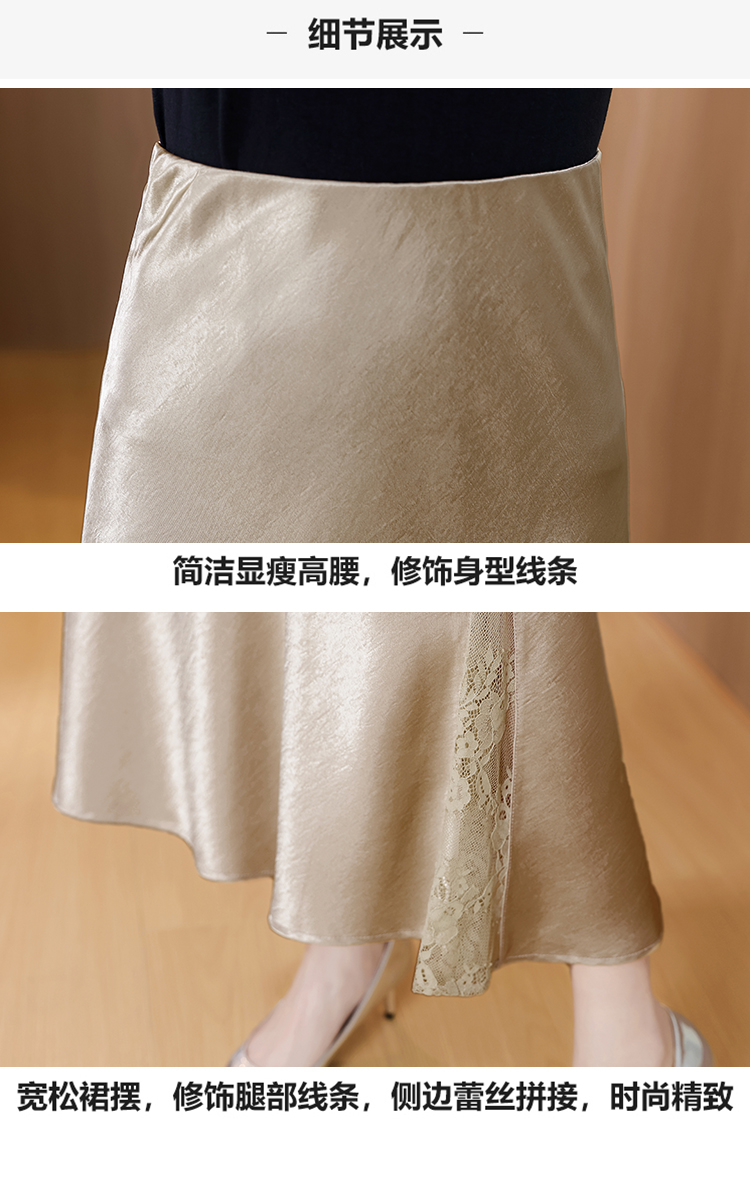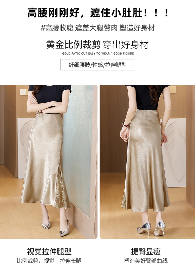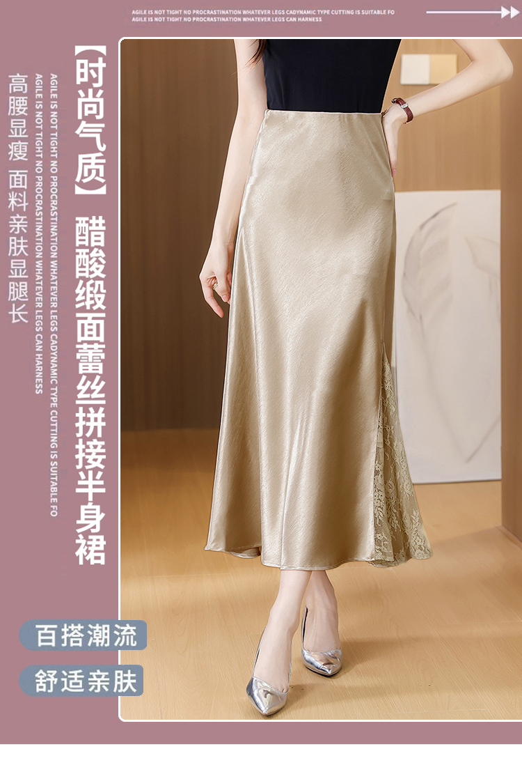 RY2139# 2026夏季新款蕾丝拼接半身裙高腰修身a字裙缎面仿醋酸鱼尾长裙女