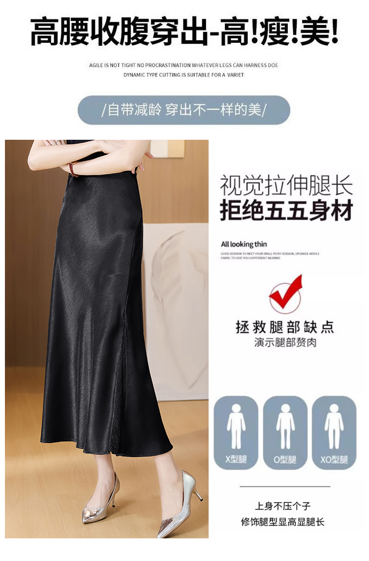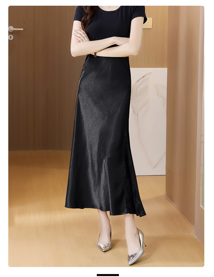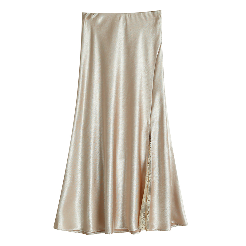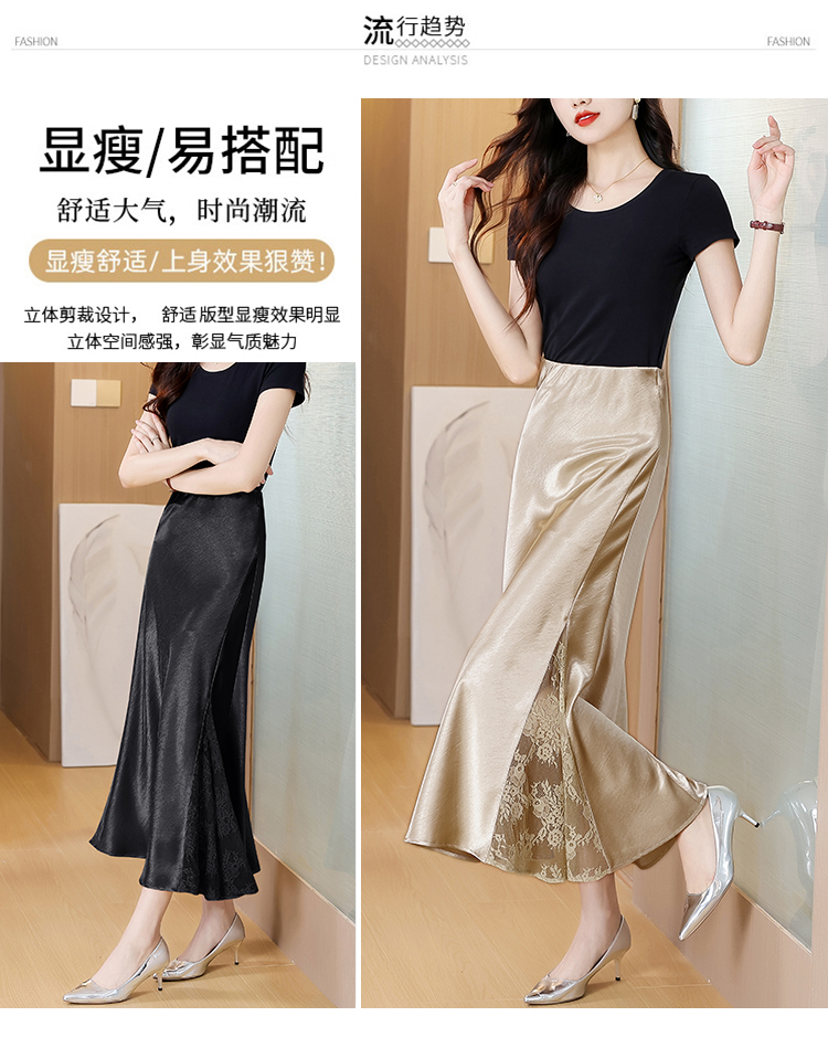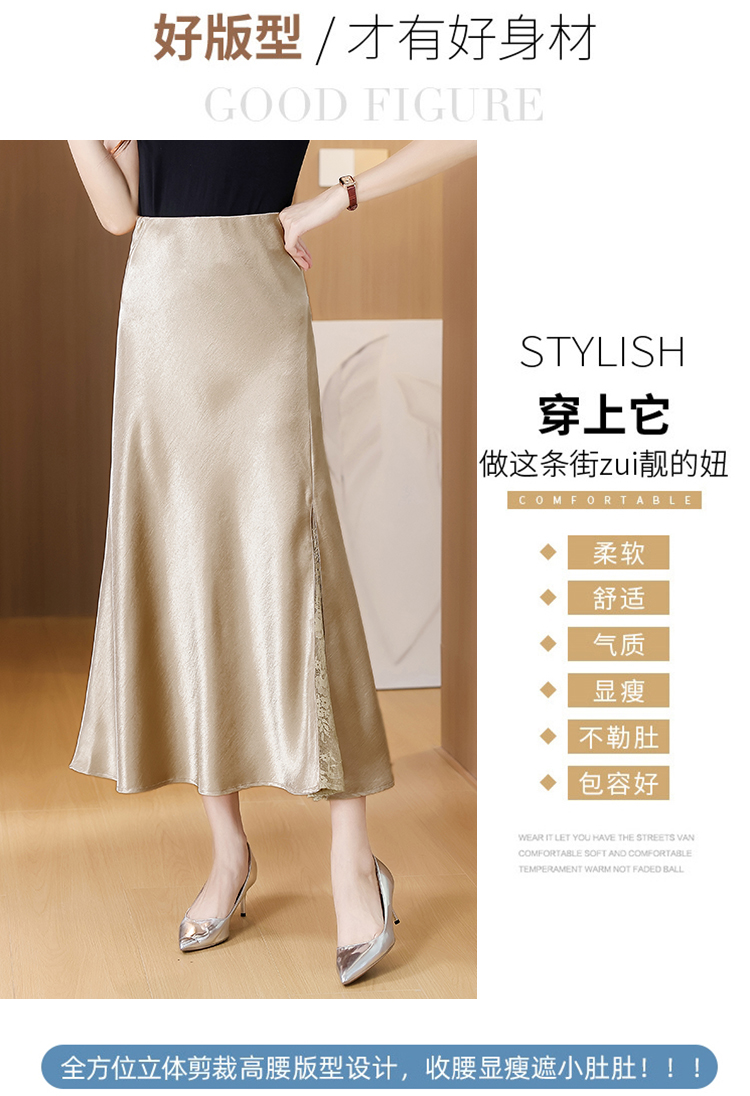 RY2139# 2026夏季新款蕾丝拼接半身裙高腰修身a字裙缎面仿醋酸鱼尾长裙女