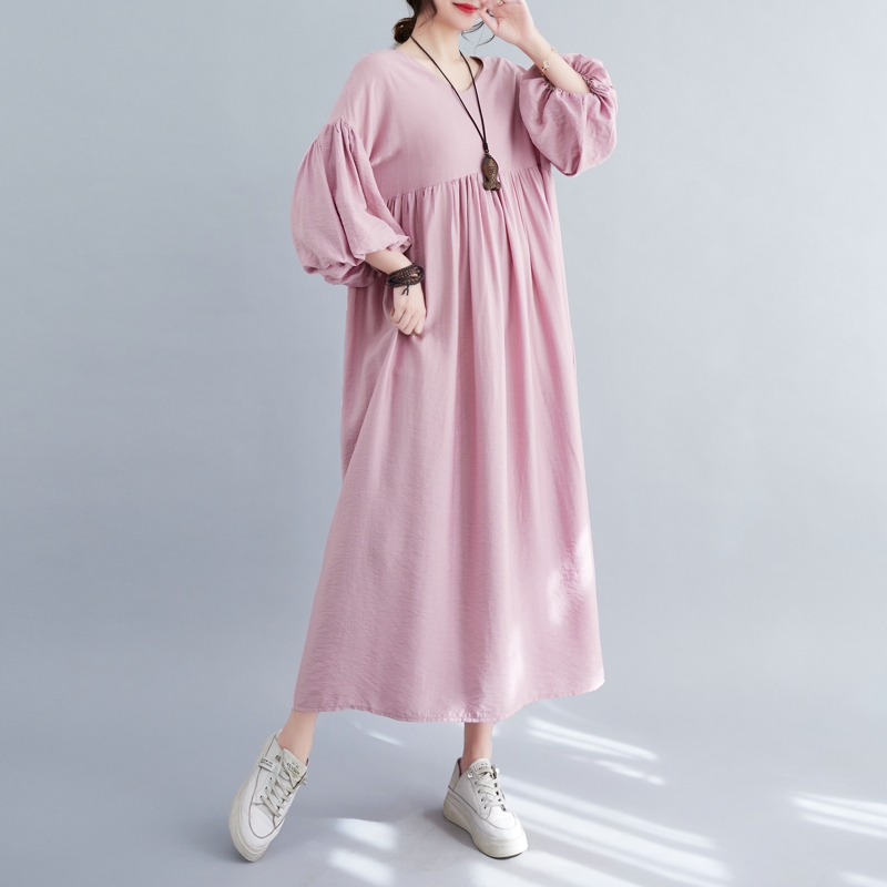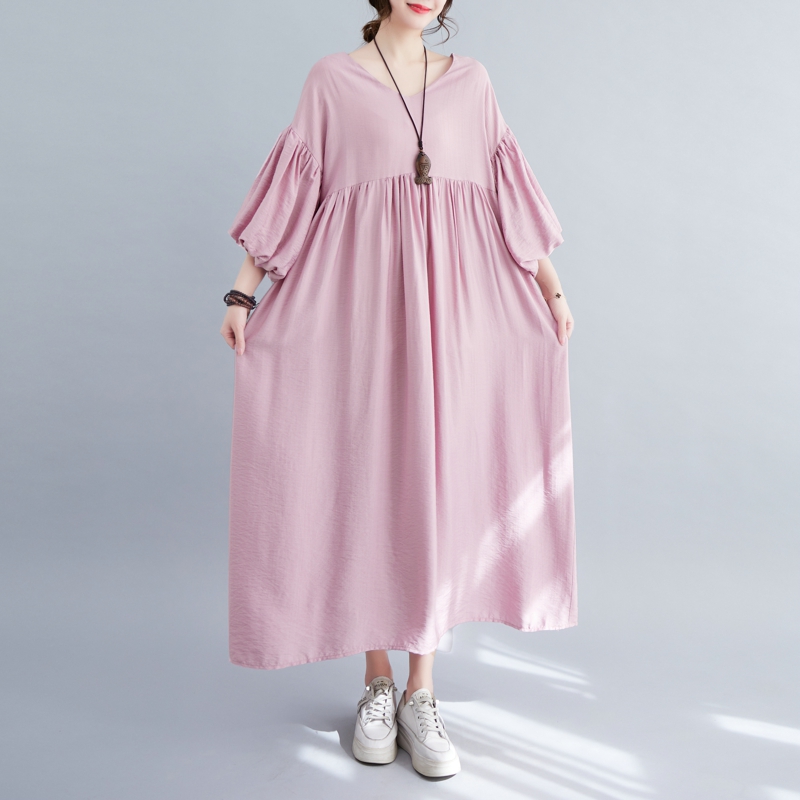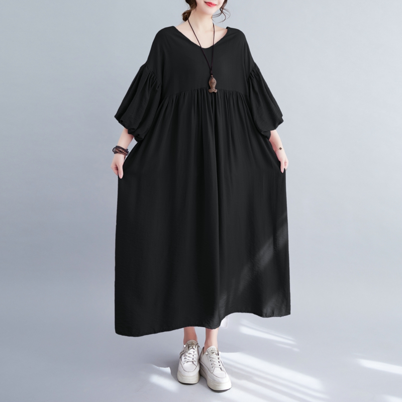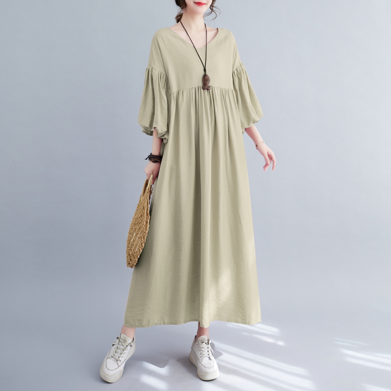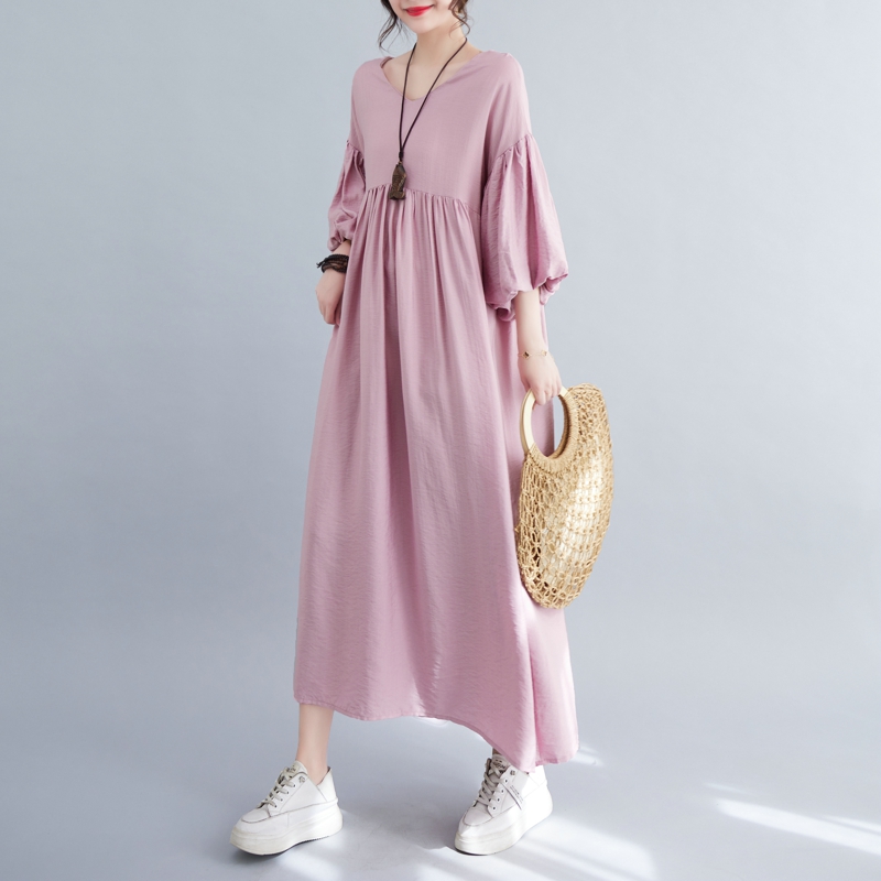 RY2158# 实拍大码显瘦减龄宽松中长款连衣裙女