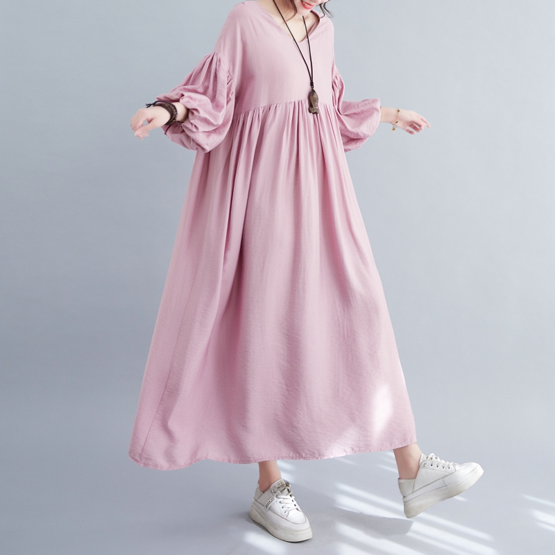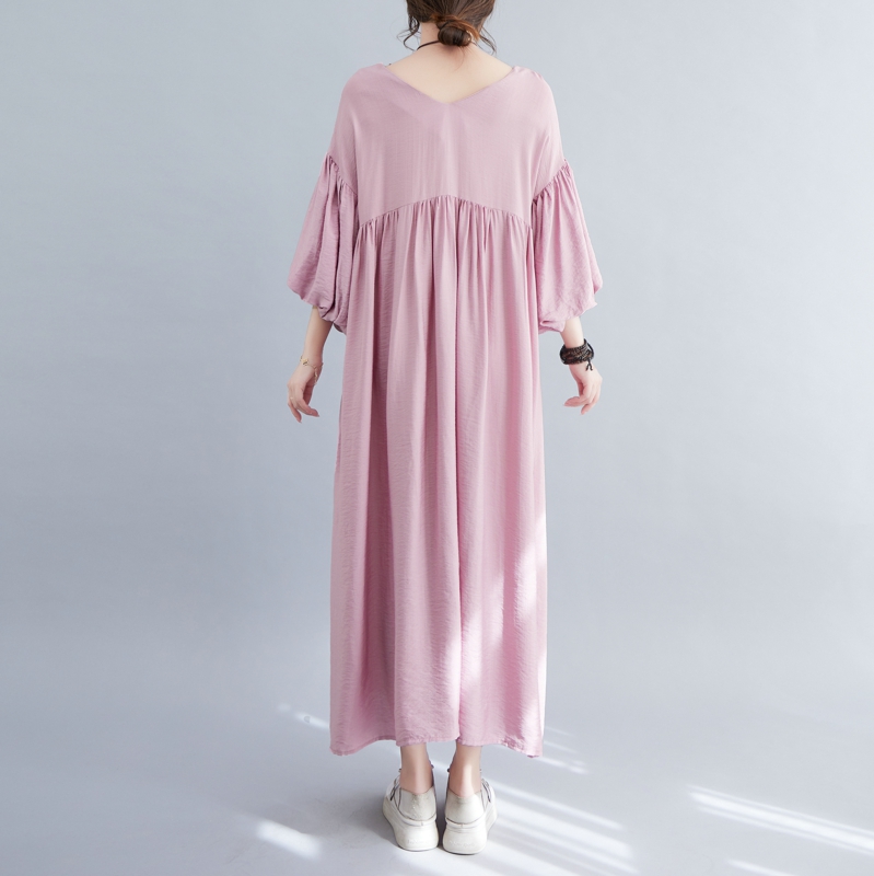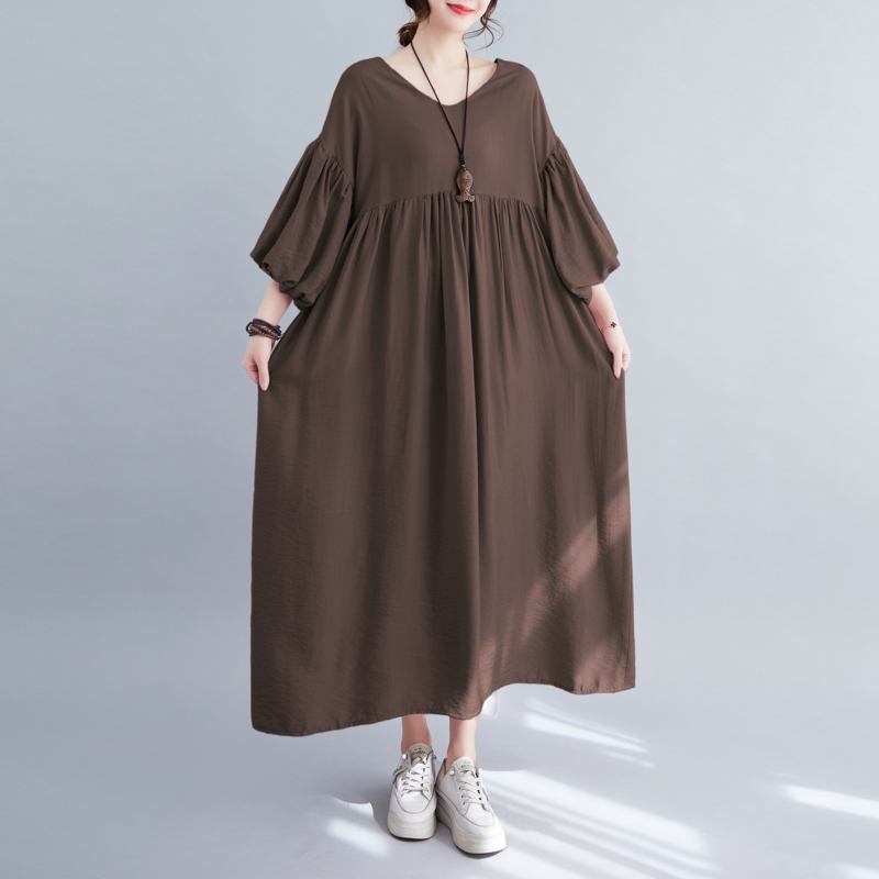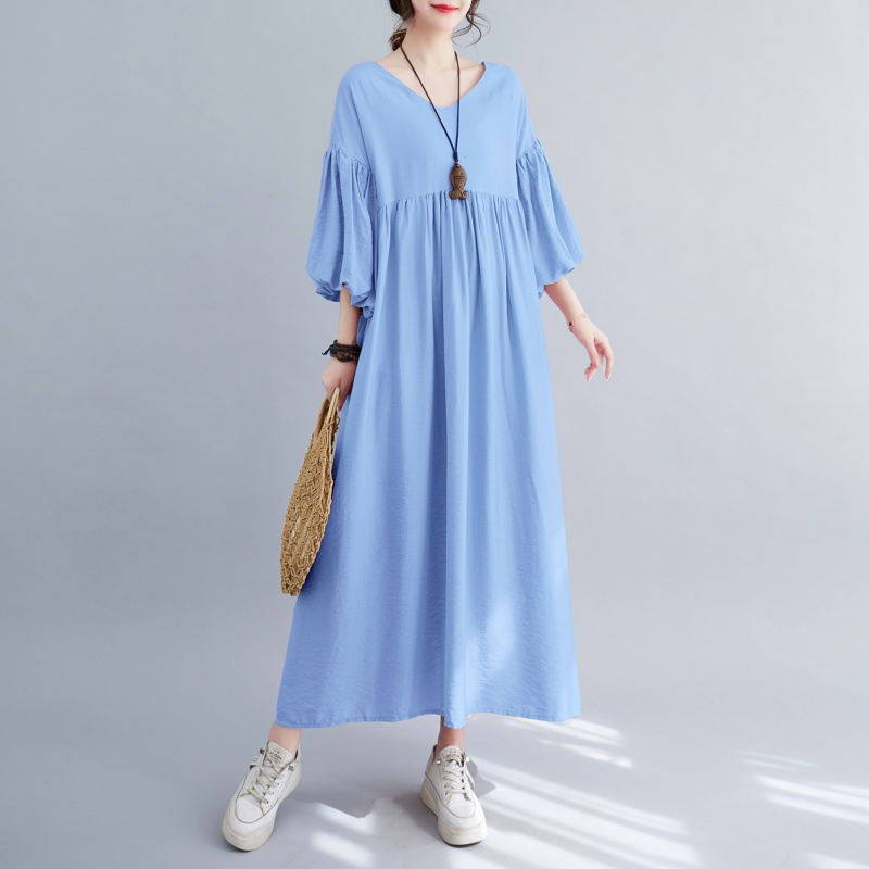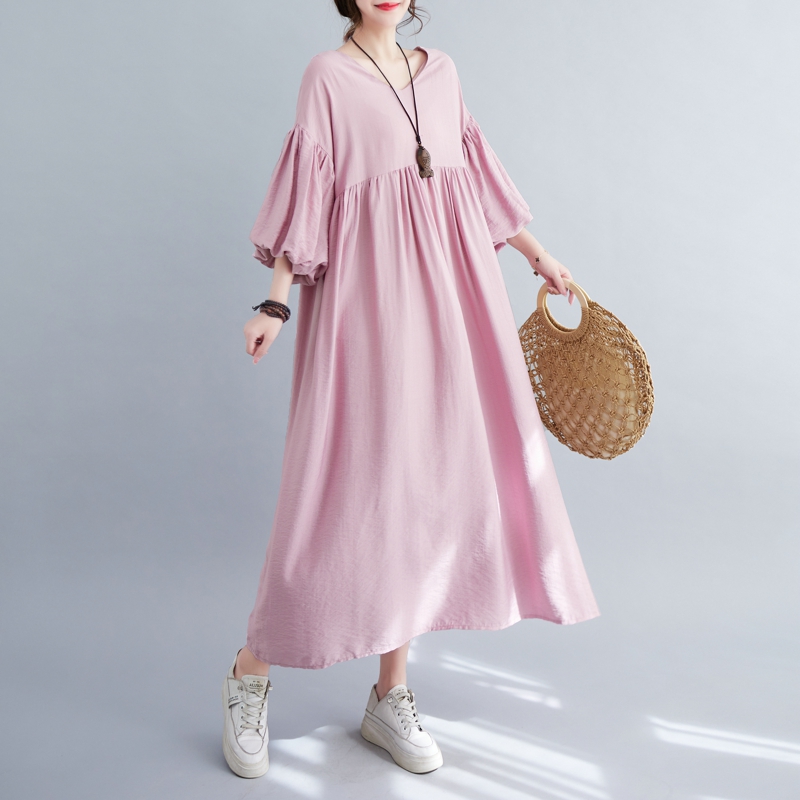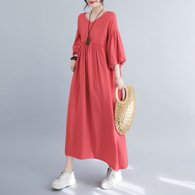 RY2158# 实拍大码显瘦减龄宽松中长款连衣裙女