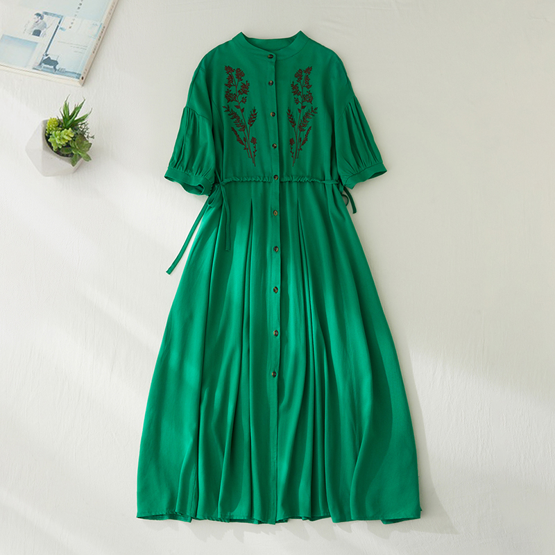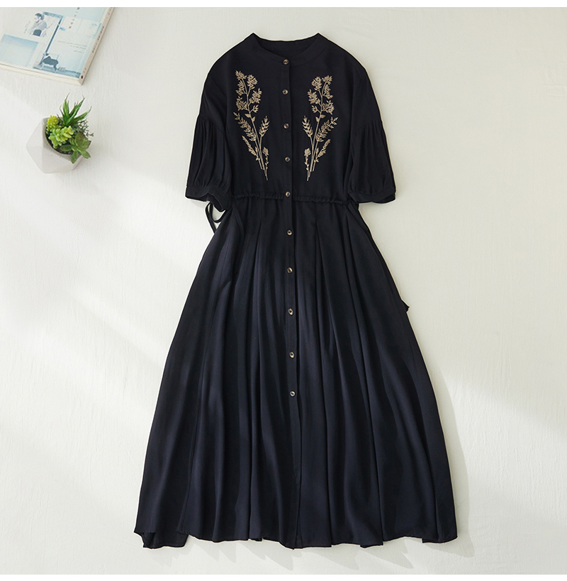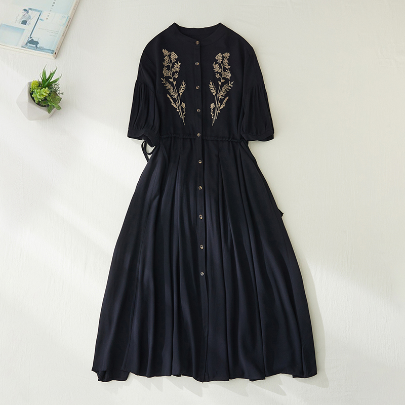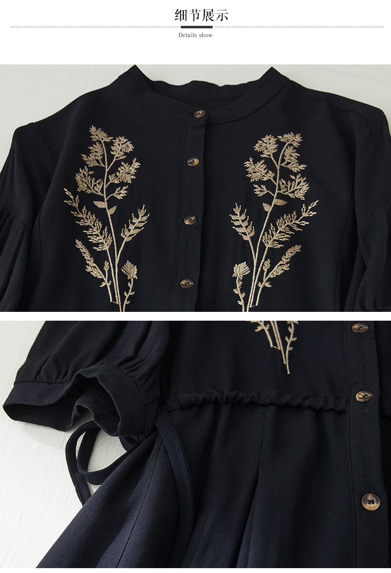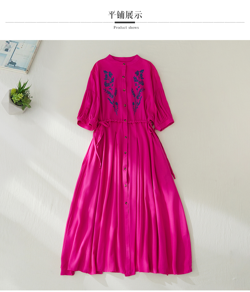 RY2159# 实拍胖mm复古绣花收腰宽松长款连衣裙女