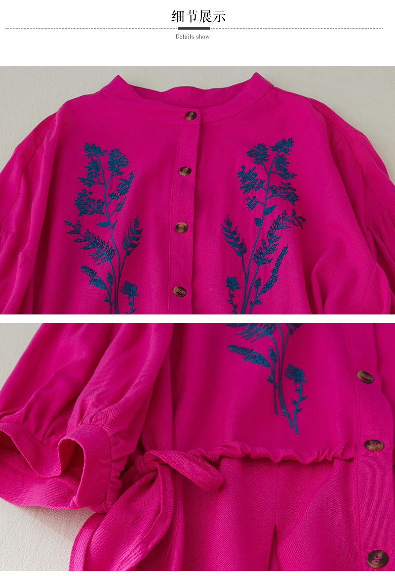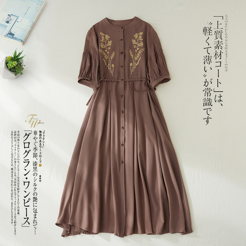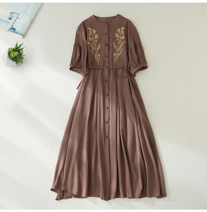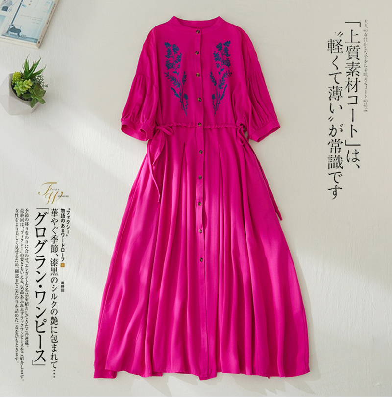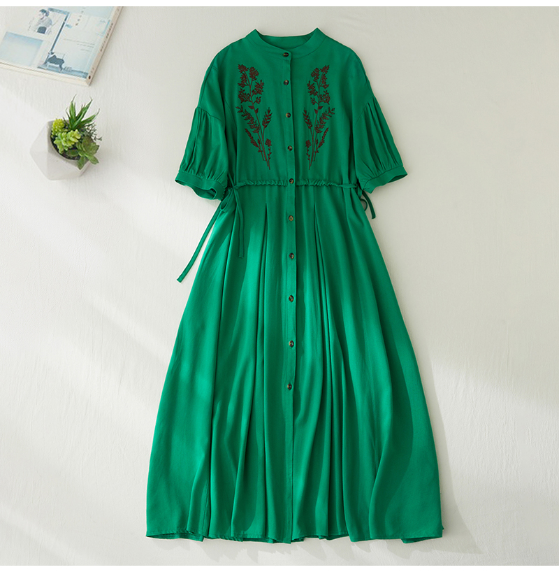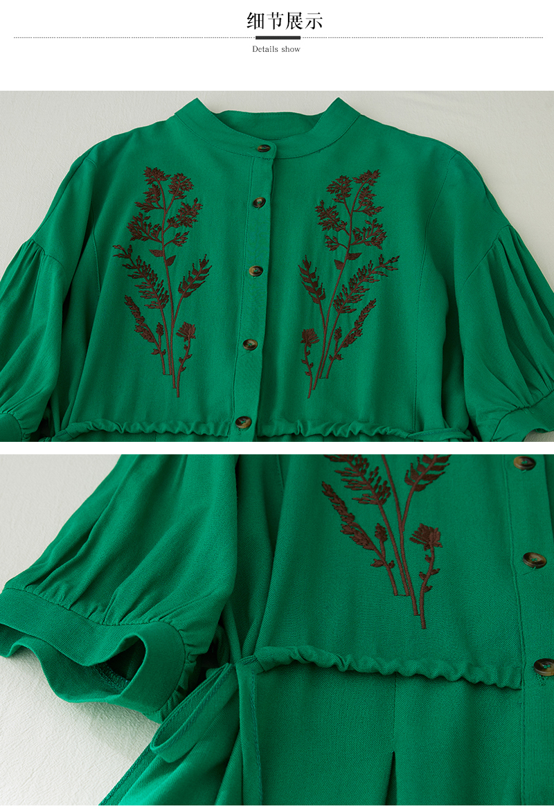 RY2159# 实拍胖mm复古绣花收腰宽松长款连衣裙女