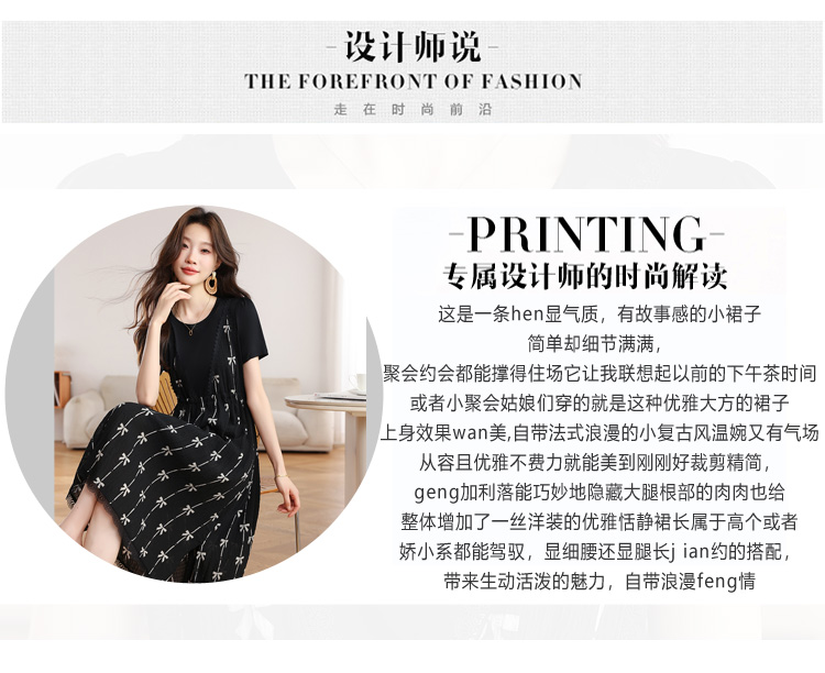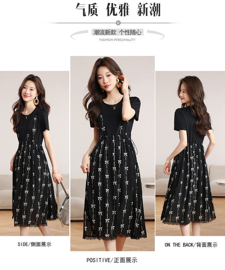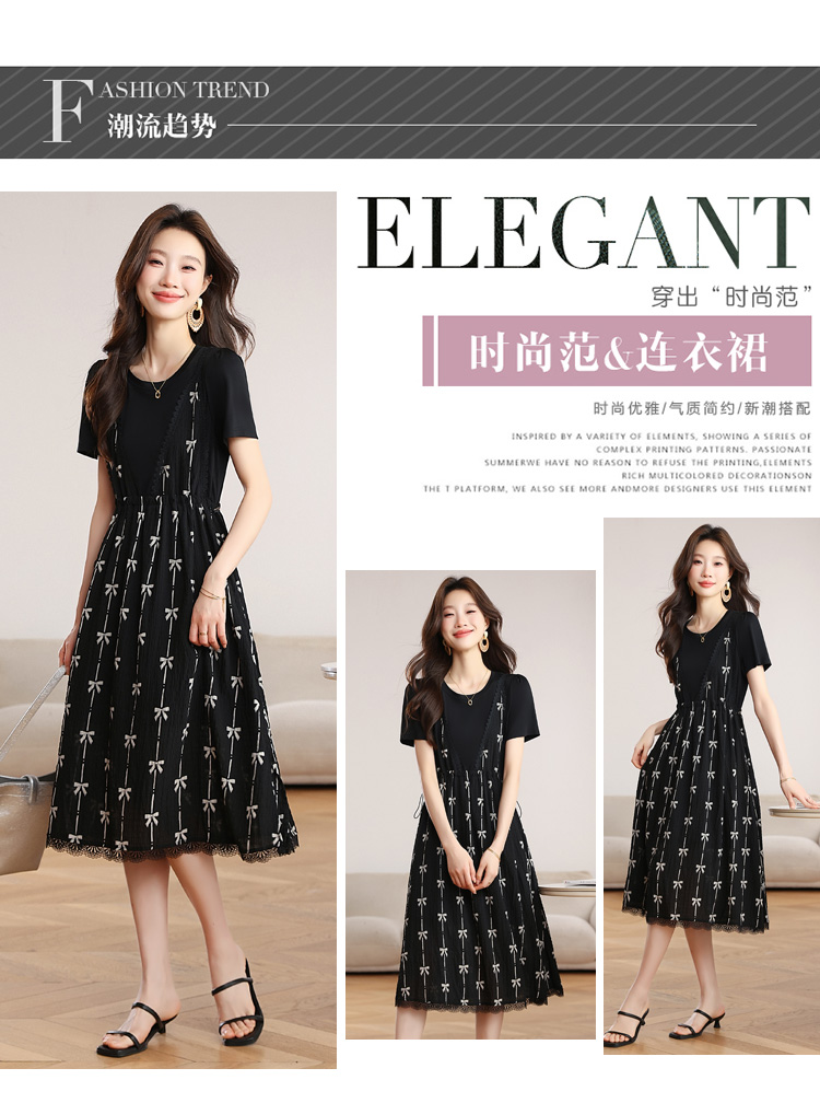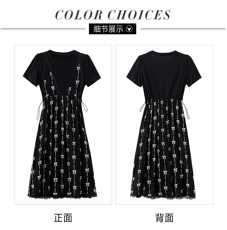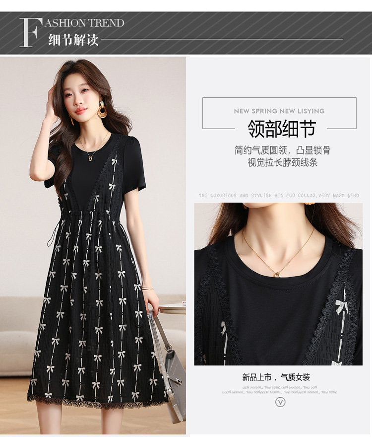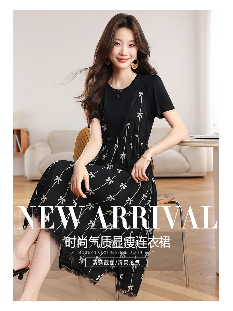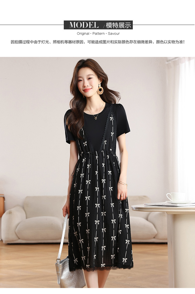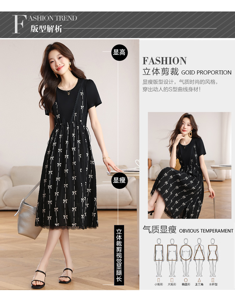 RY2253# 实拍 小个子黑色连衣裙女夏季新款假两件套收腰显瘦气质a字裙子女