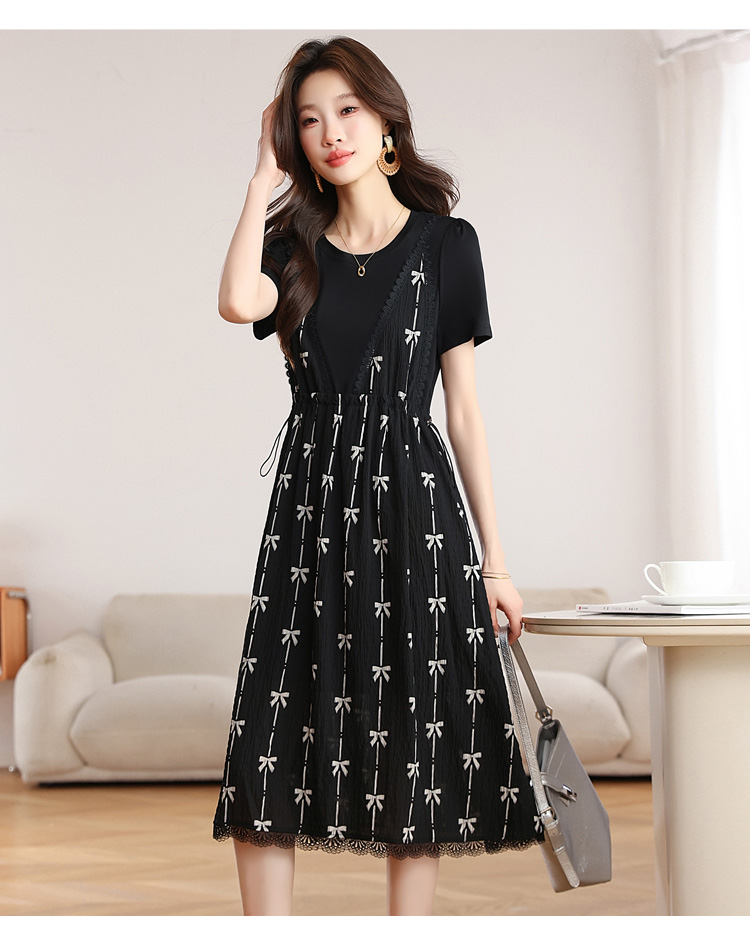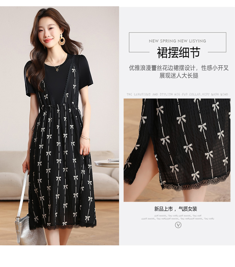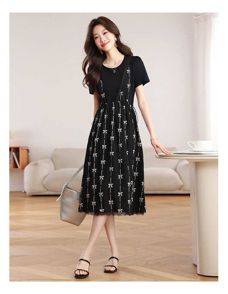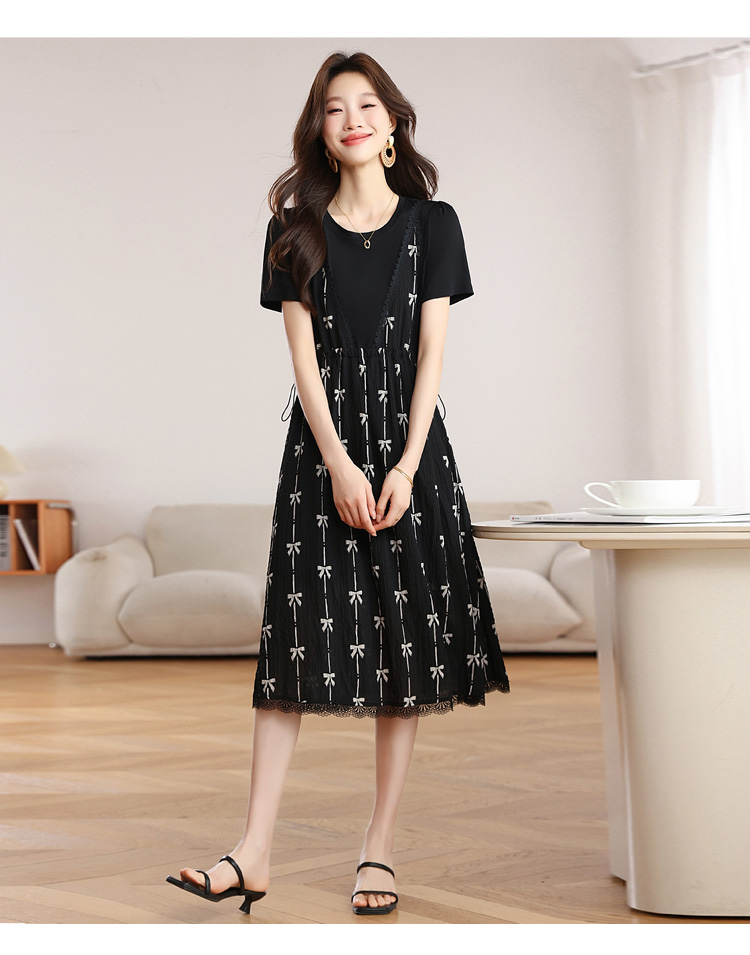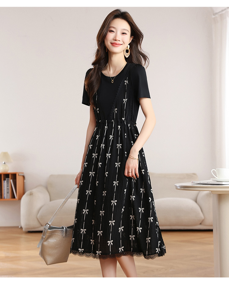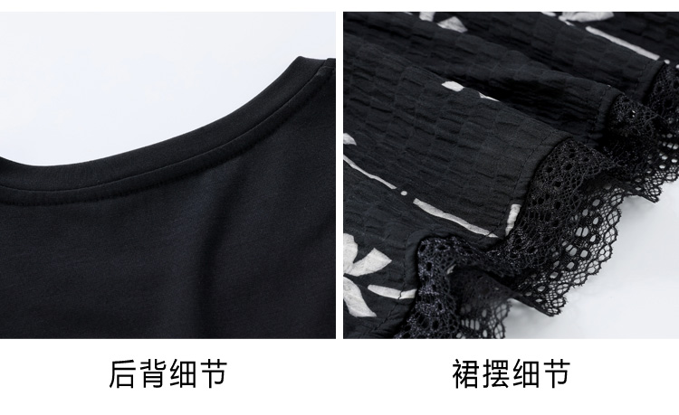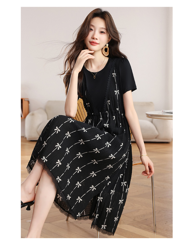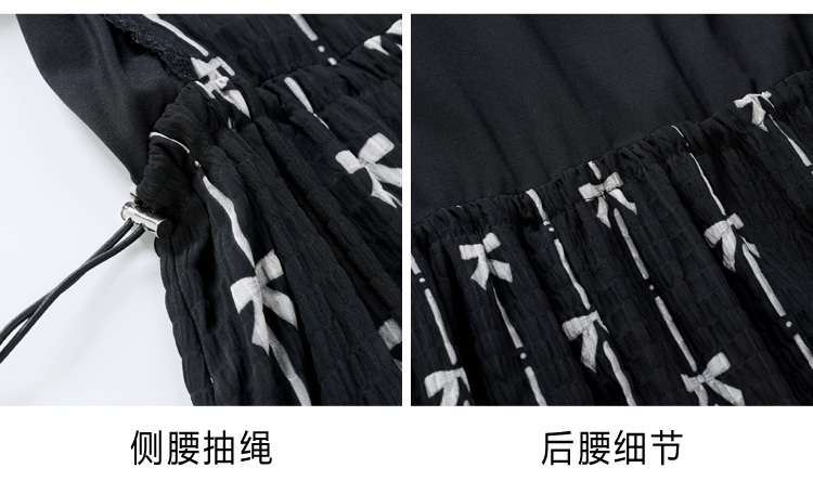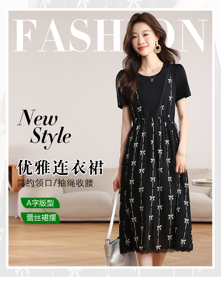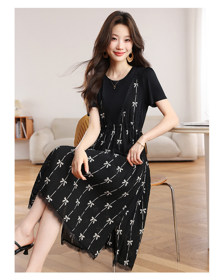 RY2253# 实拍 小个子黑色连衣裙女夏季新款假两件套收腰显瘦气质a字裙子女