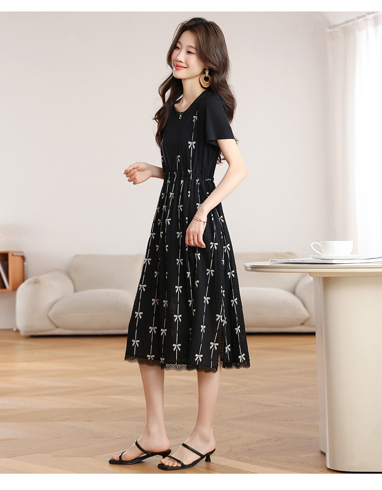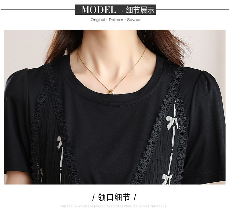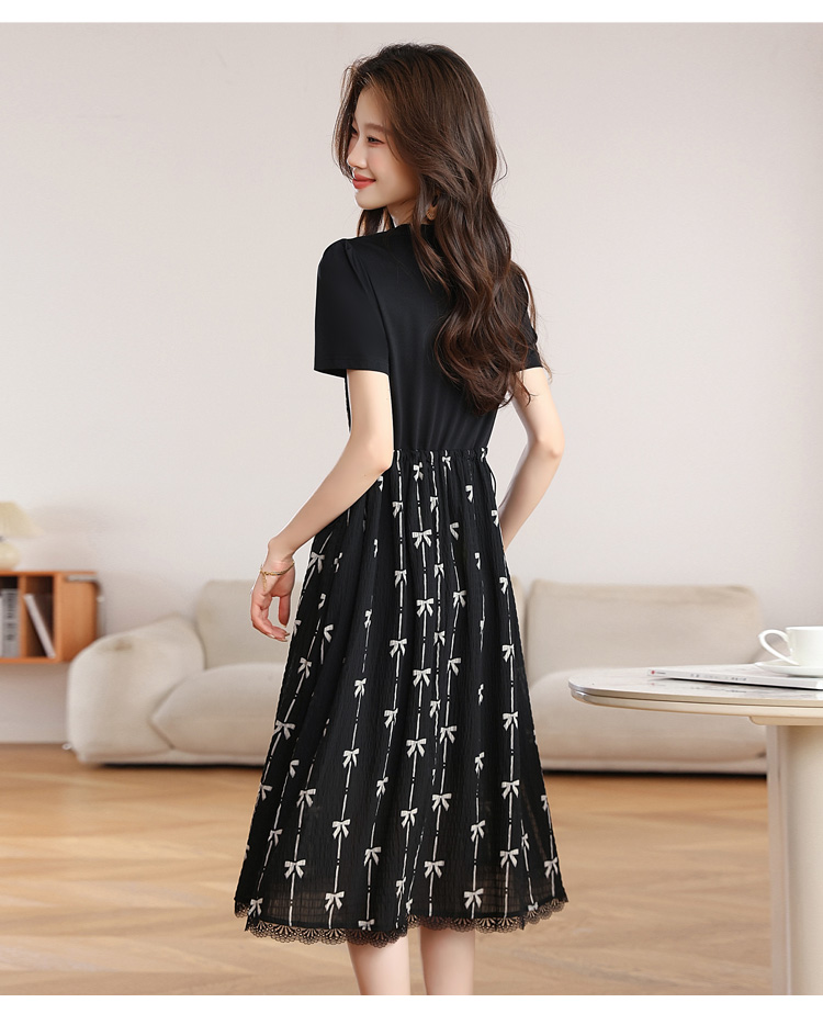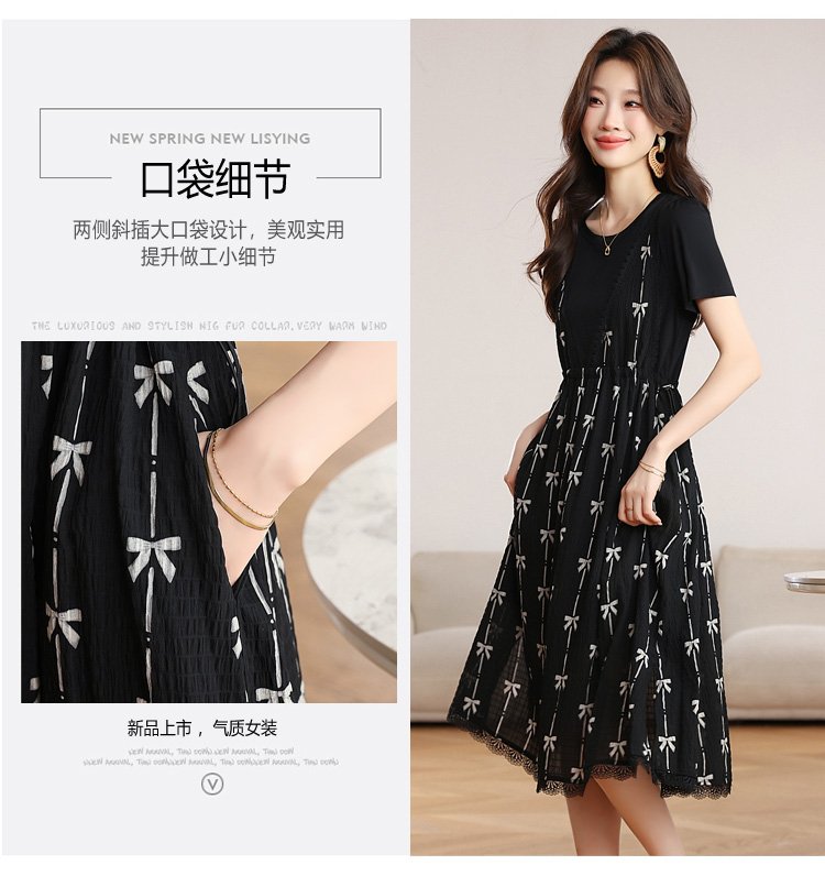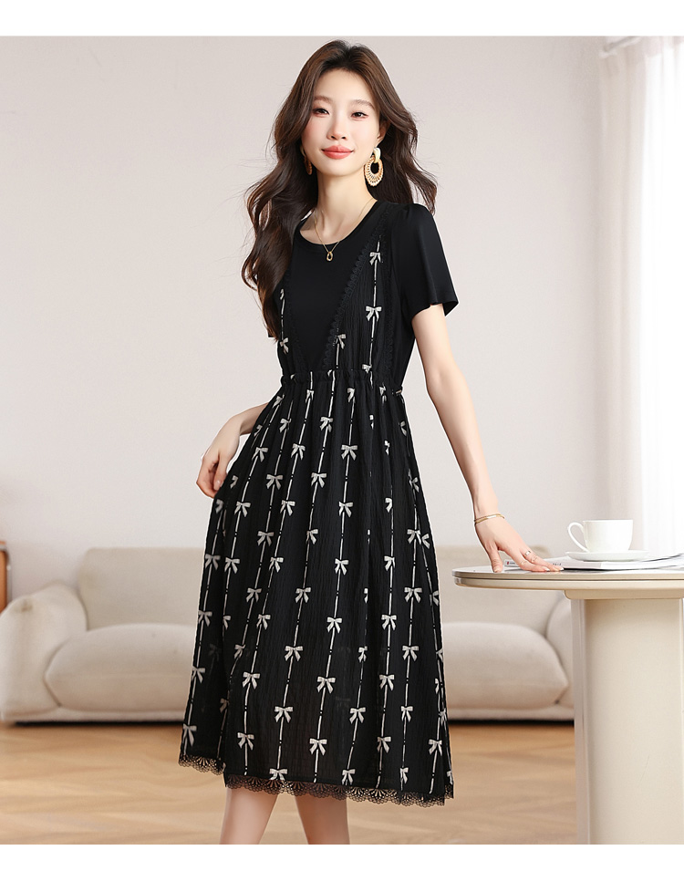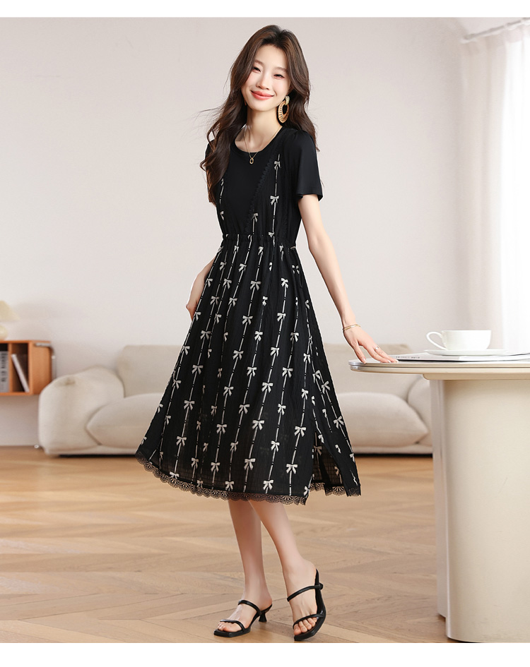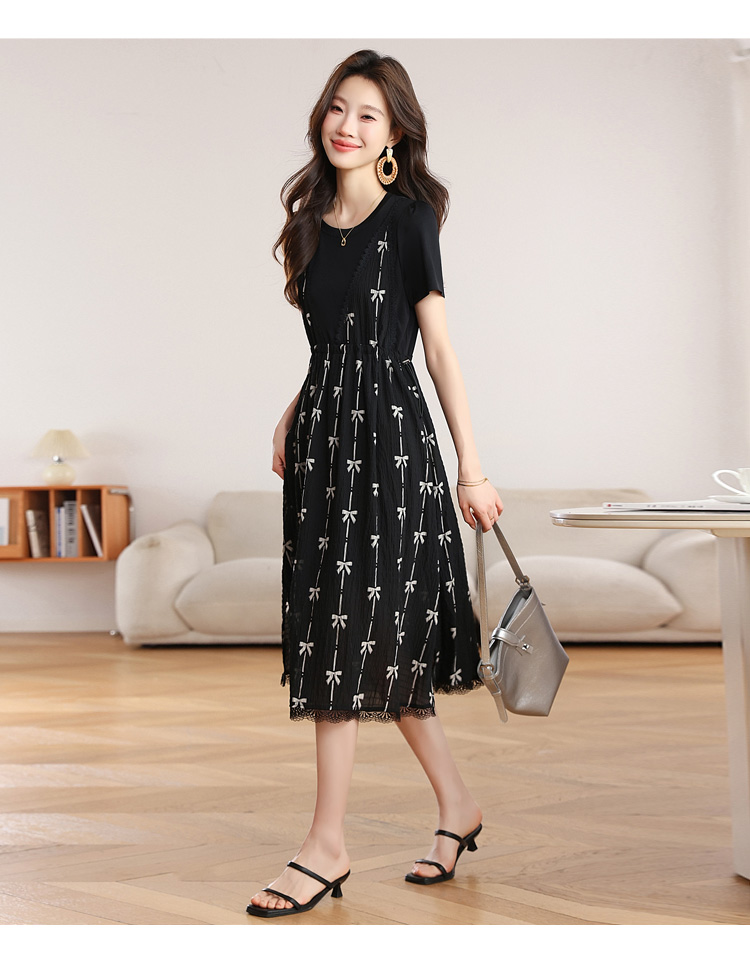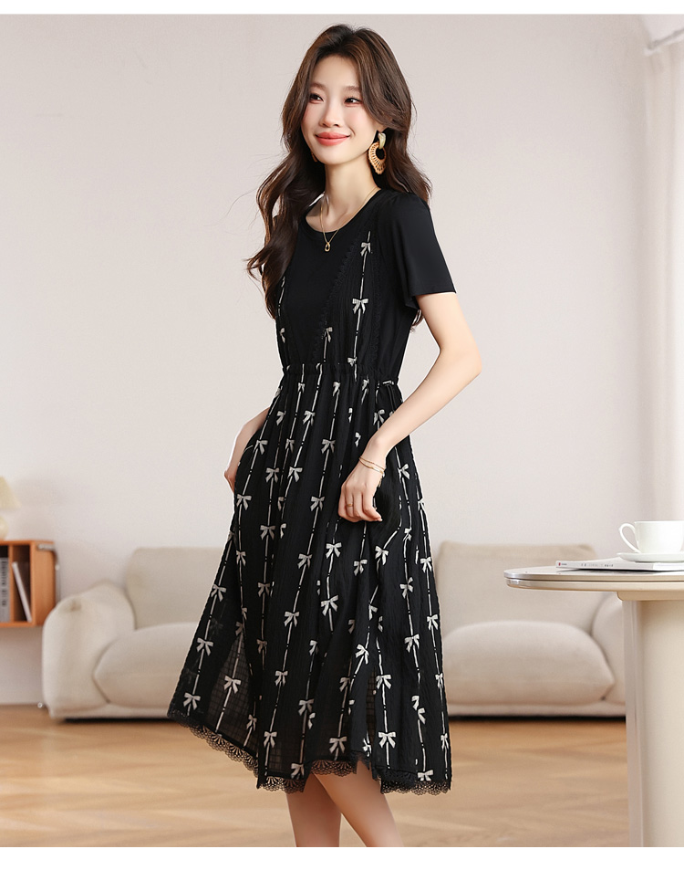 RY2253# 实拍 小个子黑色连衣裙女夏季新款假两件套收腰显瘦气质a字裙子女