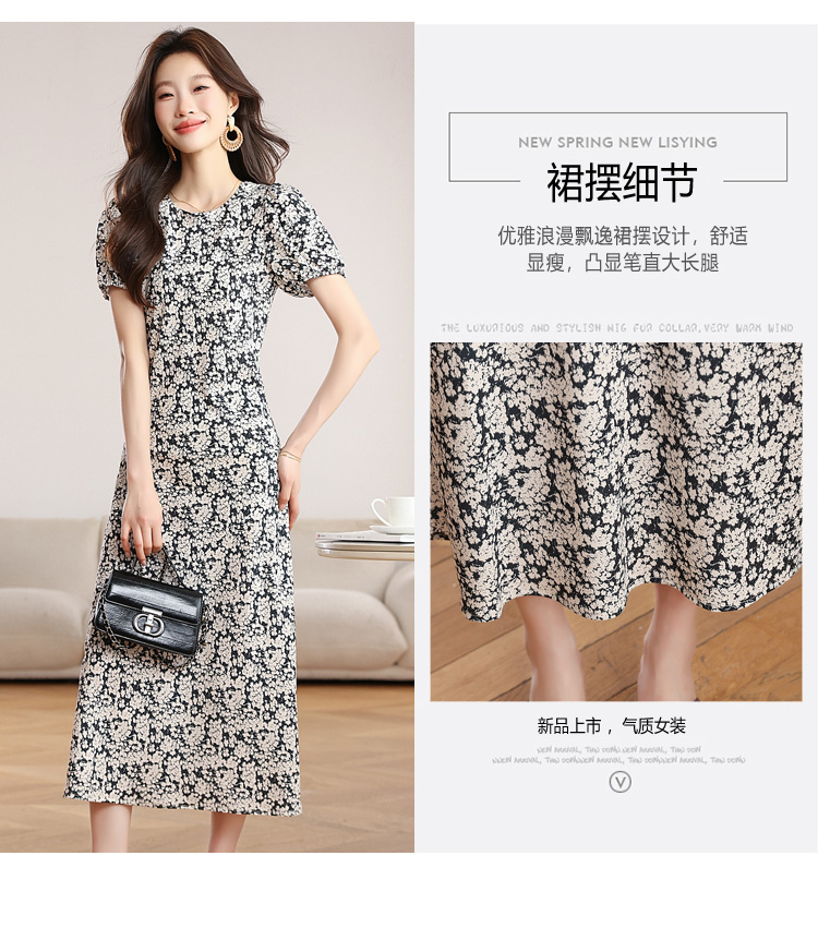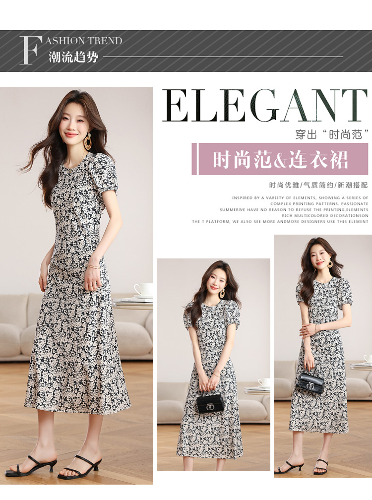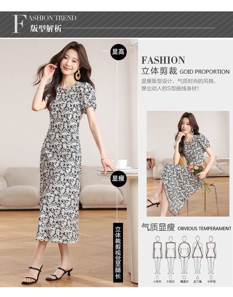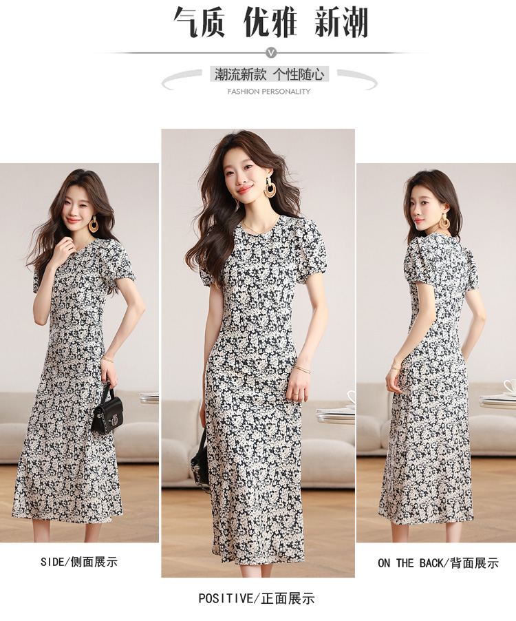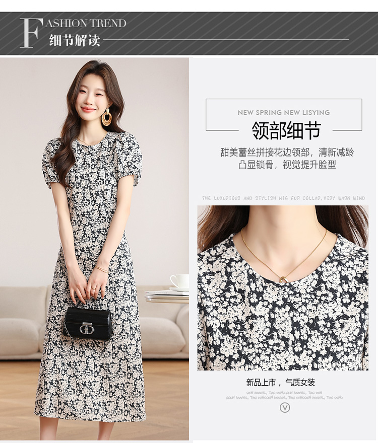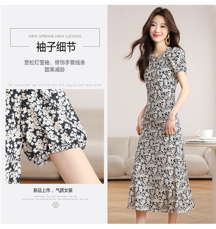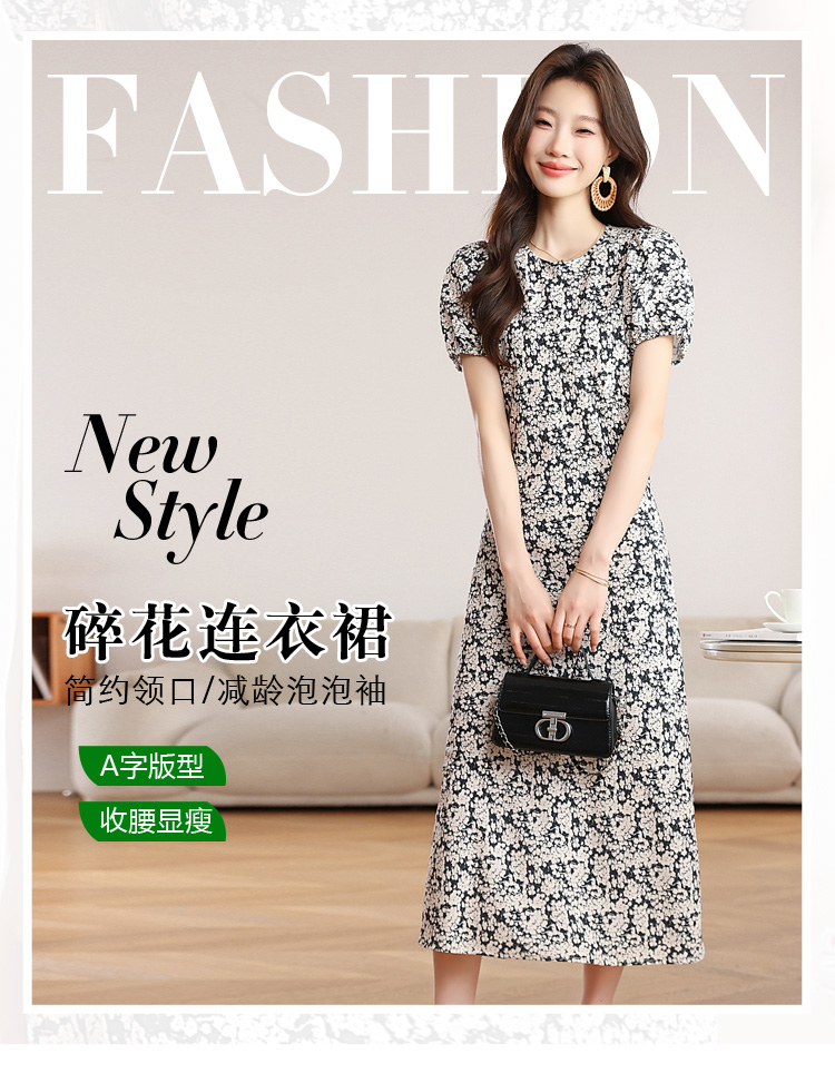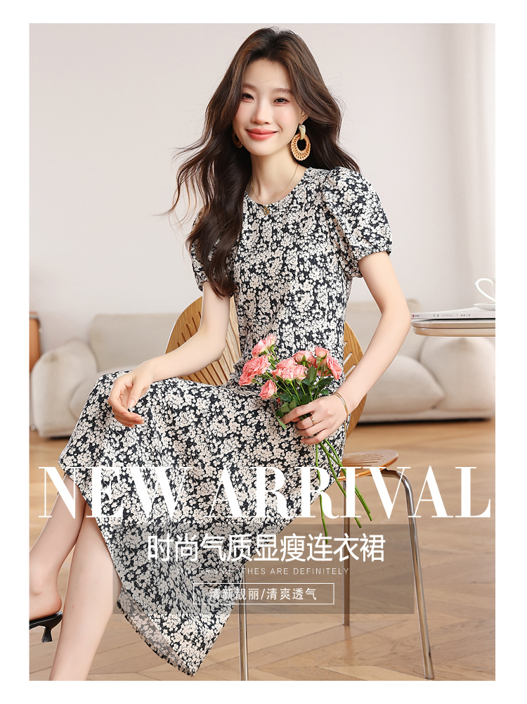 RY2257# 实拍2026夏季新款裙子斜裁显瘦减龄中长款百搭气质碎花连衣裙女潮