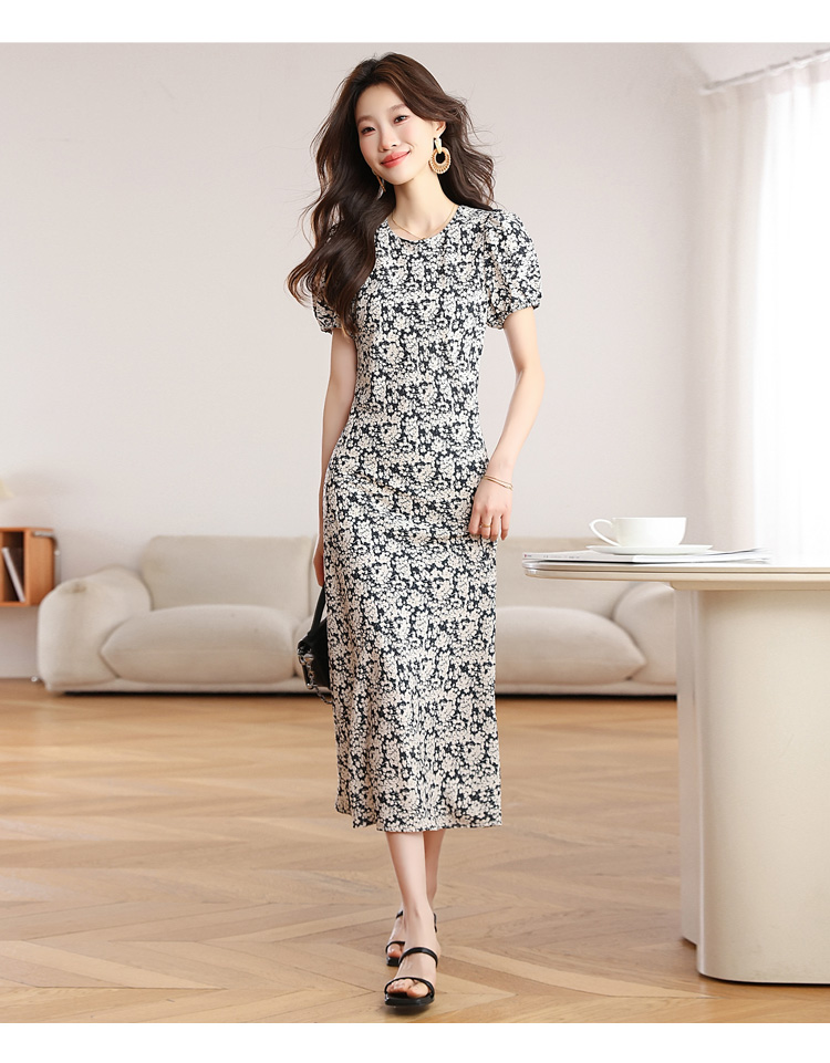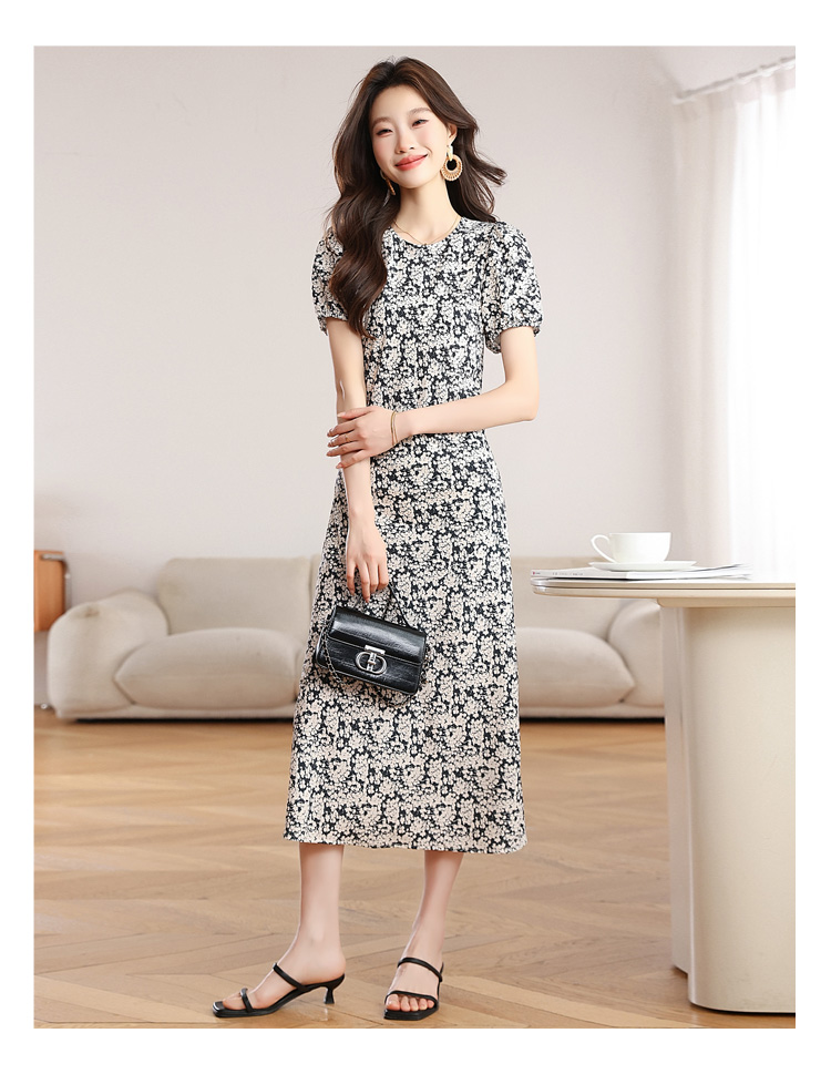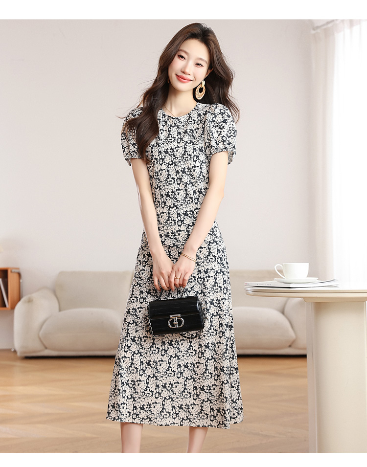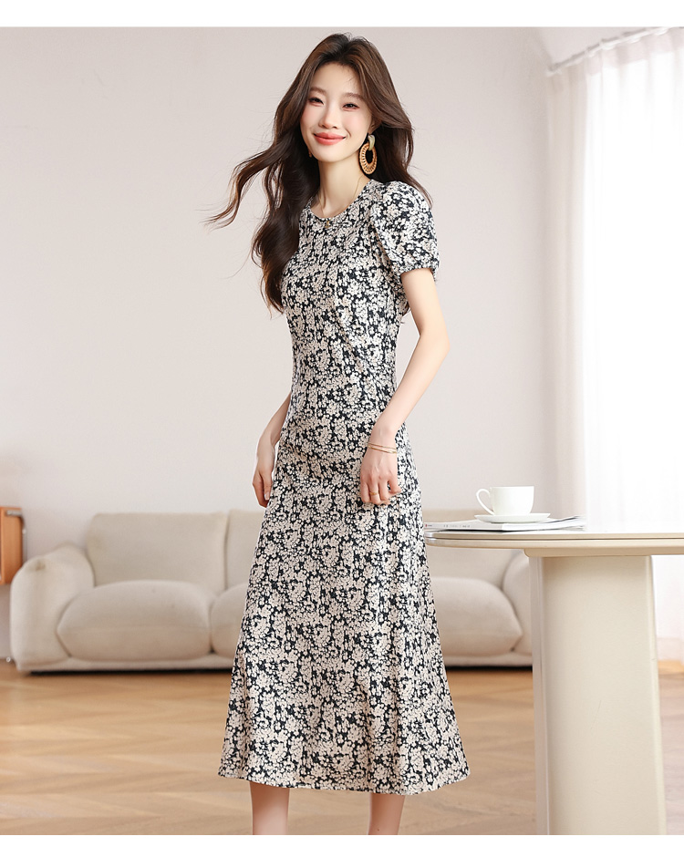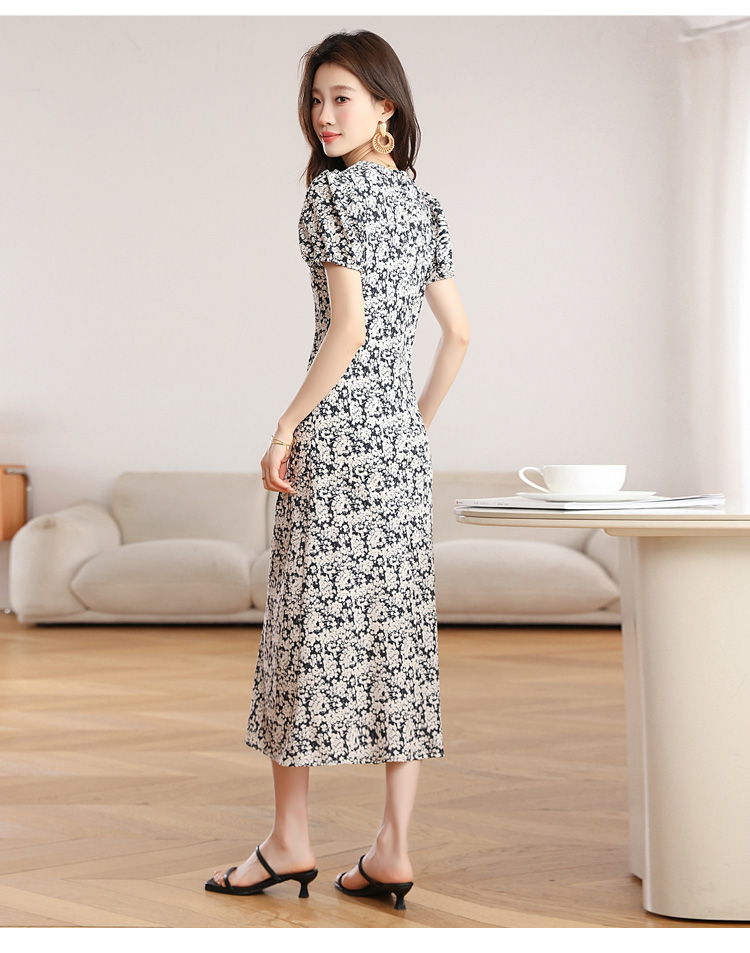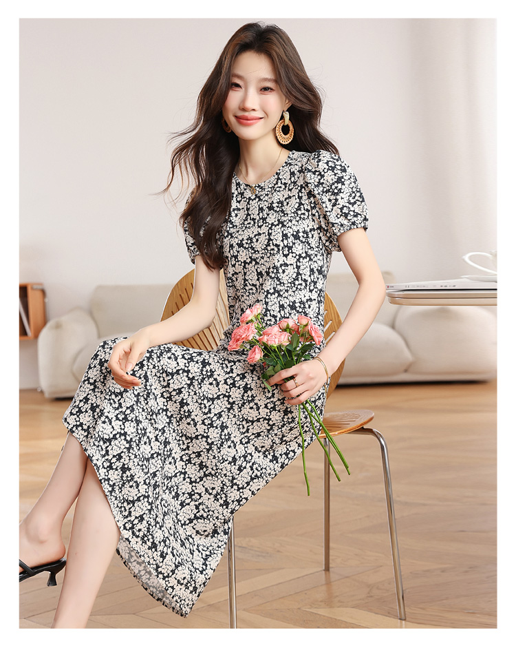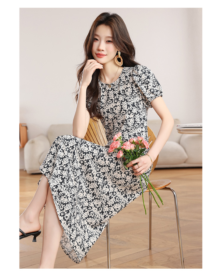 RY2257# 实拍2026夏季新款裙子斜裁显瘦减龄中长款百搭气质碎花连衣裙女潮