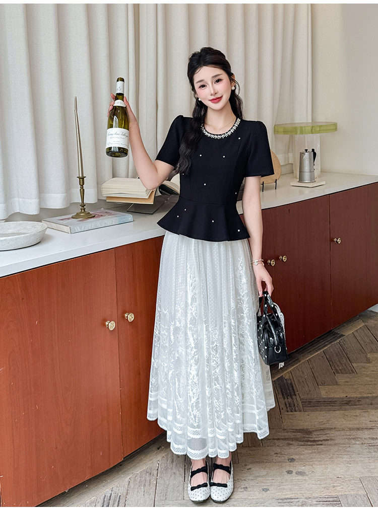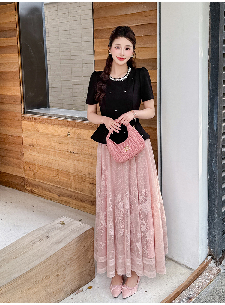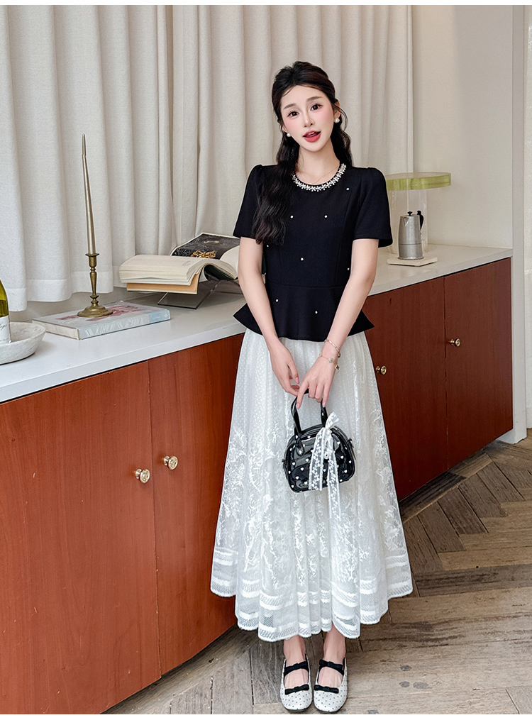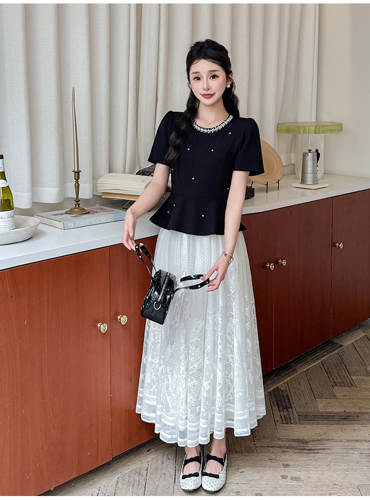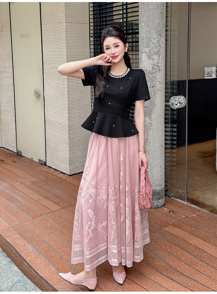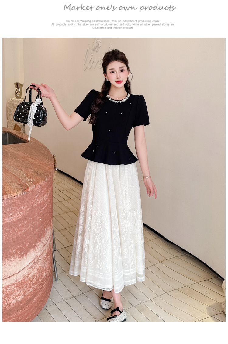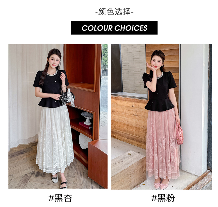 RY2267# 实拍大码夏季钉珠法式轻奢显瘦上衣长裙气质两件套