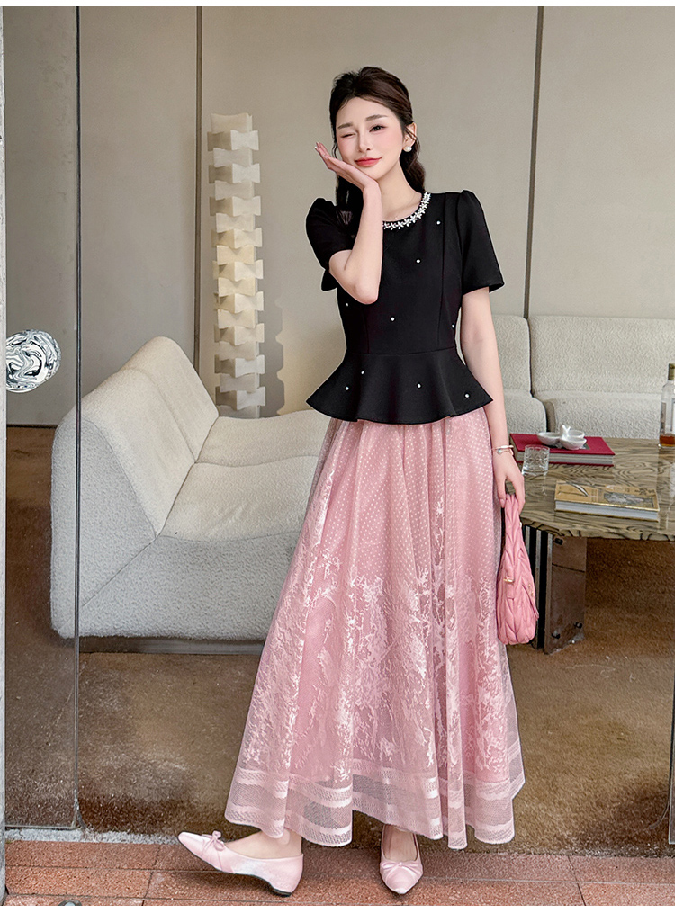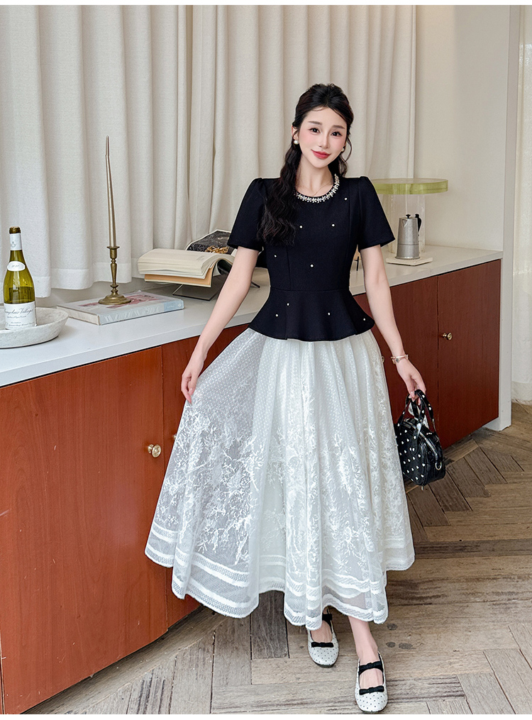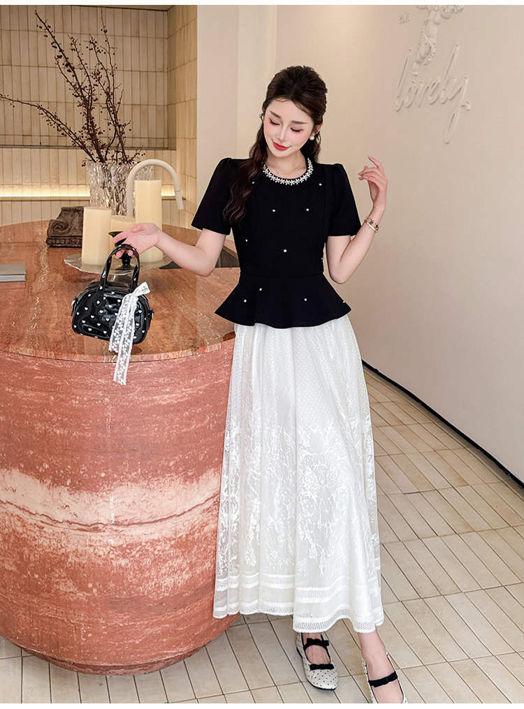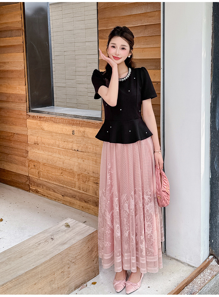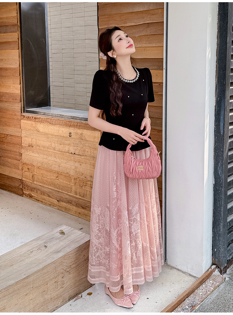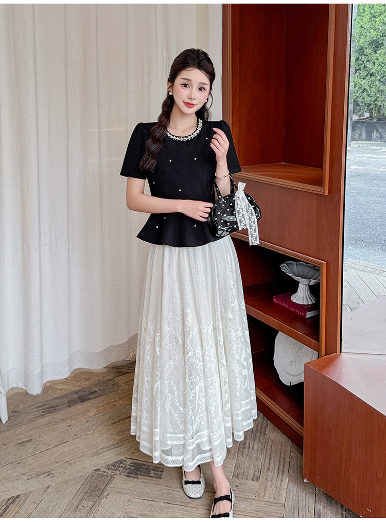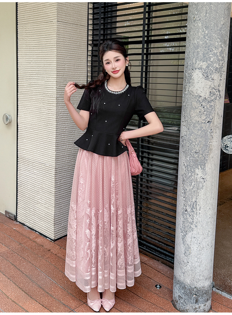 RY2267# 实拍大码夏季钉珠法式轻奢显瘦上衣长裙气质两件套