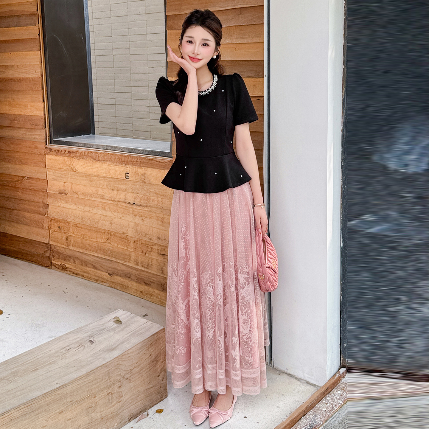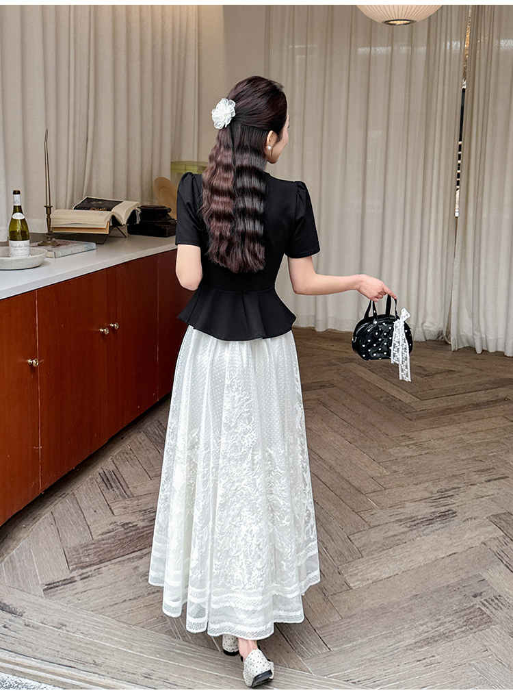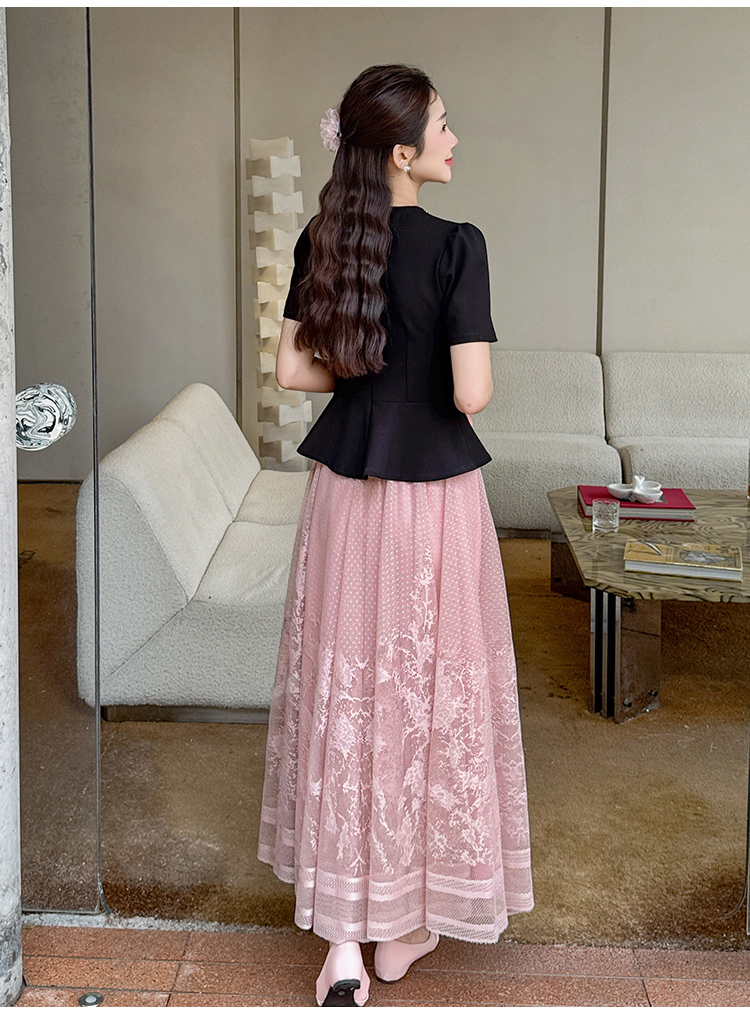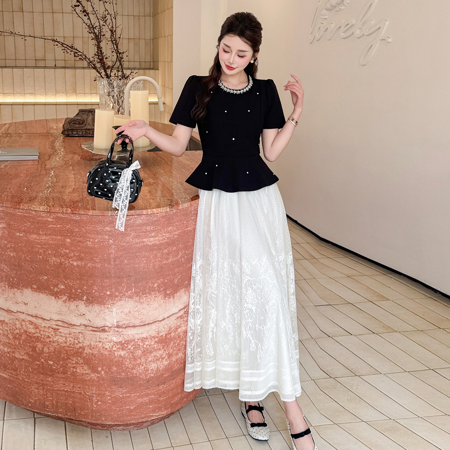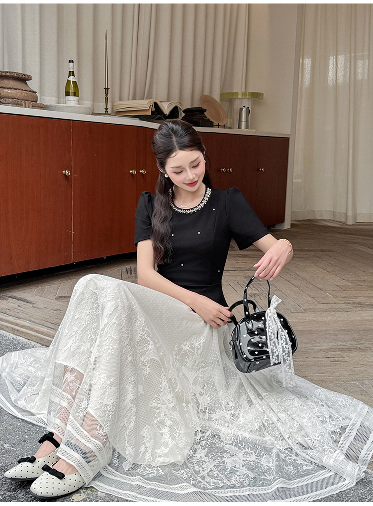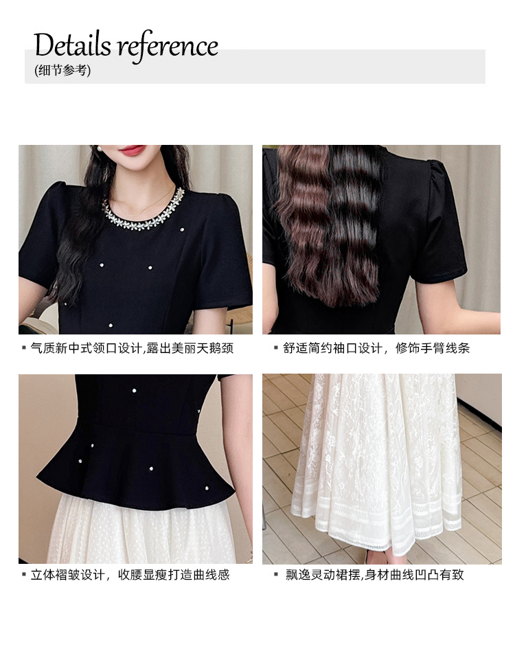 RY2267# 实拍大码夏季钉珠法式轻奢显瘦上衣长裙气质两件套