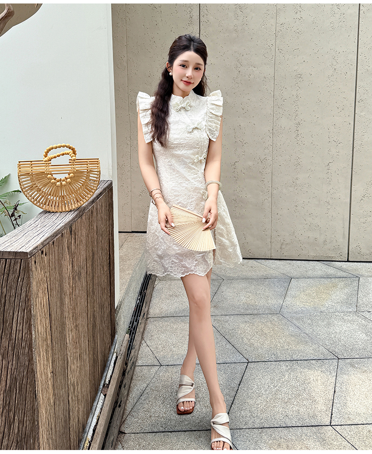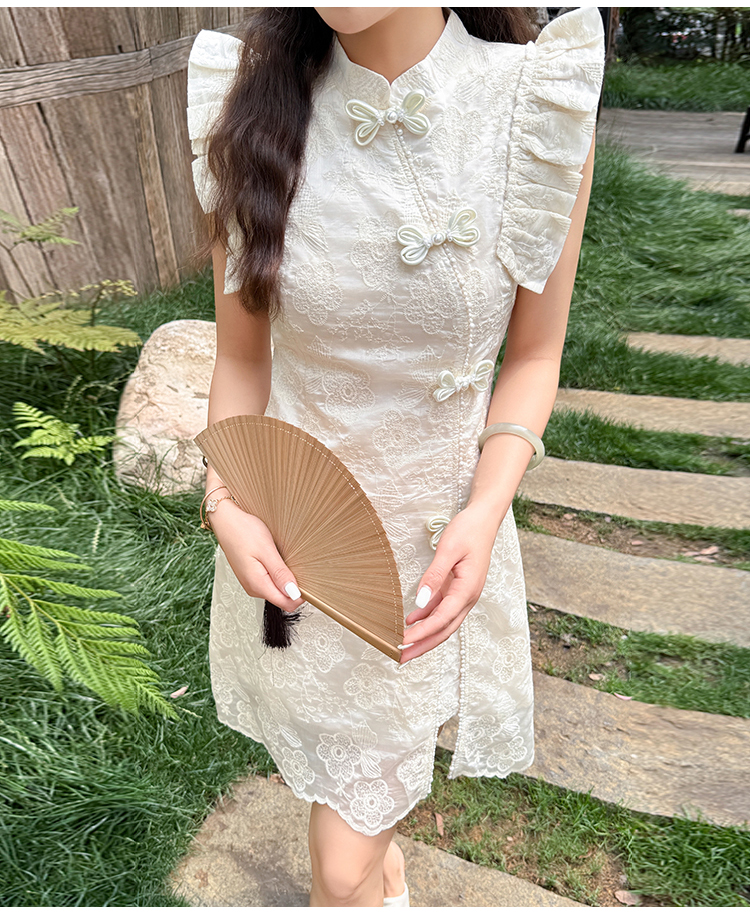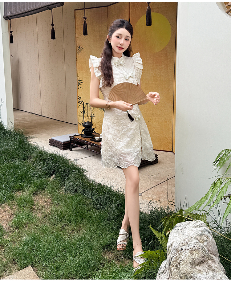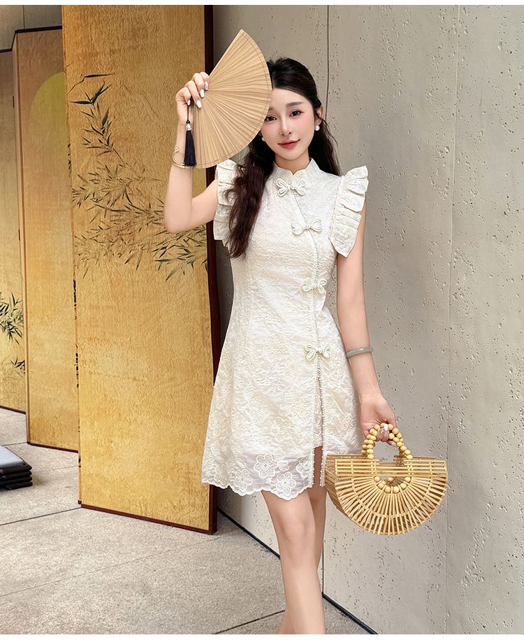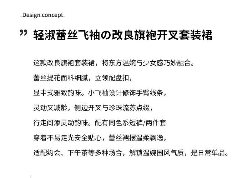 RY2271# 实拍夏季新款刺绣国风改良旗袍连衣裙短裤两件套