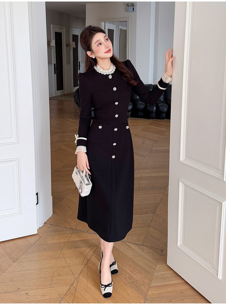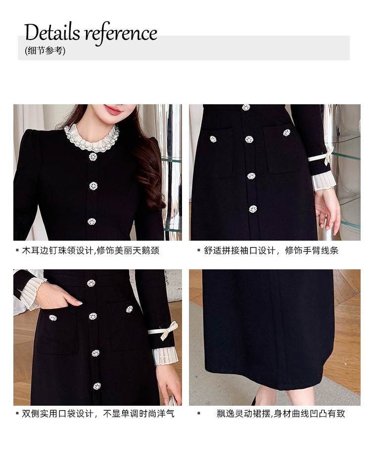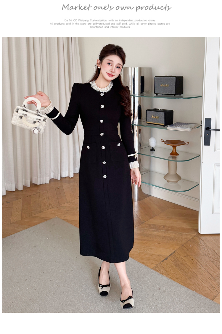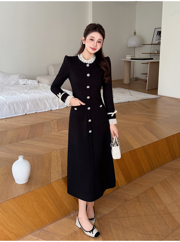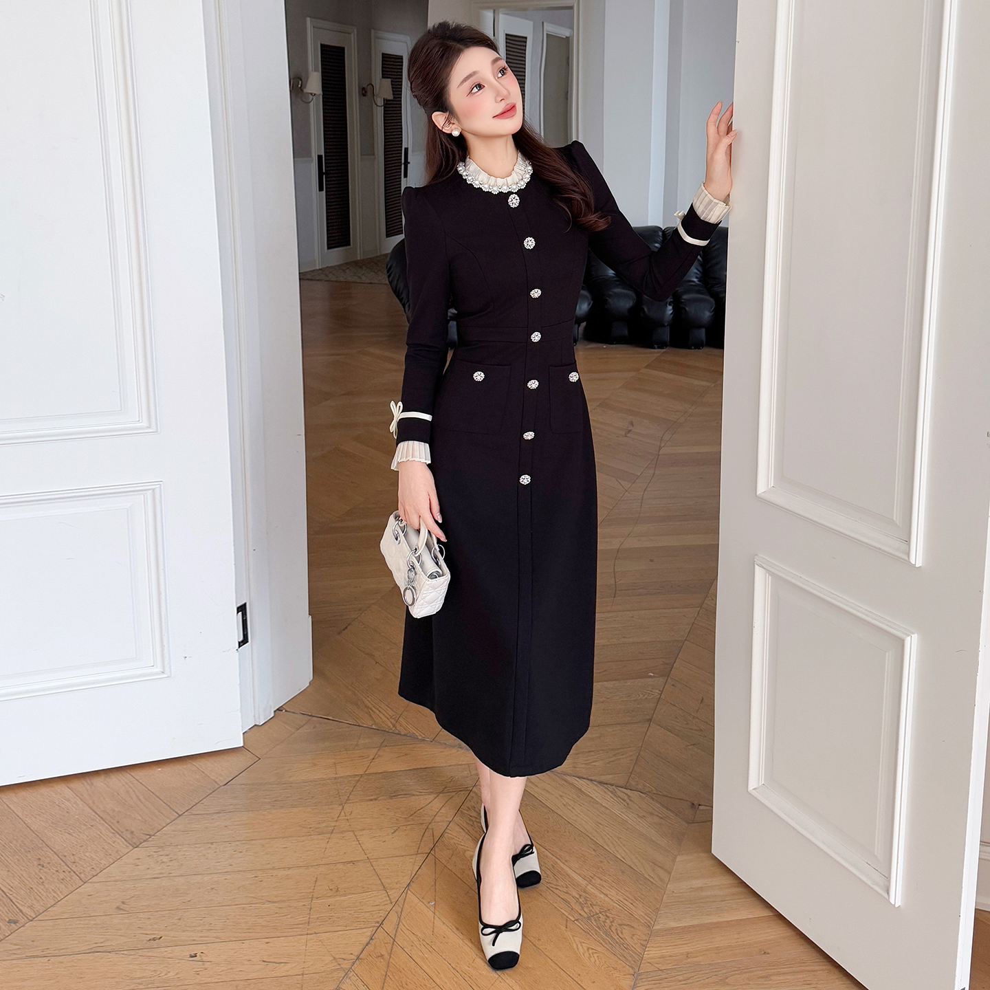 RY2277# 实拍春款大码赫本风气质钉珠优雅显瘦长款连衣裙