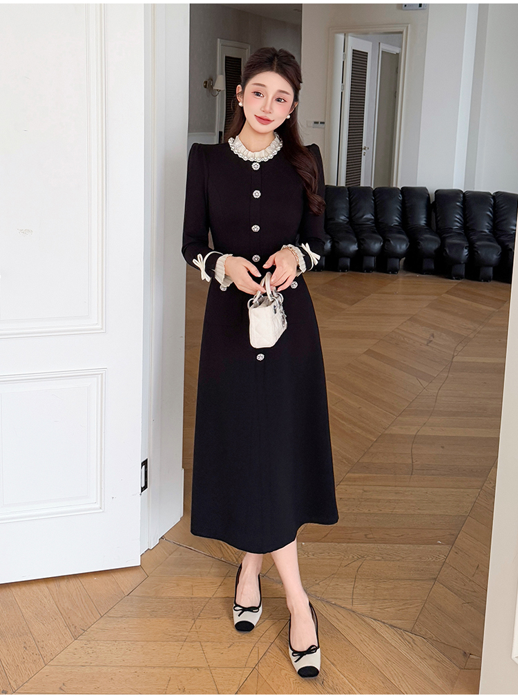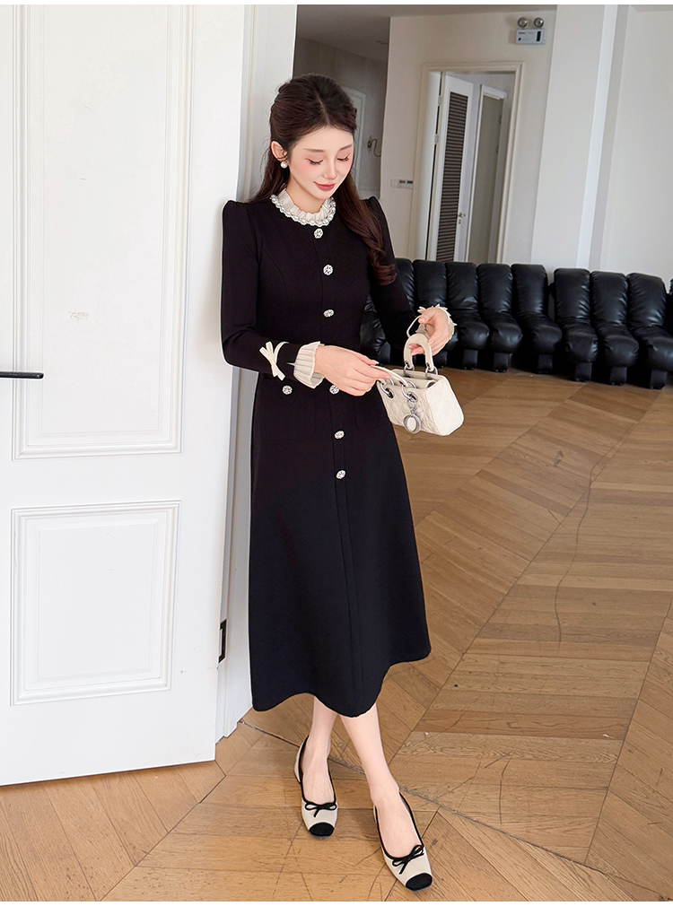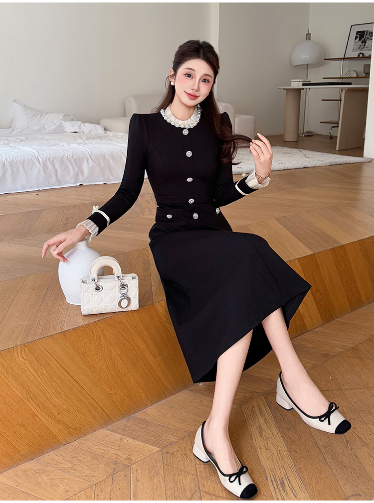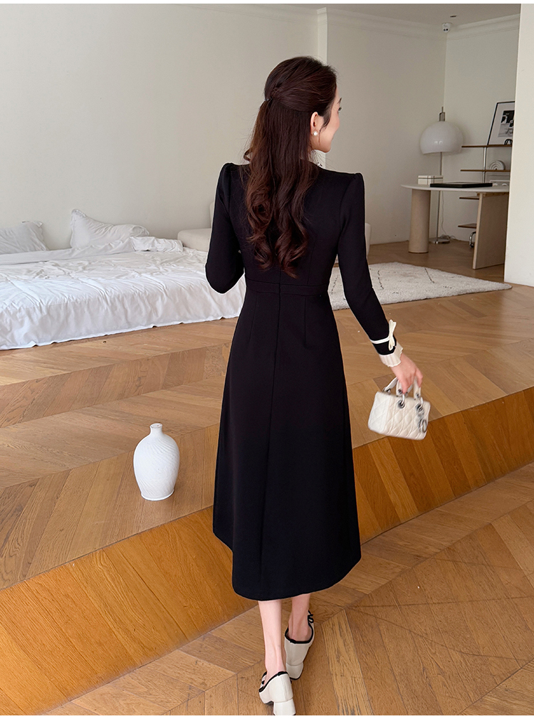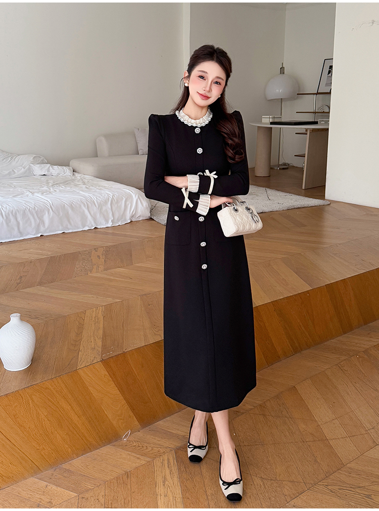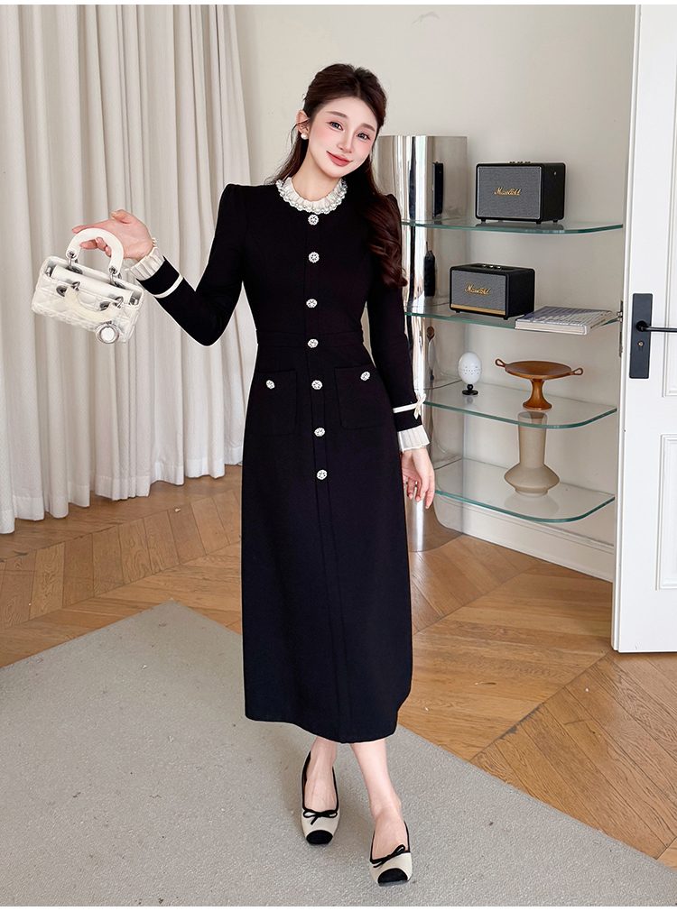 RY2277# 实拍春款大码赫本风气质钉珠优雅显瘦长款连衣裙