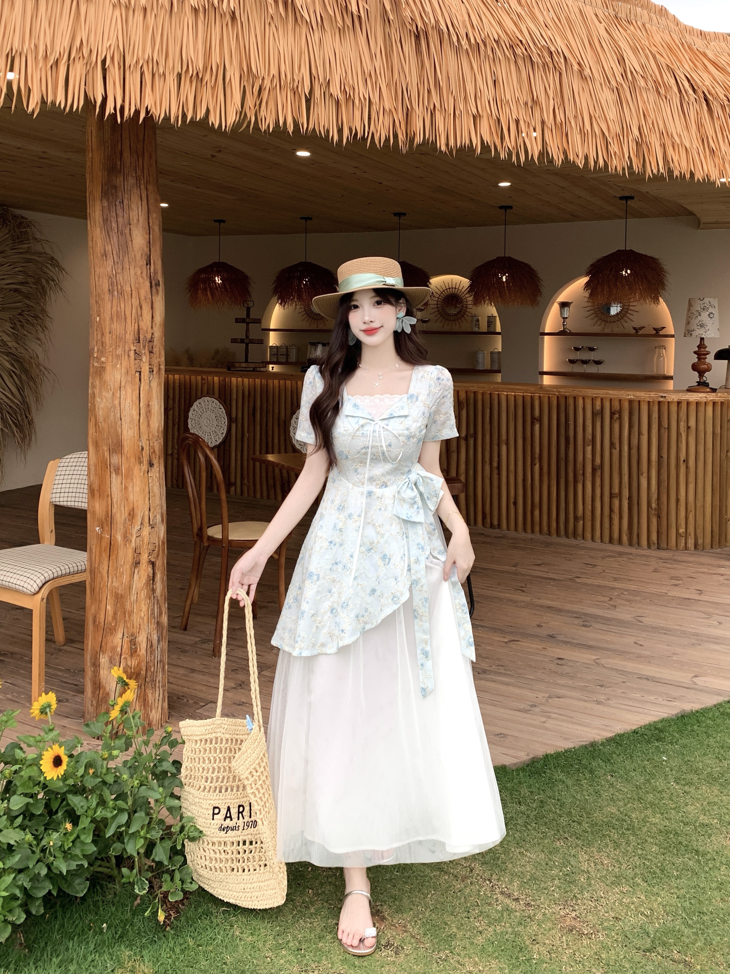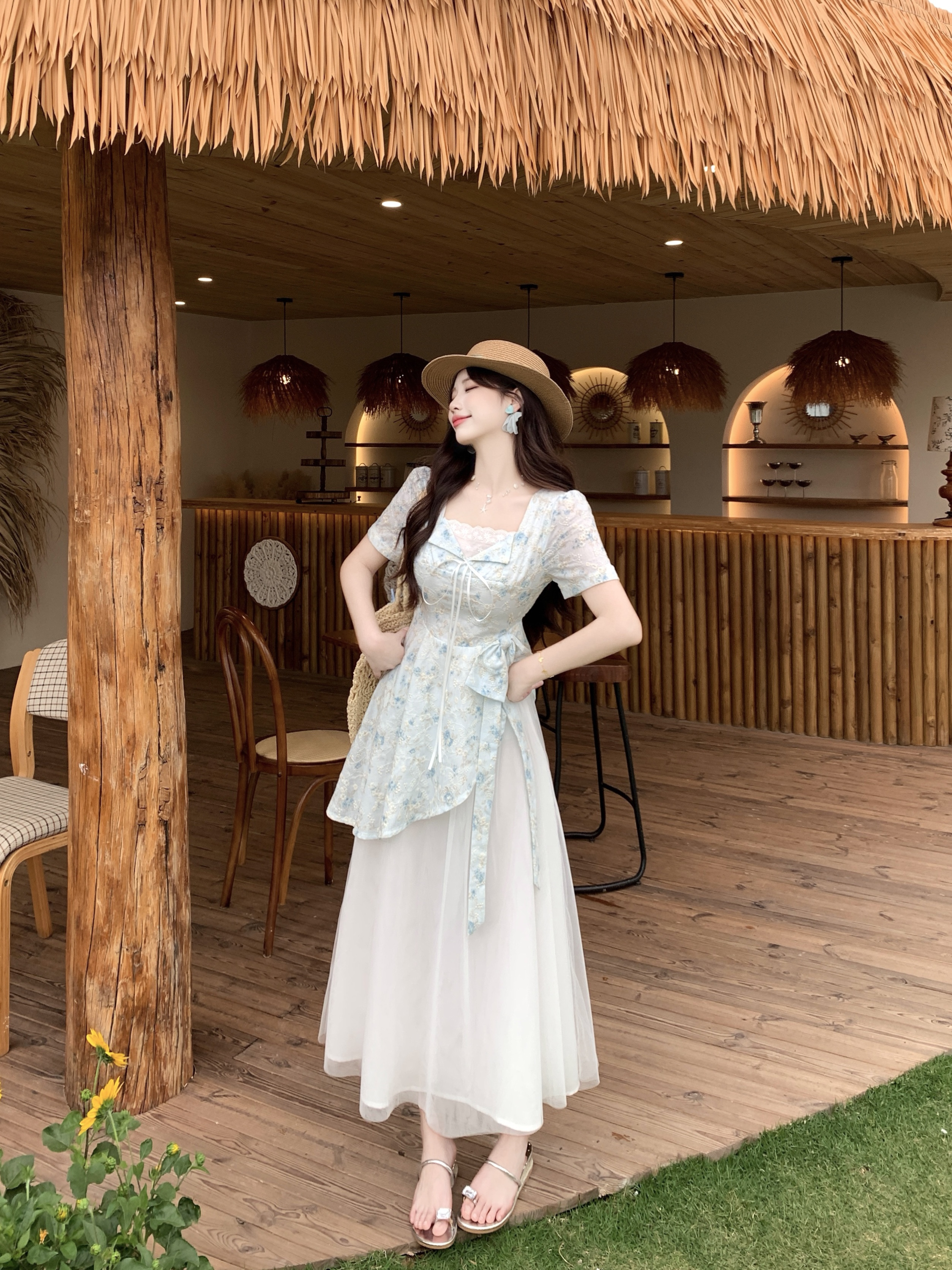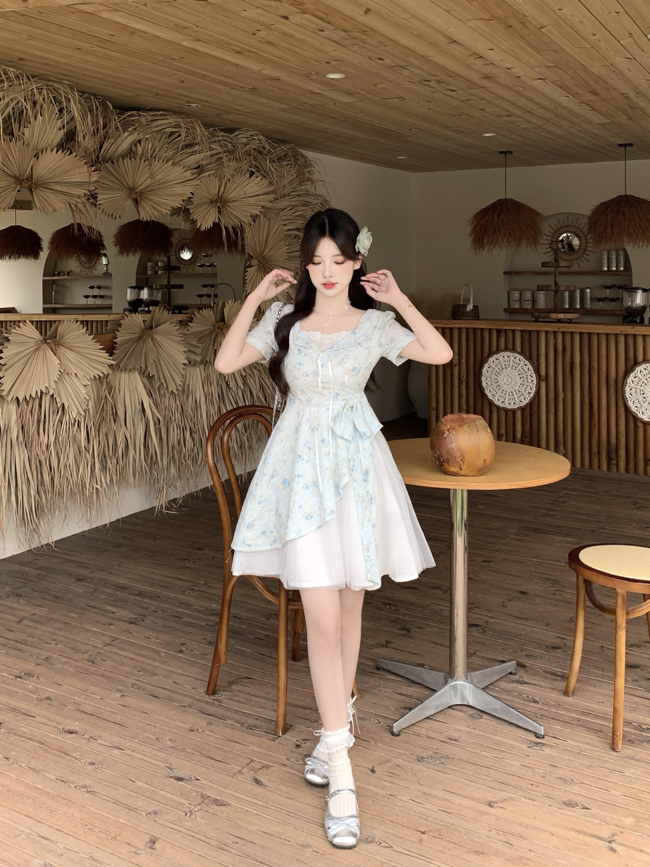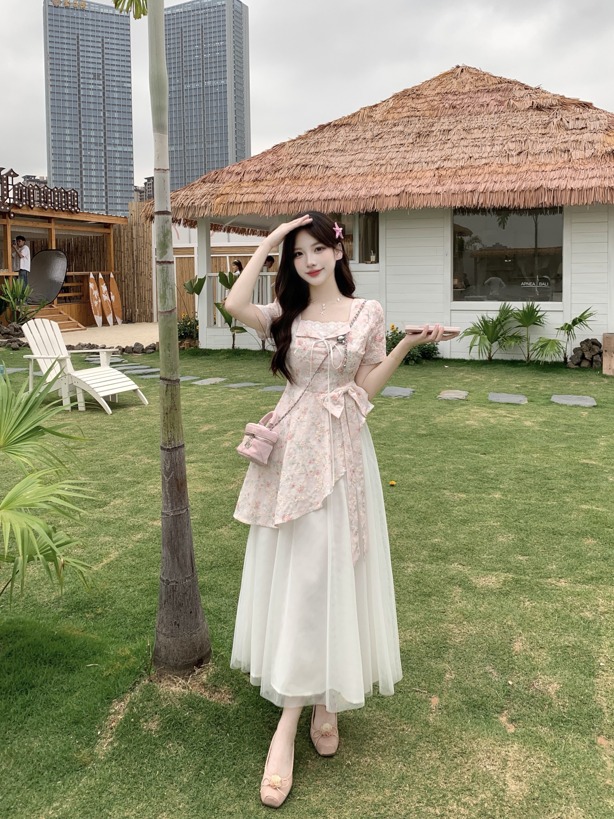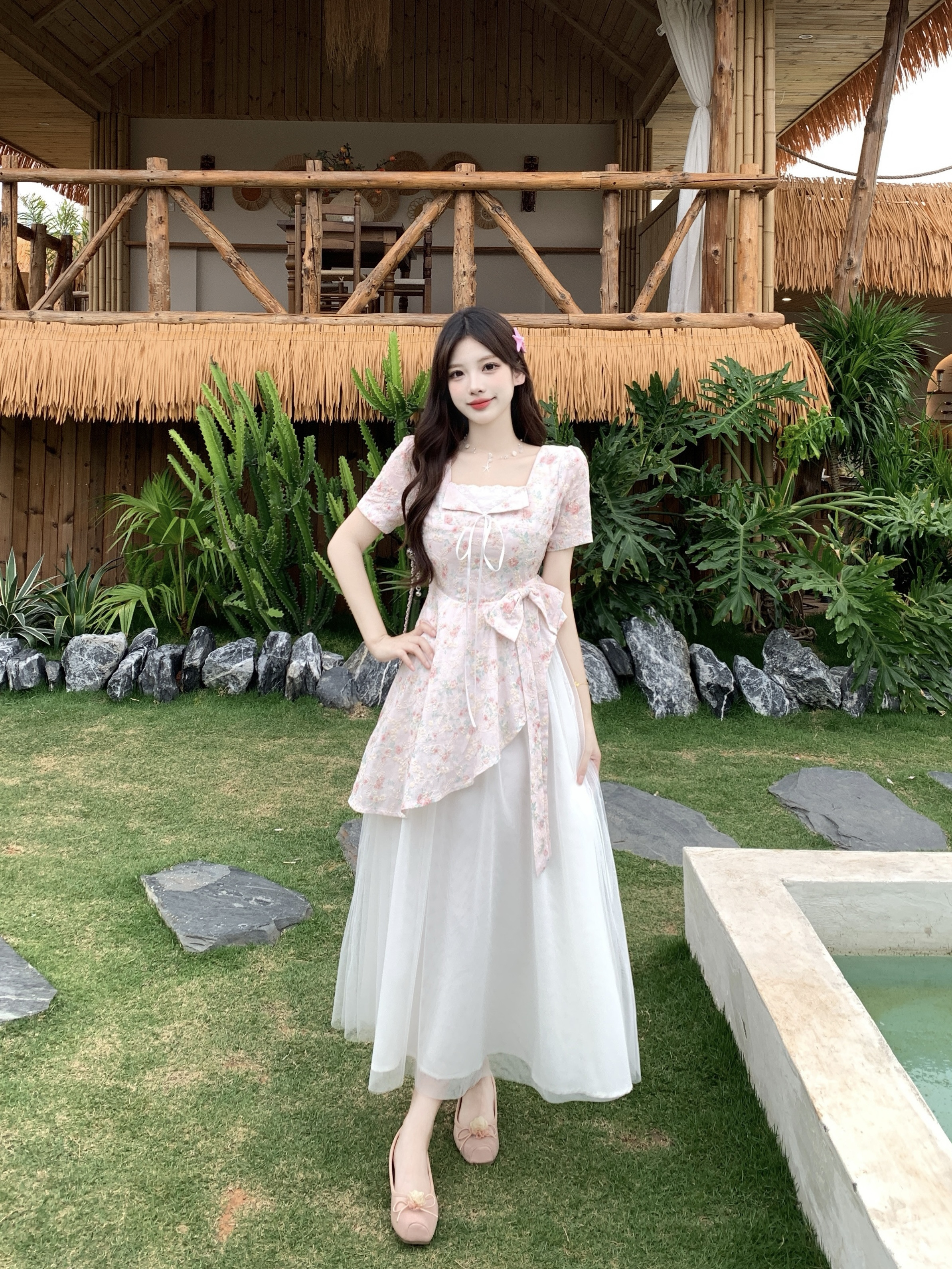 RY2285# 大码2026清甜一夏微胖mm公主风设计感拼接网纱甜美蝴蝶结连衣裙