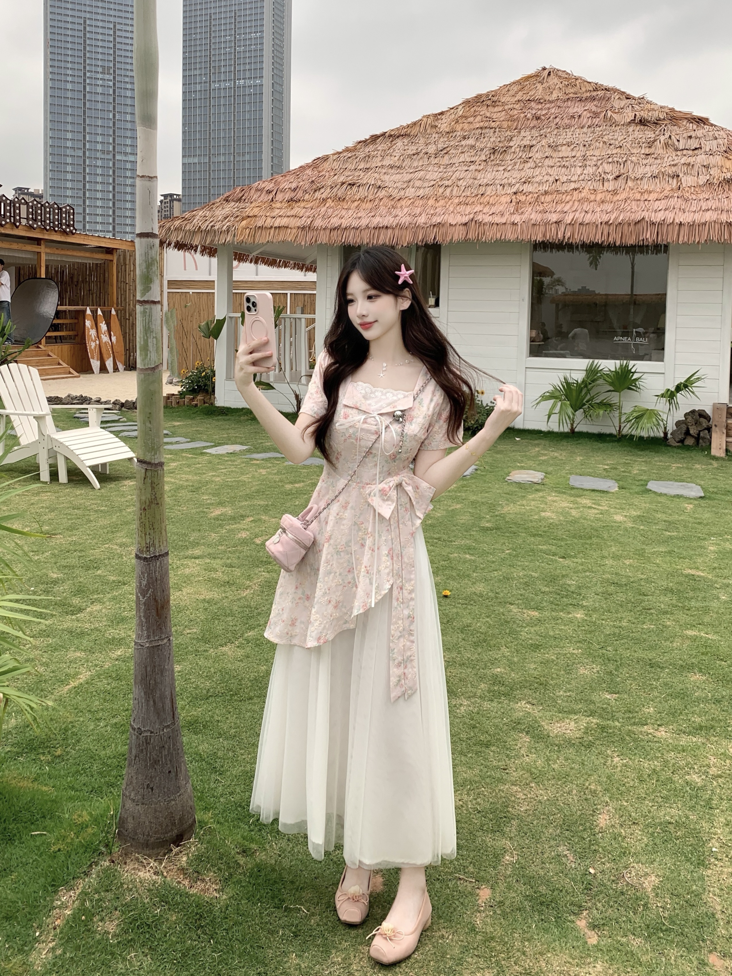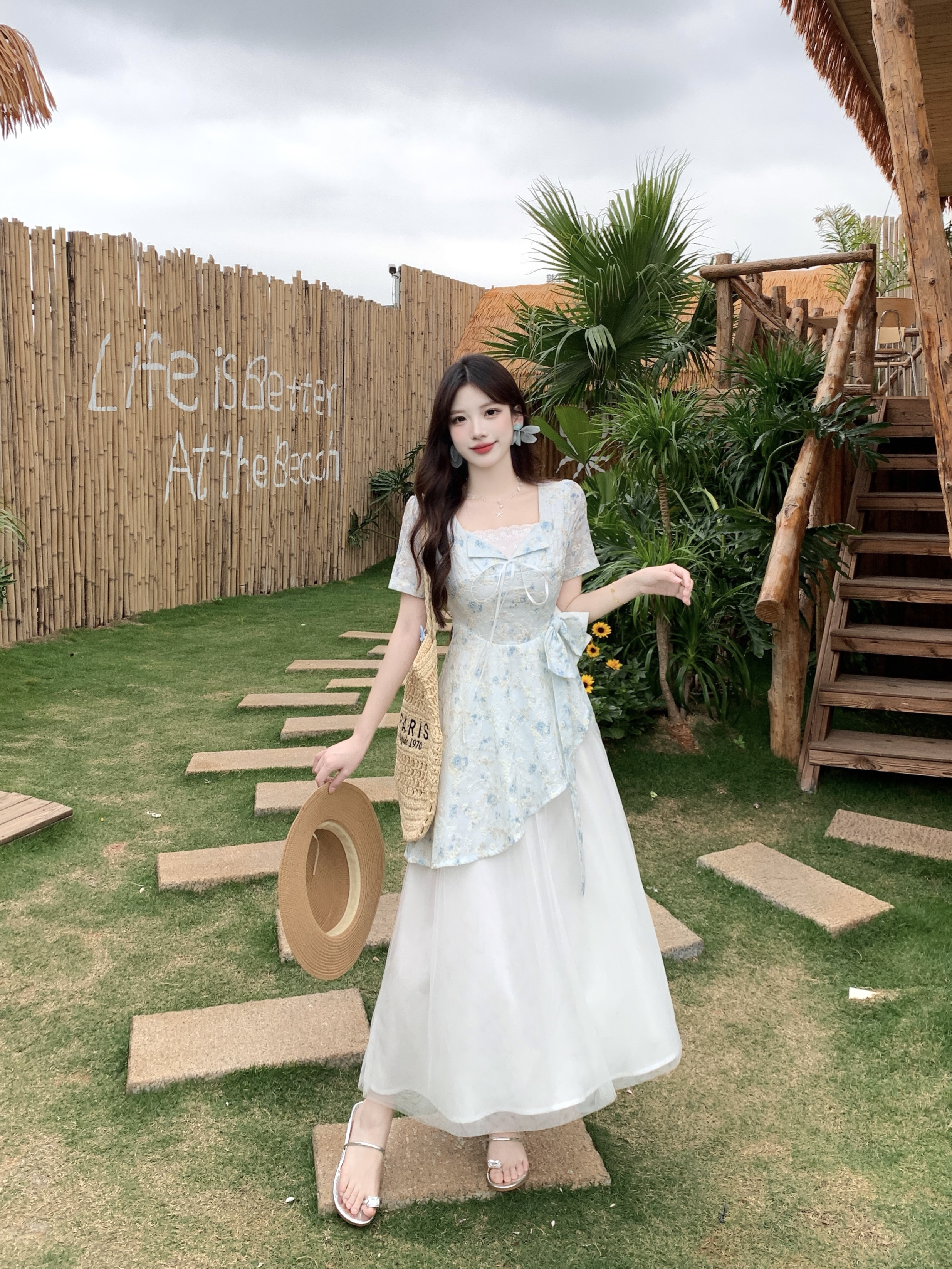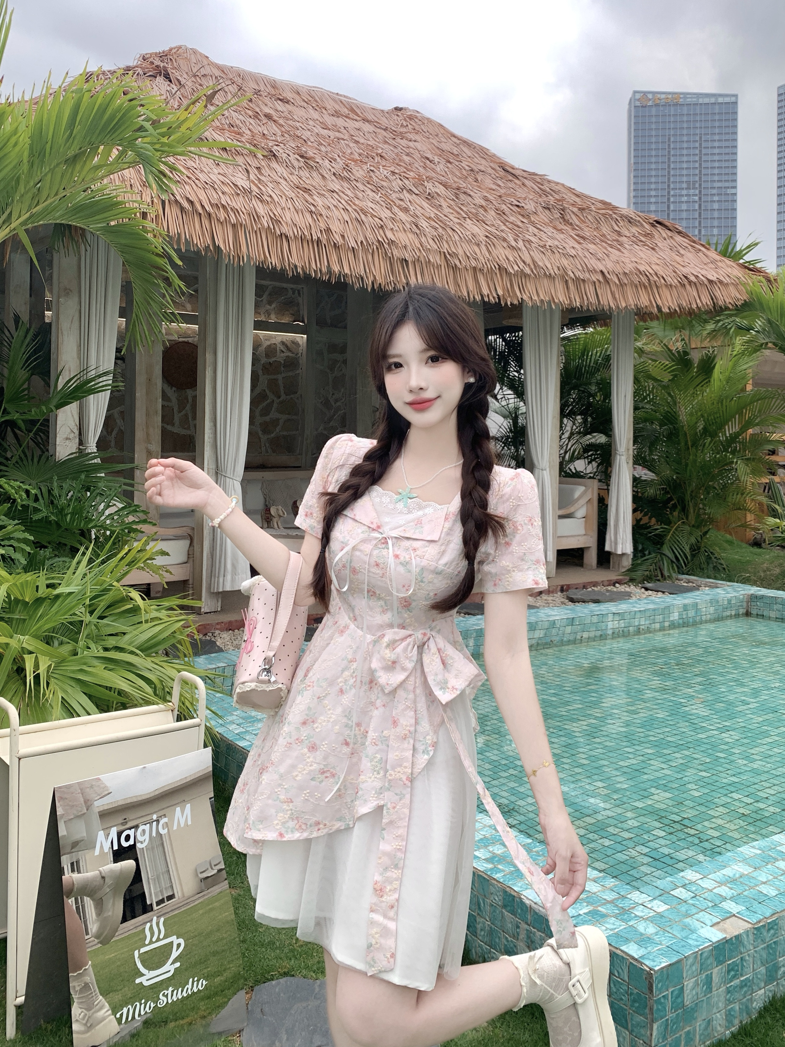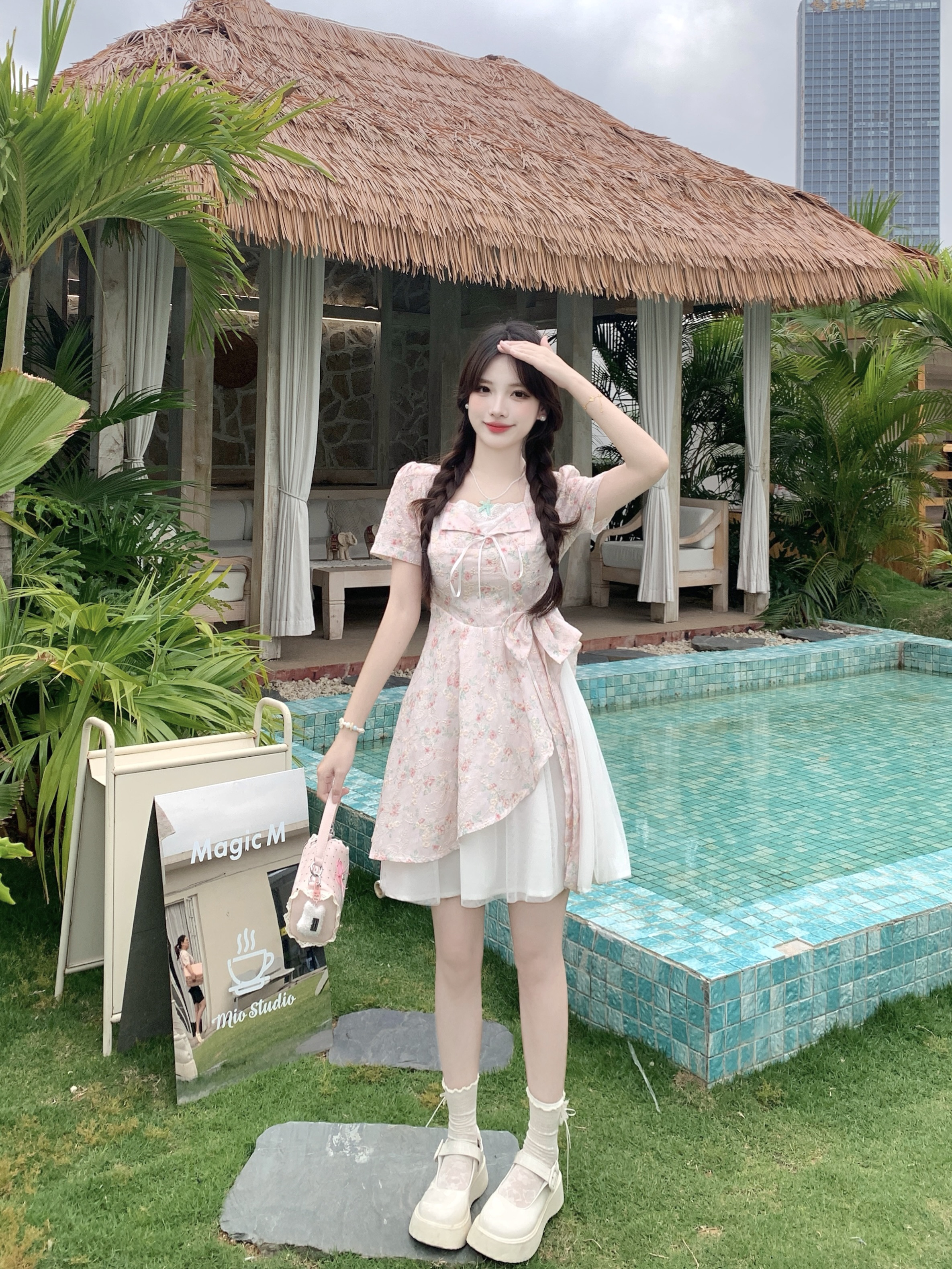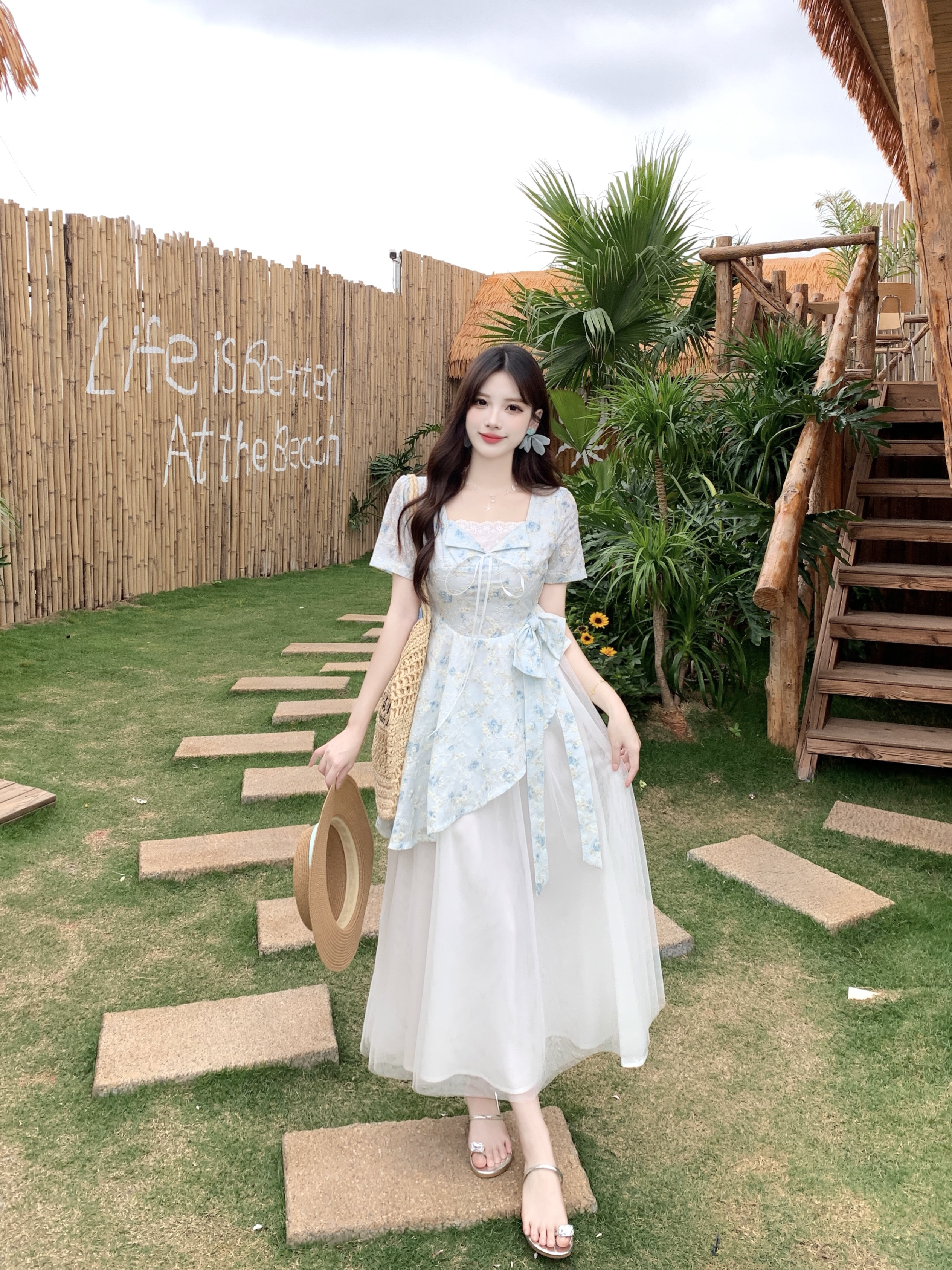 RY2285# 大码2026清甜一夏微胖mm公主风设计感拼接网纱甜美蝴蝶结连衣裙