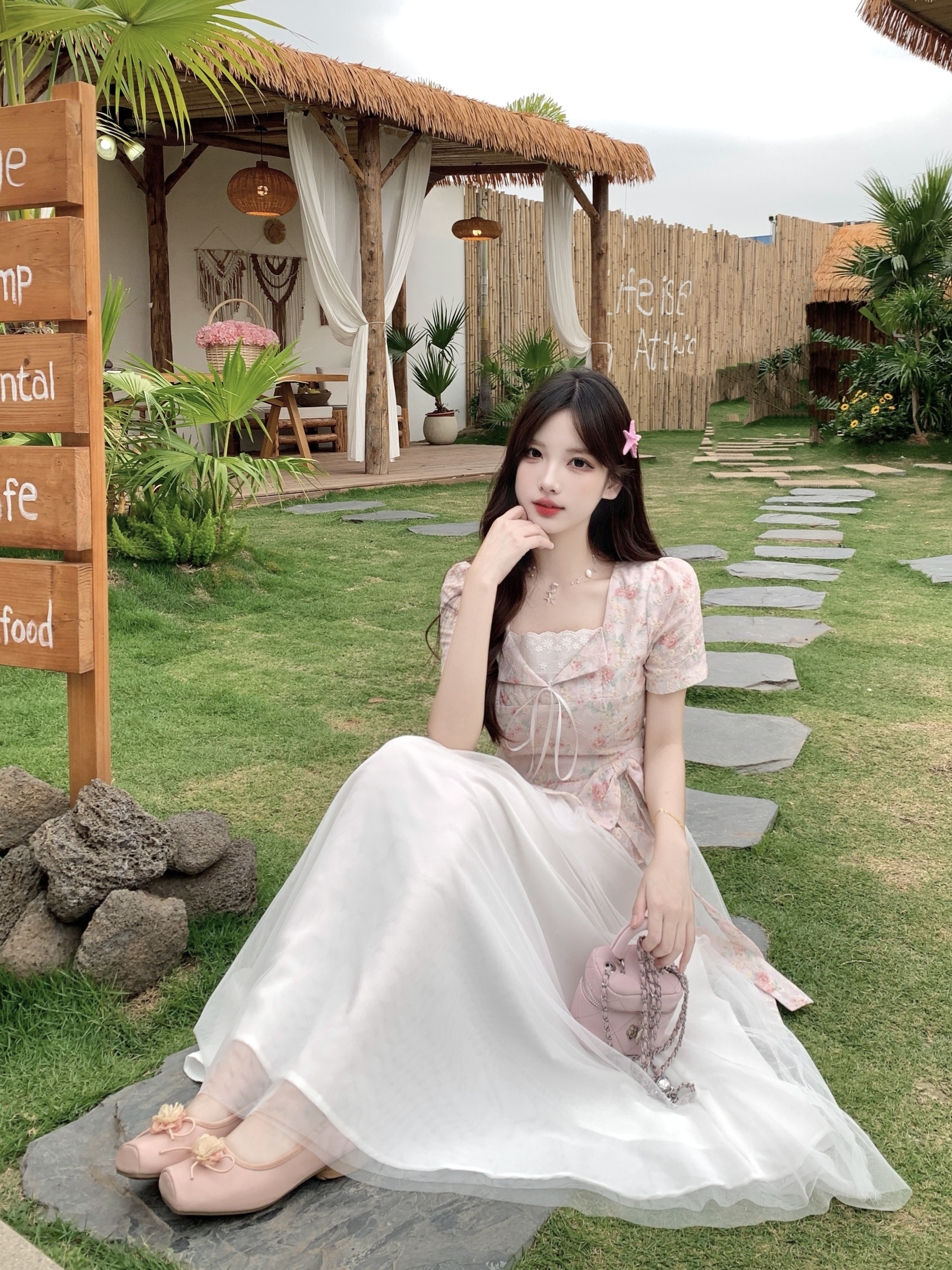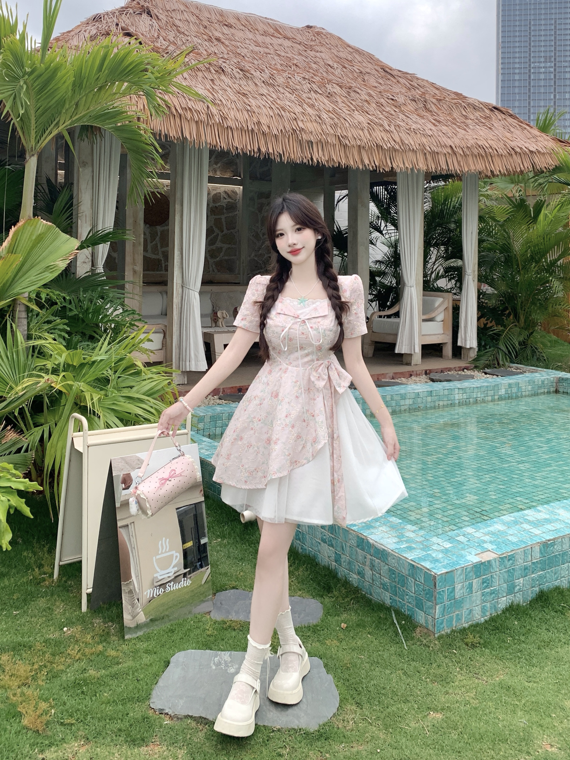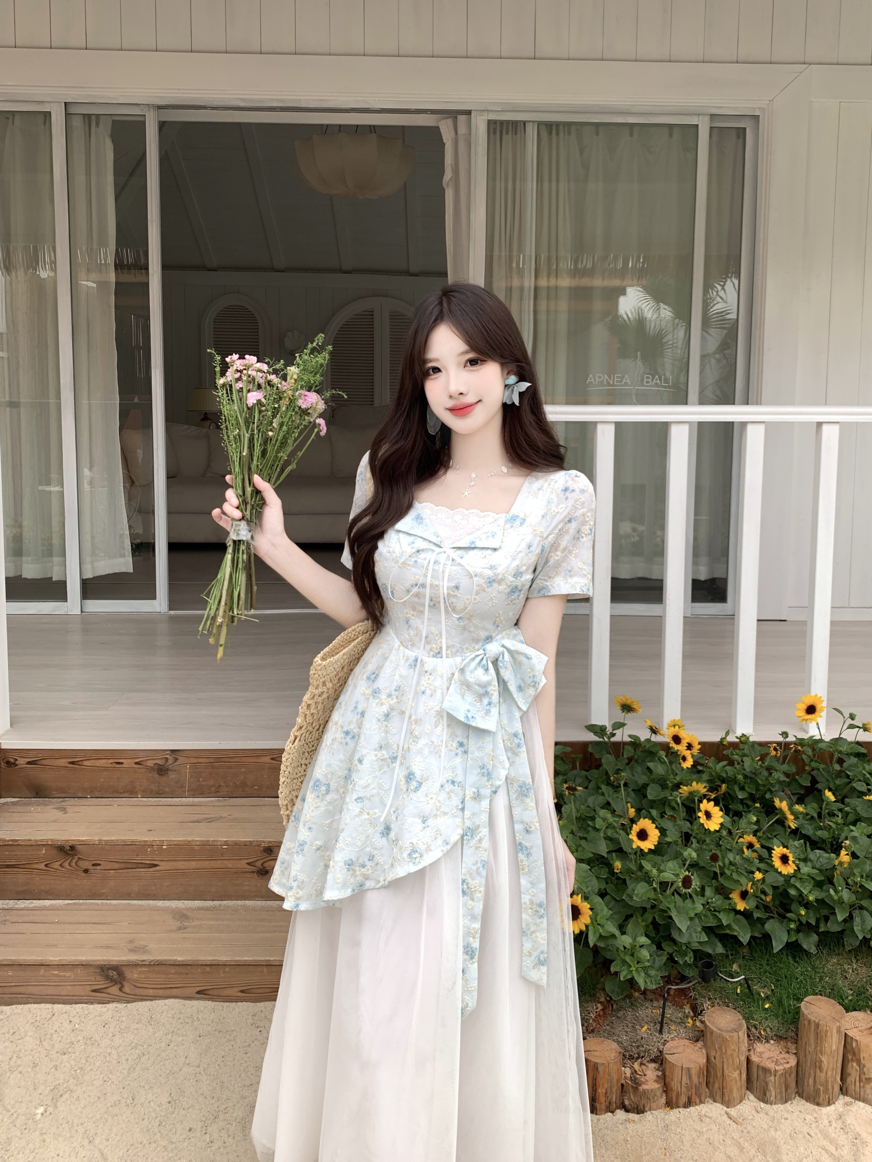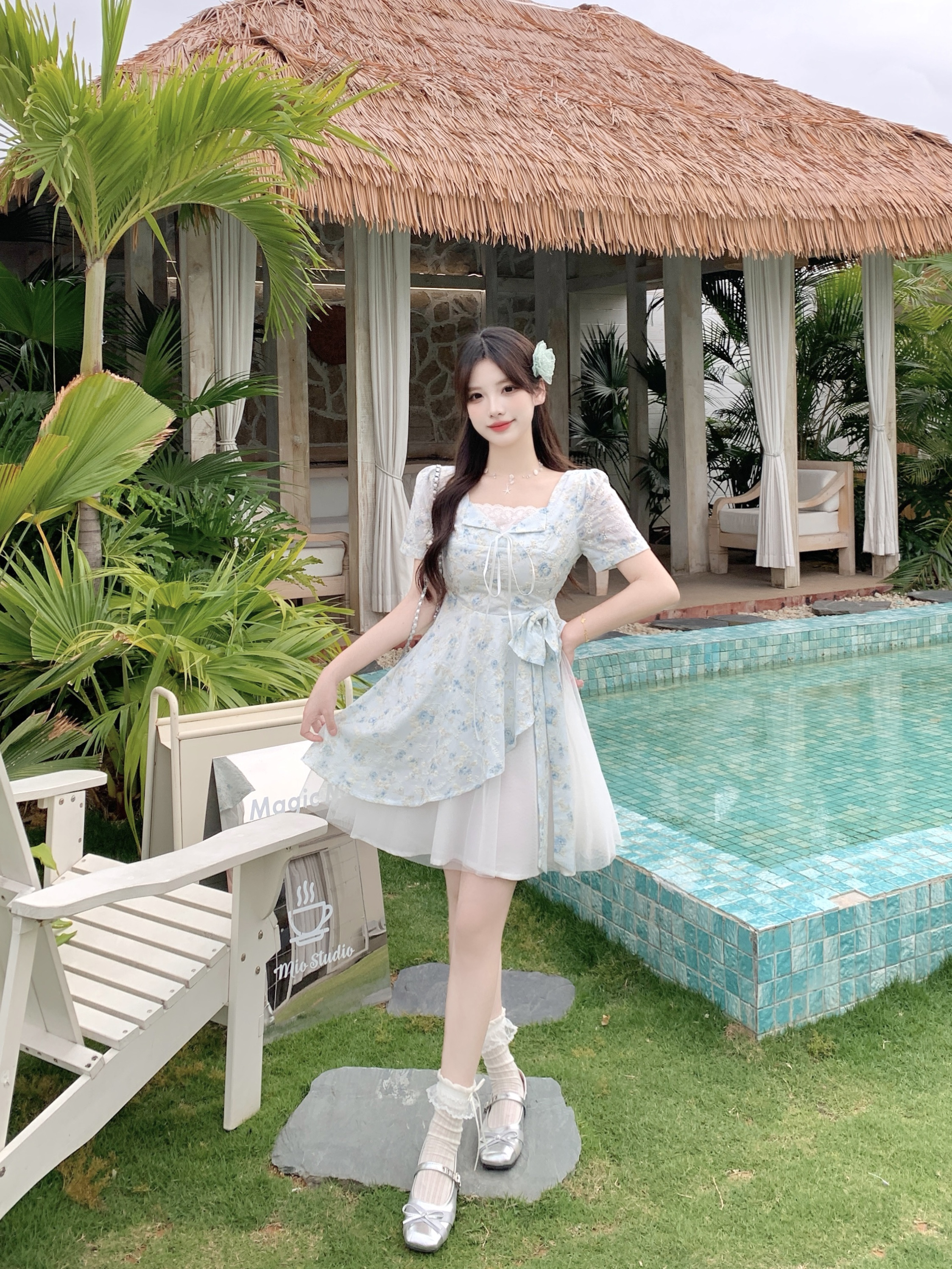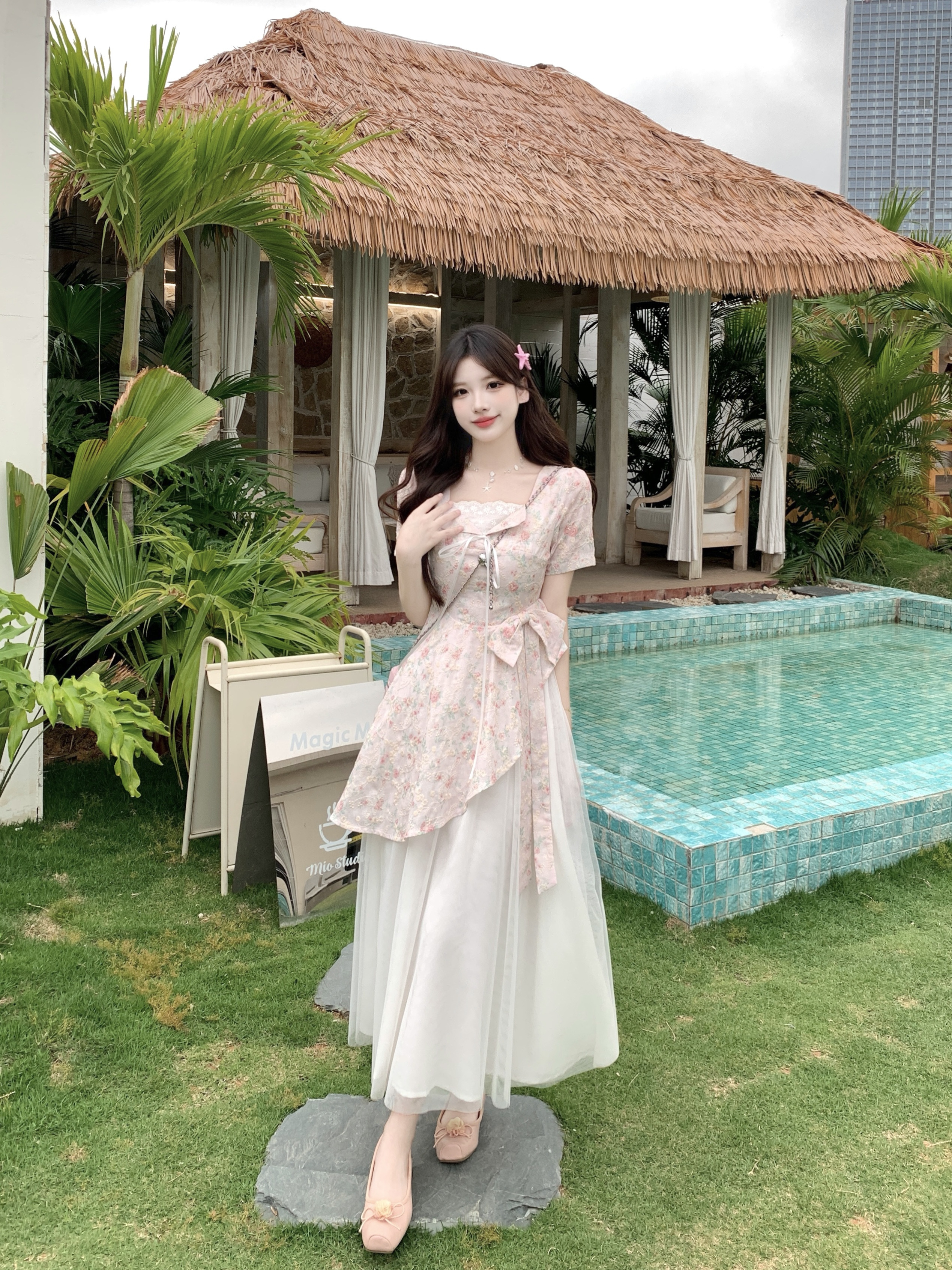 RY2285# 大码2026清甜一夏微胖mm公主风设计感拼接网纱甜美蝴蝶结连衣裙