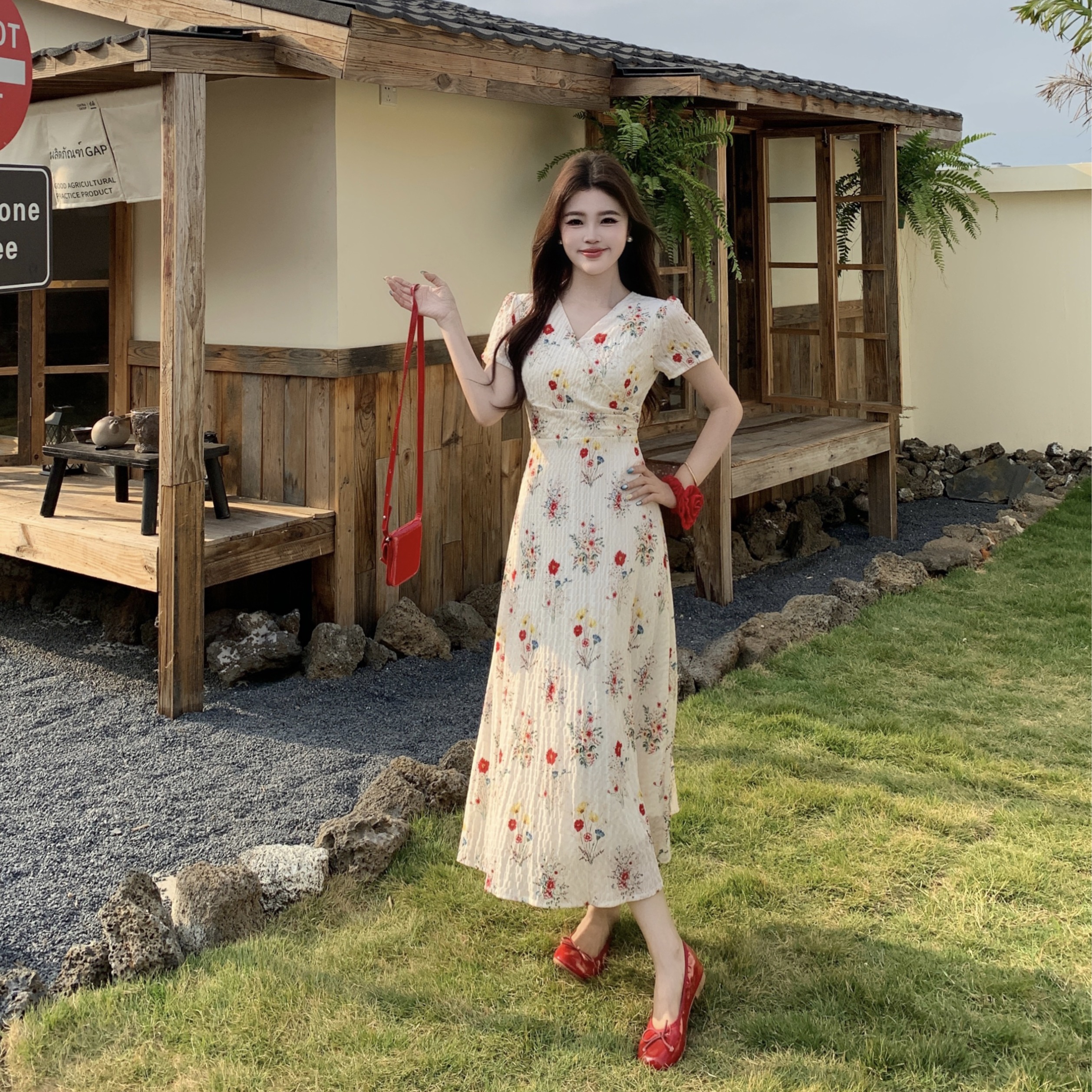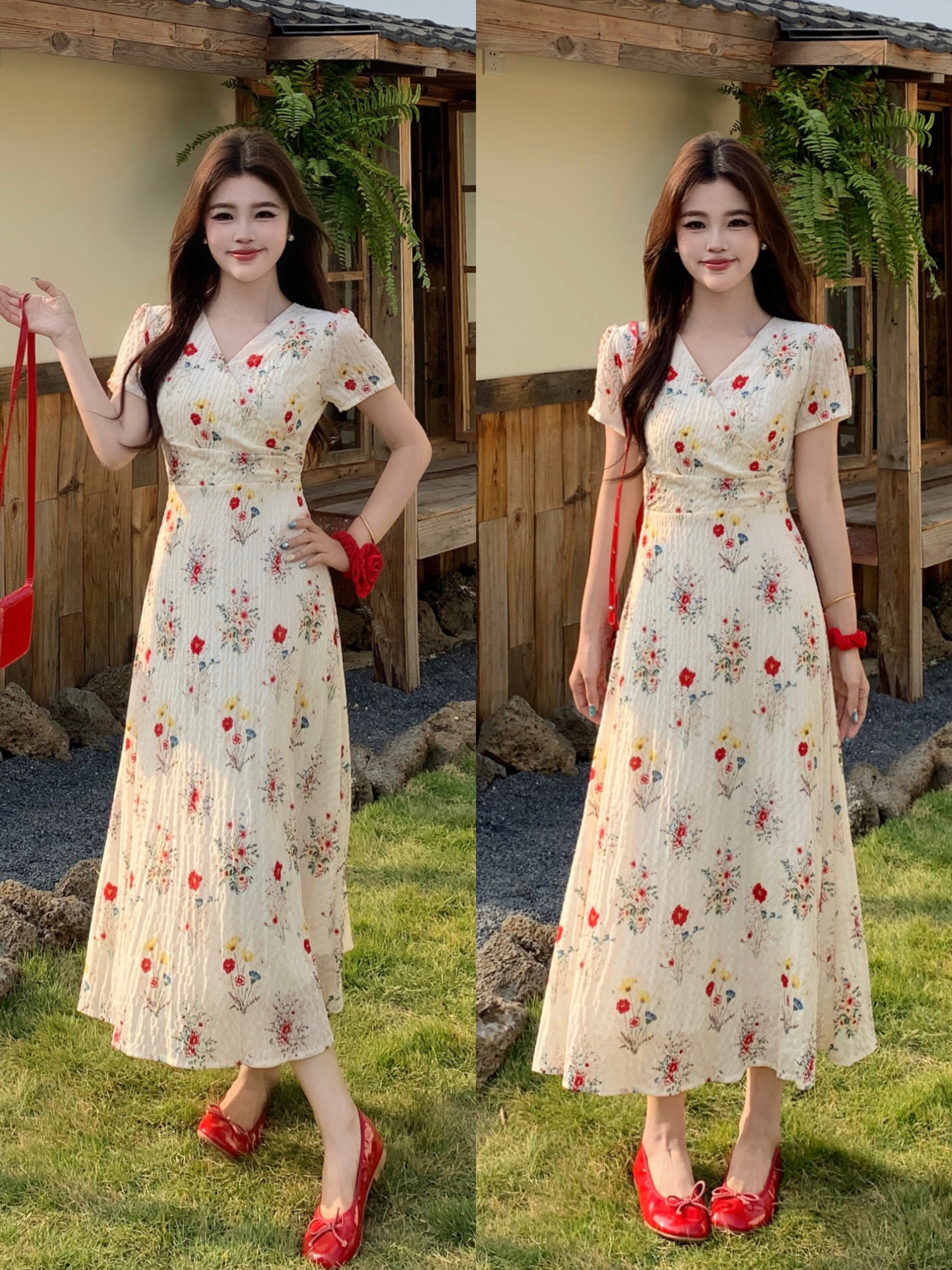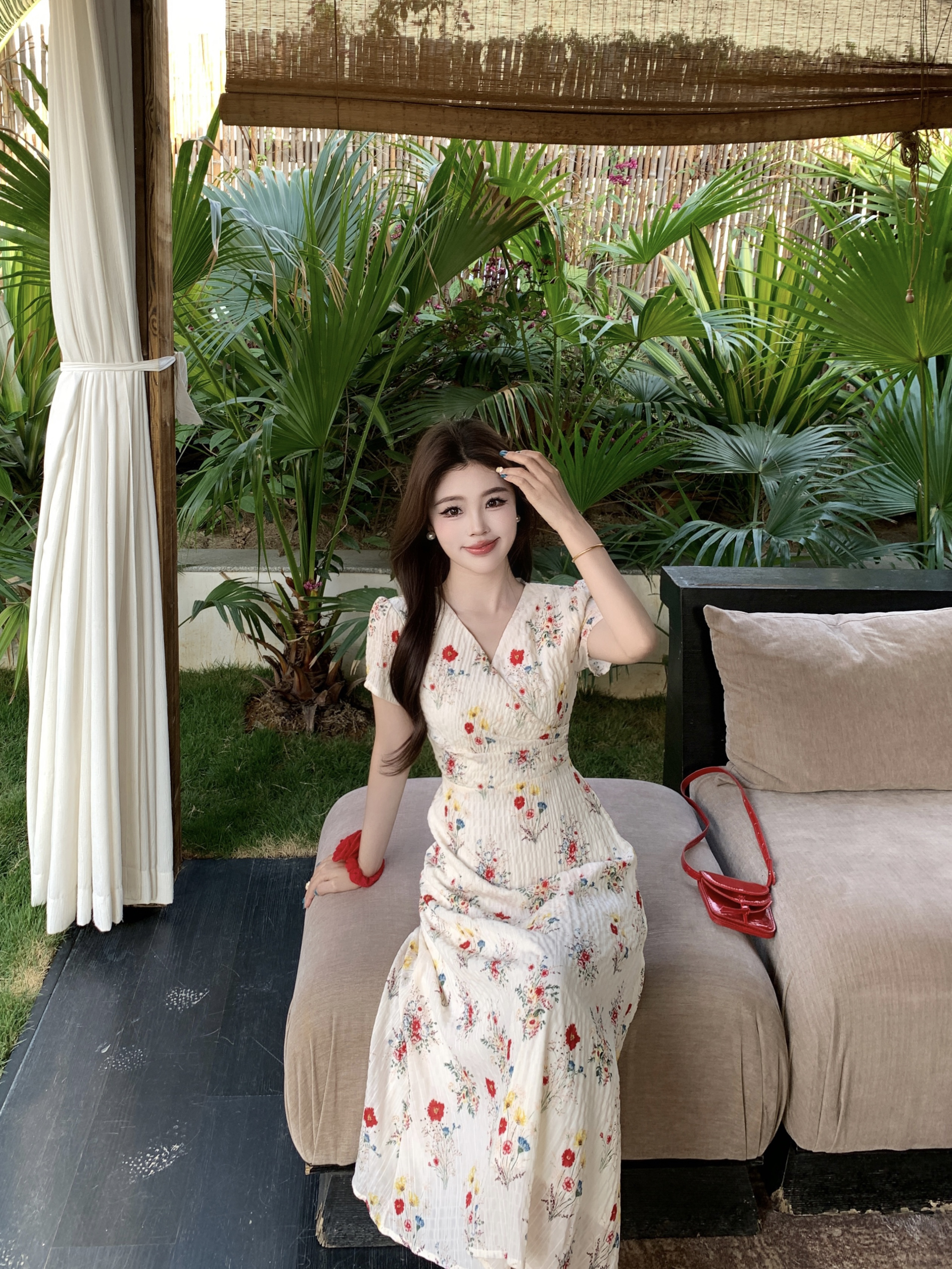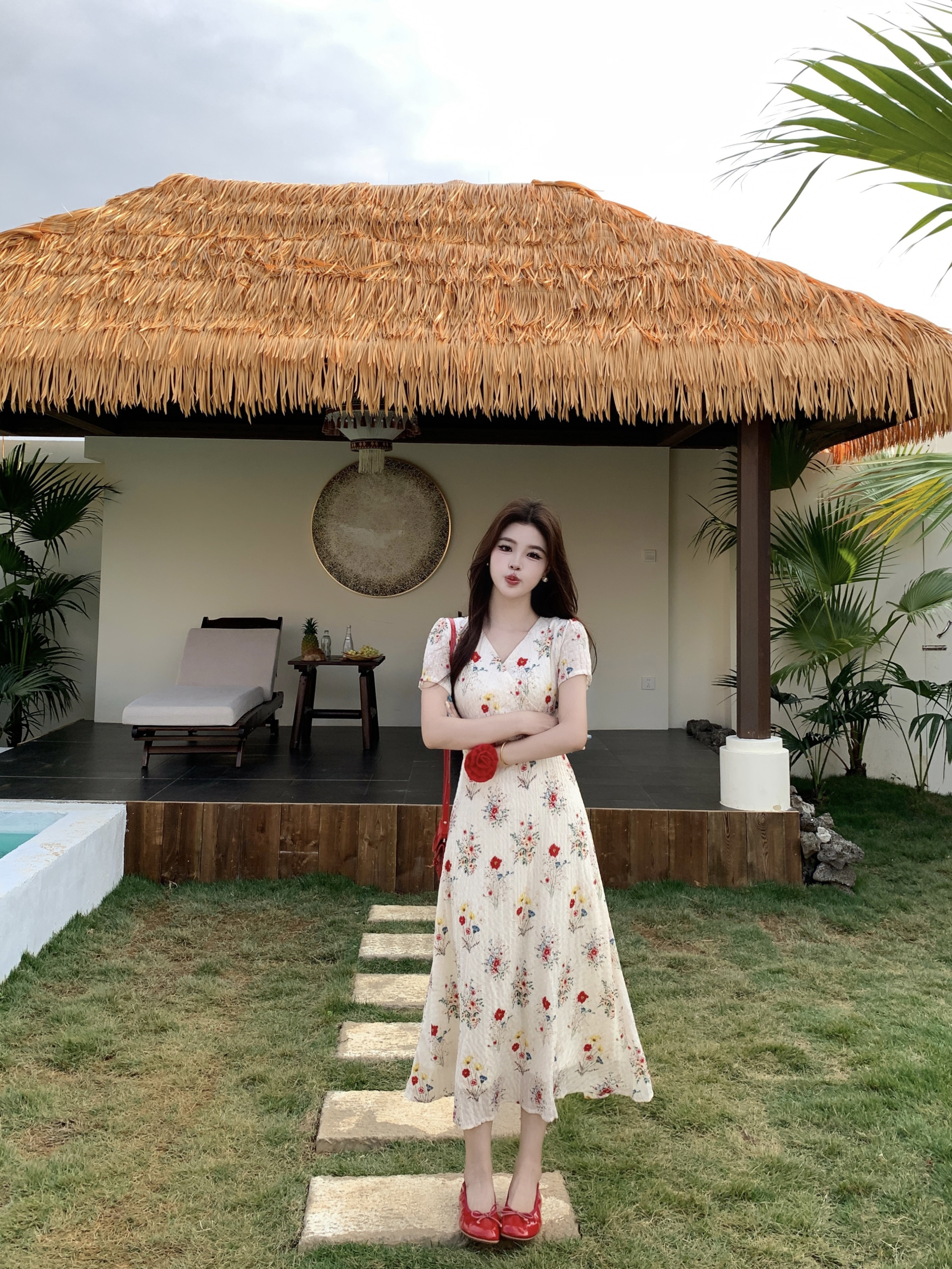 RY2286# 大码石榴花语碎花明媚大方温柔法式初恋小众显瘦气质中长款连衣裙