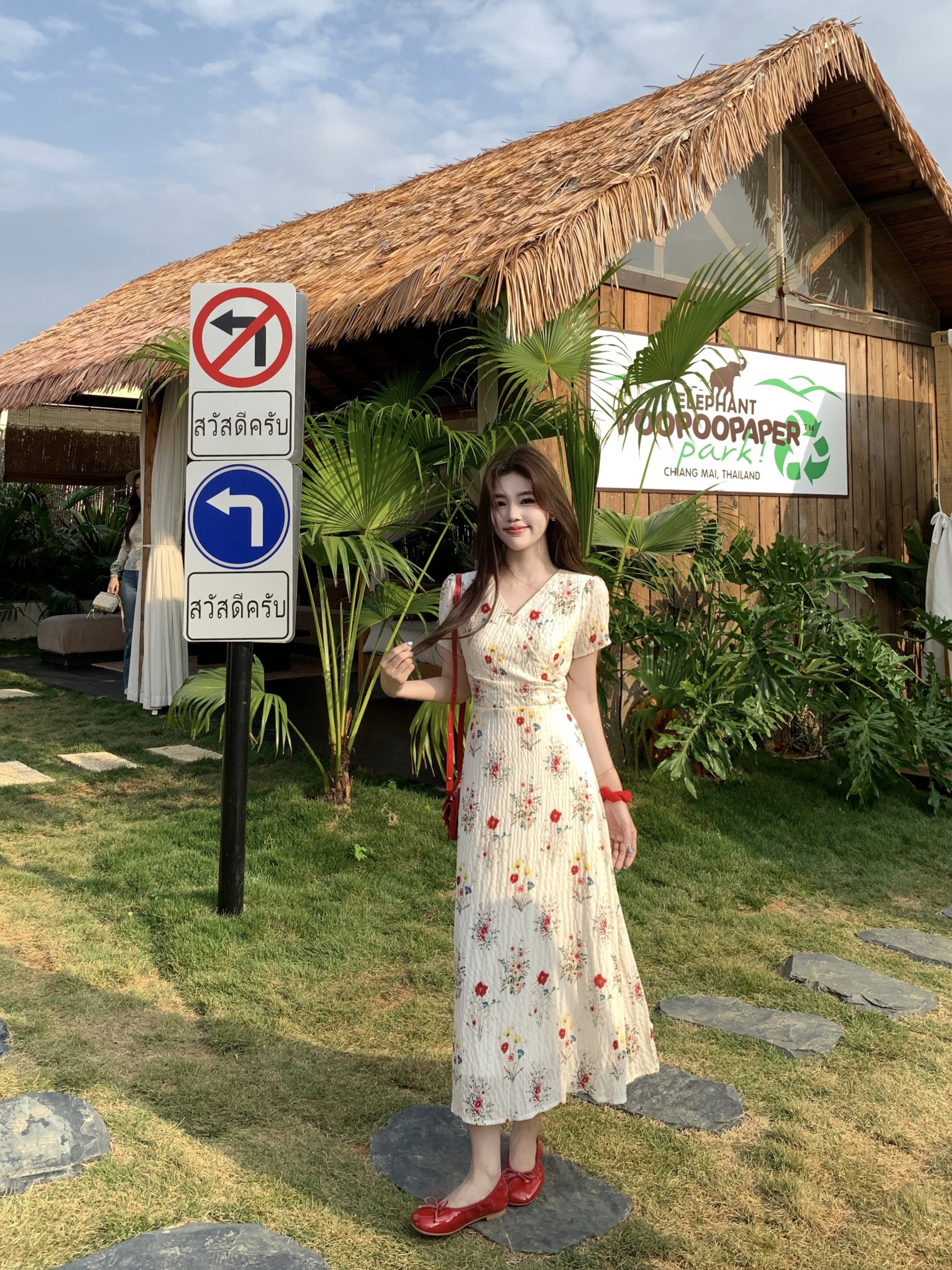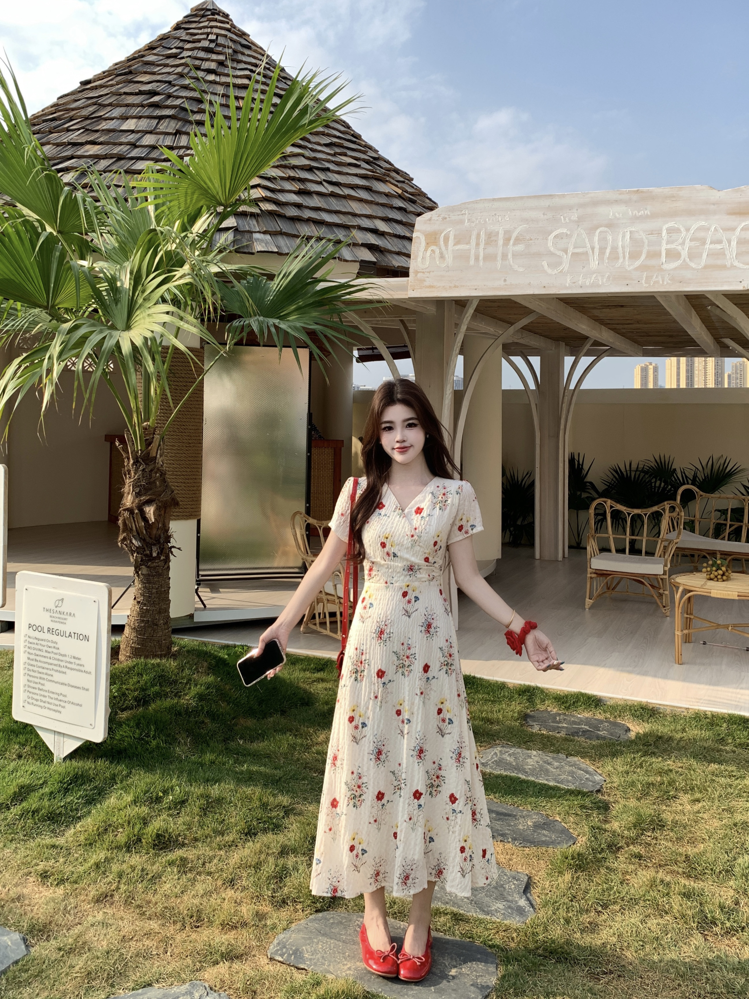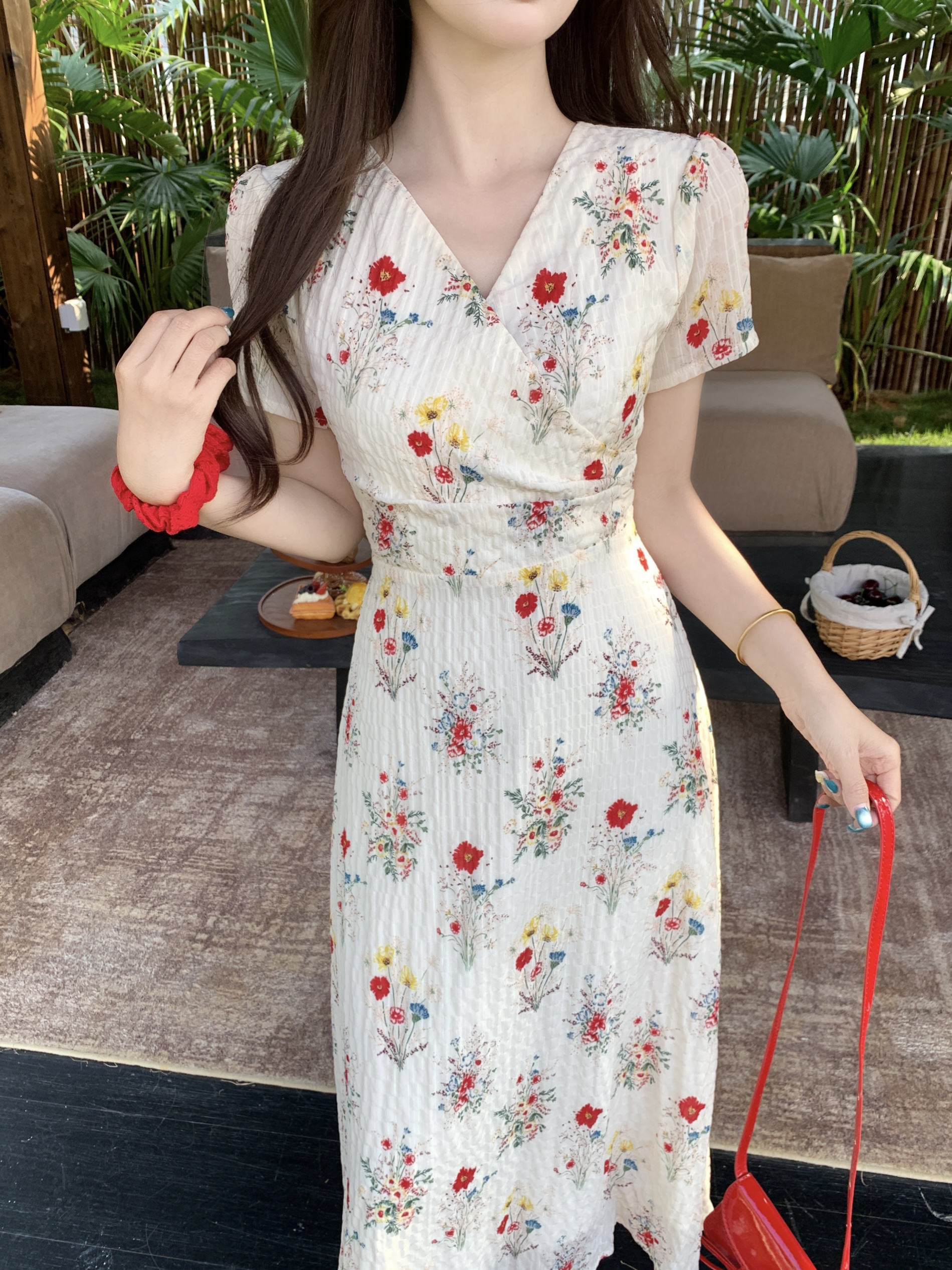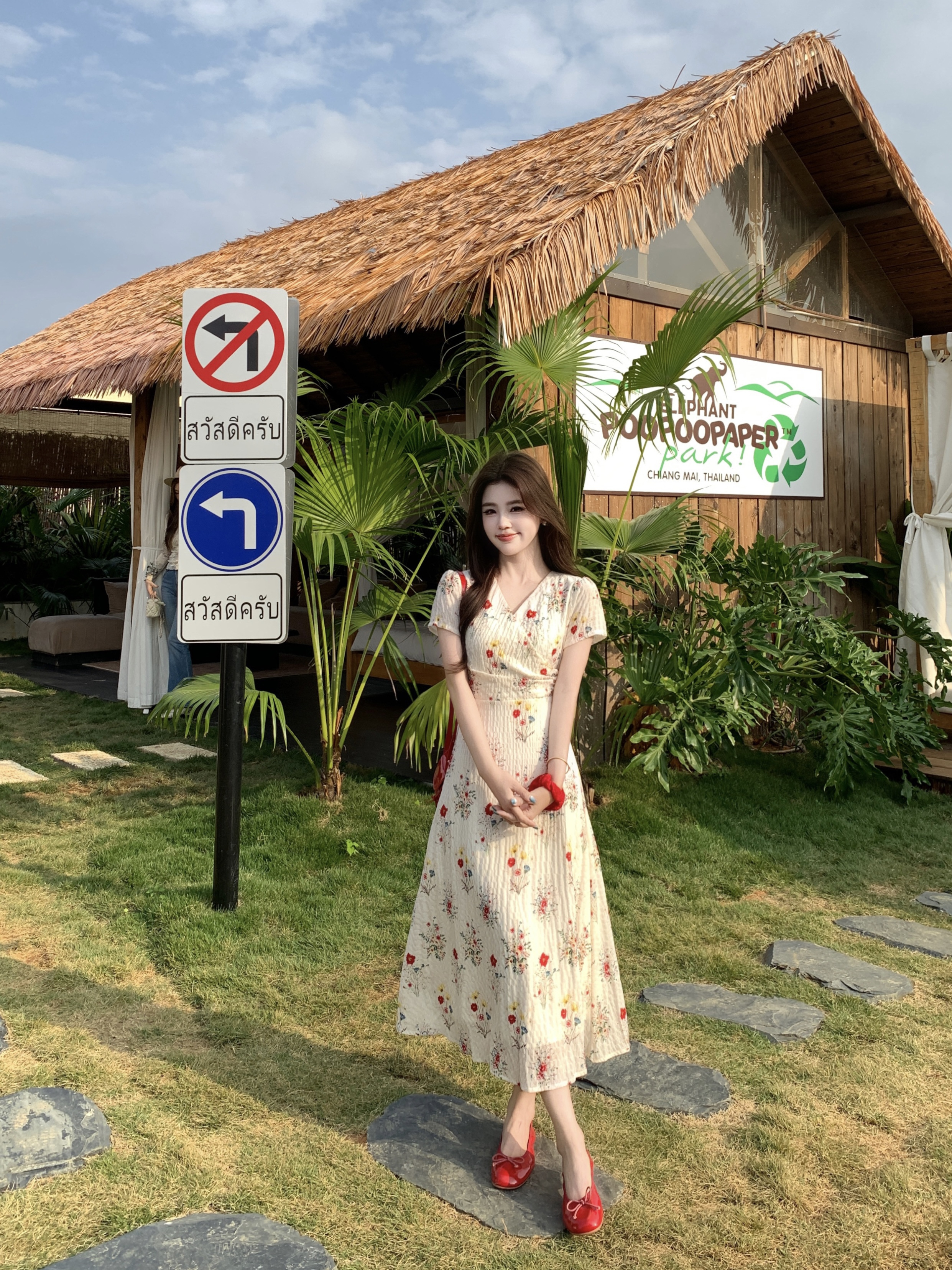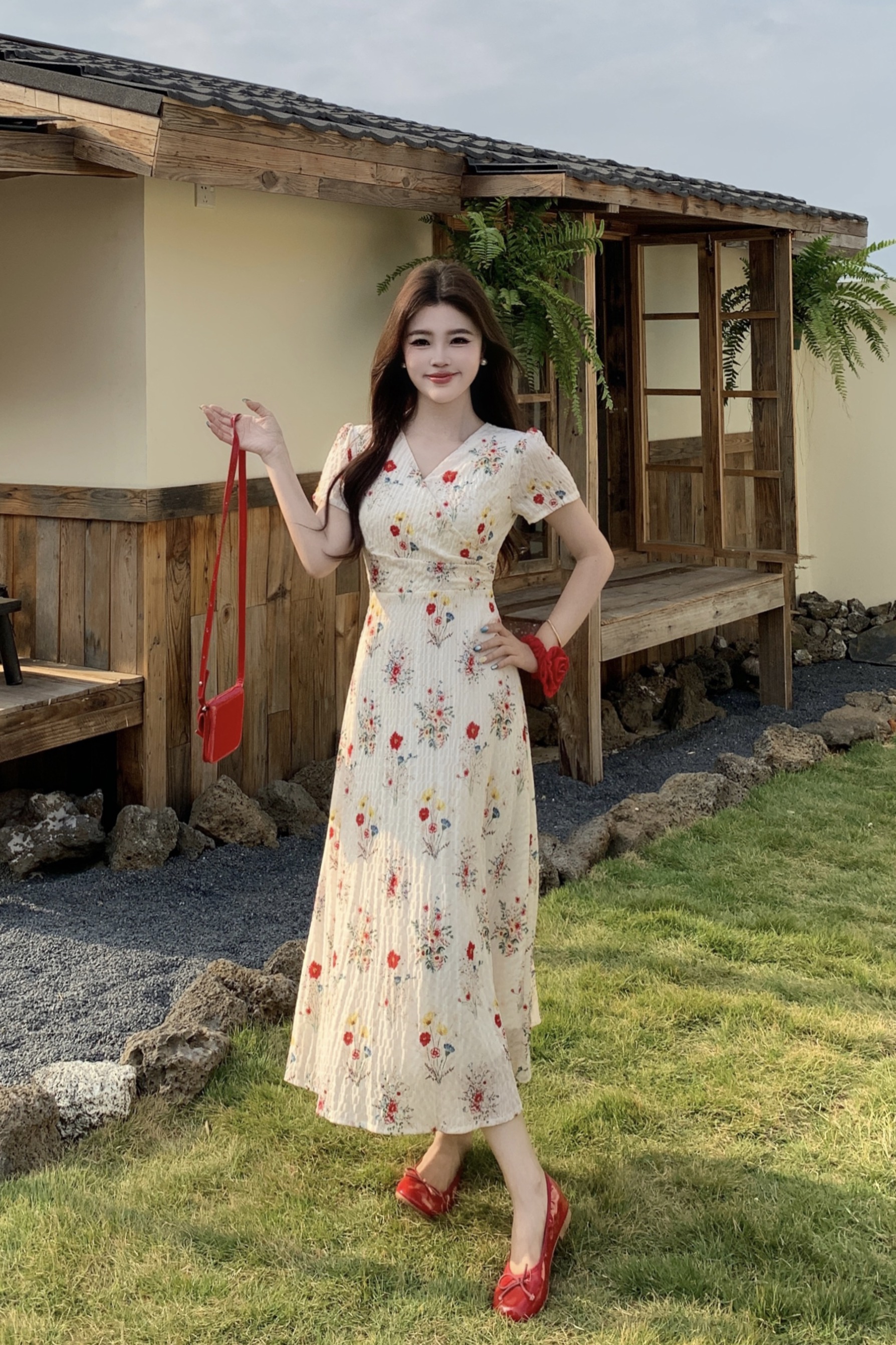 RY2286# 大码石榴花语碎花明媚大方温柔法式初恋小众显瘦气质中长款连衣裙