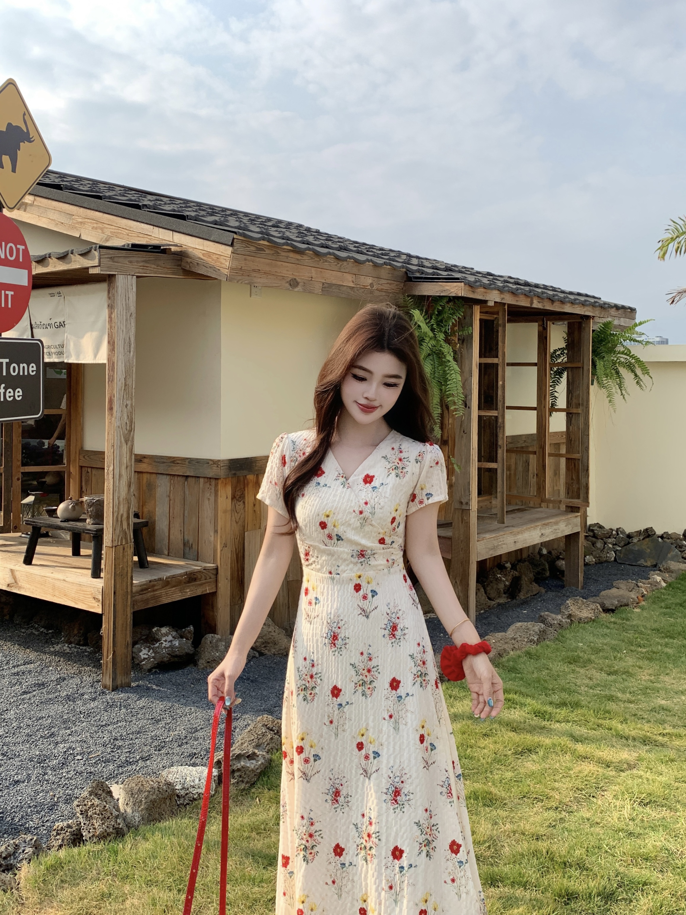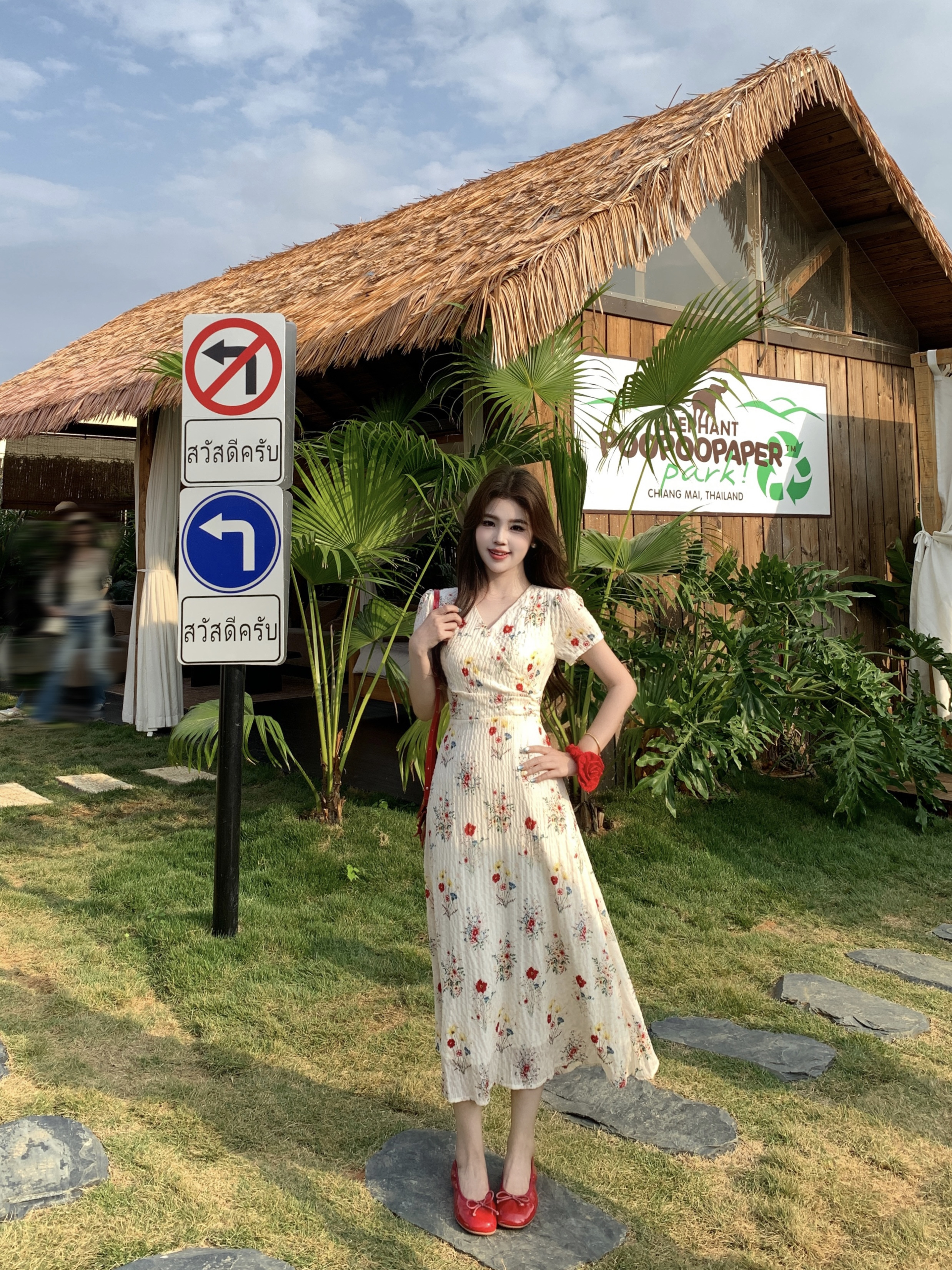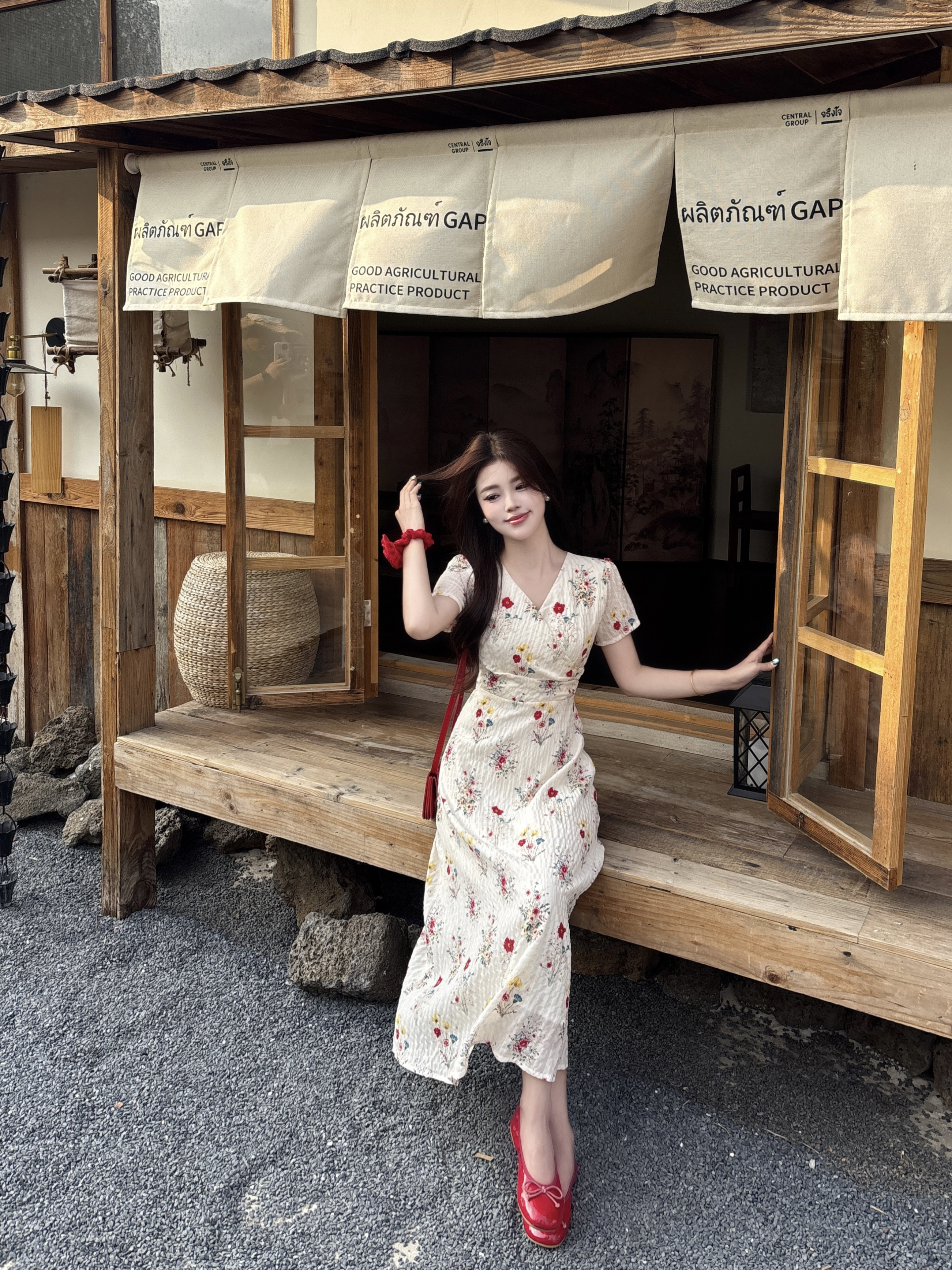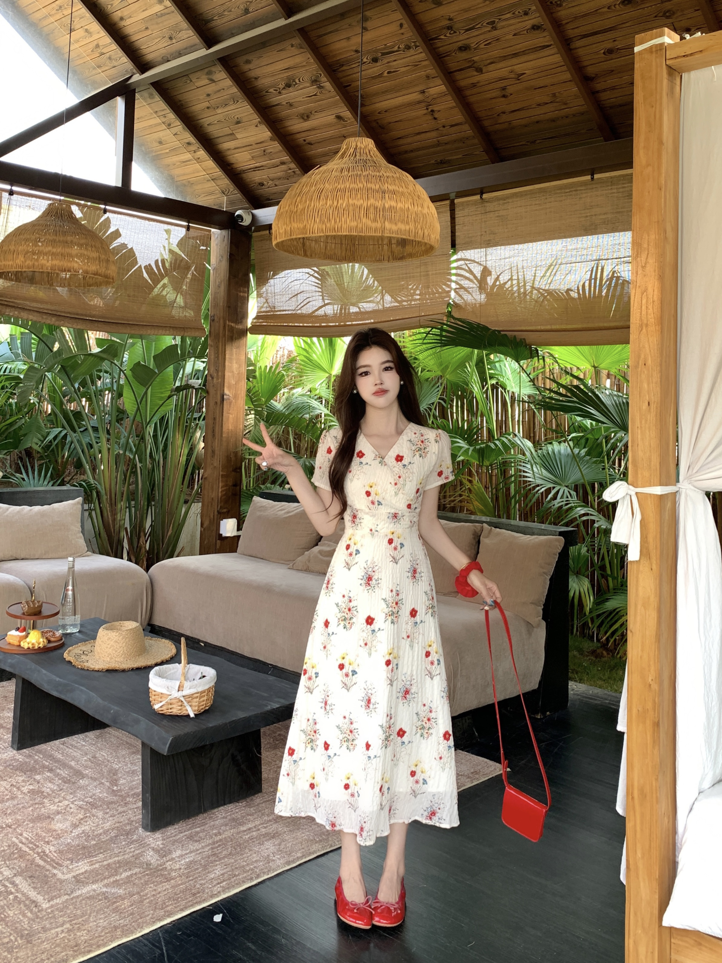 RY2286# 大码石榴花语碎花明媚大方温柔法式初恋小众显瘦气质中长款连衣裙
